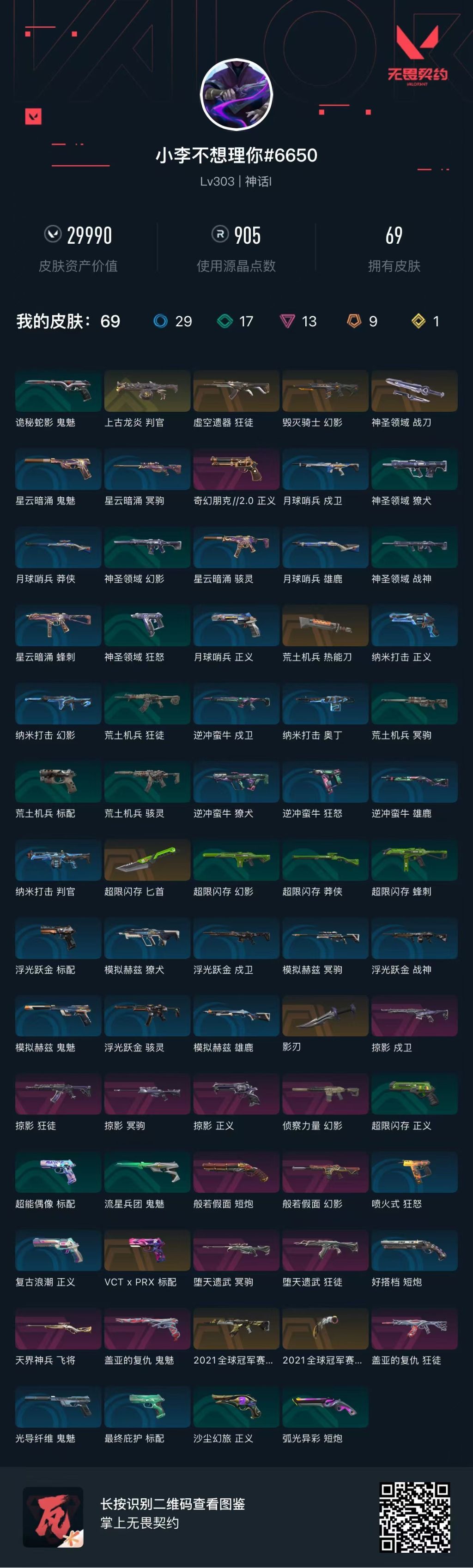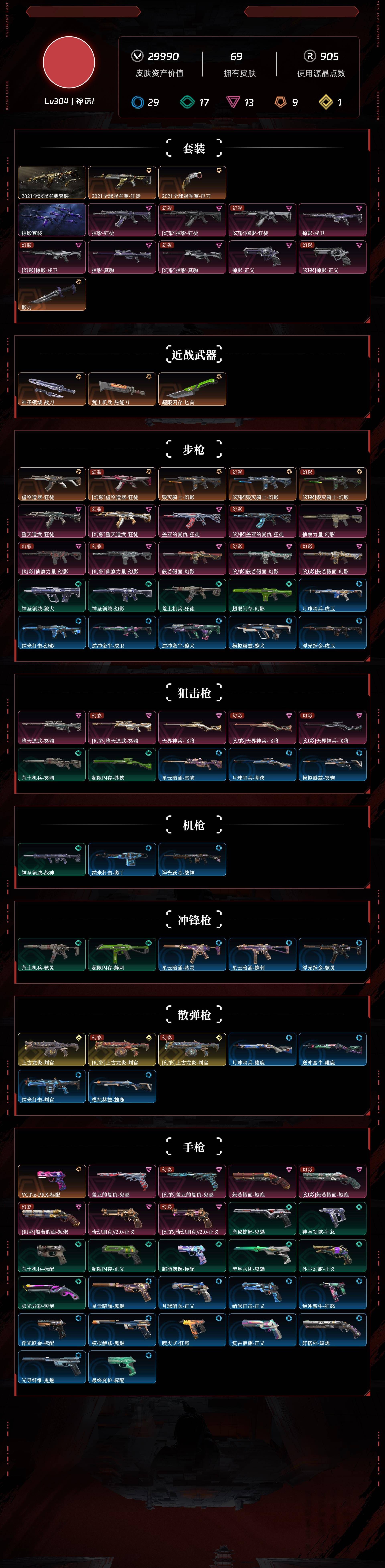 [8987561]r23411 剩余点券449 有二次 lv304 ,皮肤总价值29990,神话i,总皮肤69,刀皮5呛皮64终极1传奇4卓越13,套装2传奇1卓越1,2021全球冠军赛套装,具体详情看图