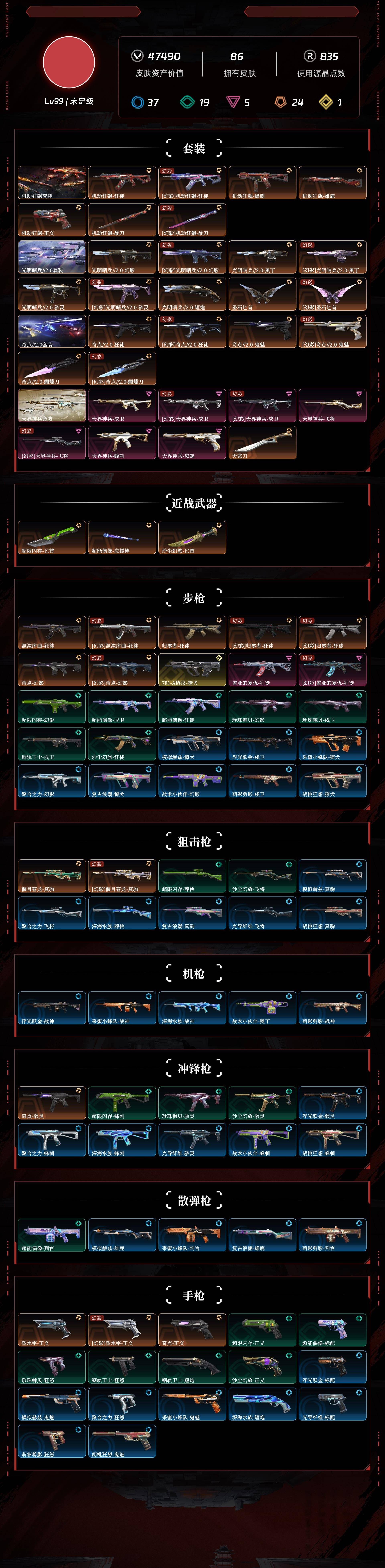 [9030665]r14198,有二次,剩余点券:109, lv99 ,皮肤总价值47490,未定级,总皮肤86,刀皮7呛皮79终极1传奇17卓越5,套装4传奇3卓越1,奇点2.0套装,具体详情看图