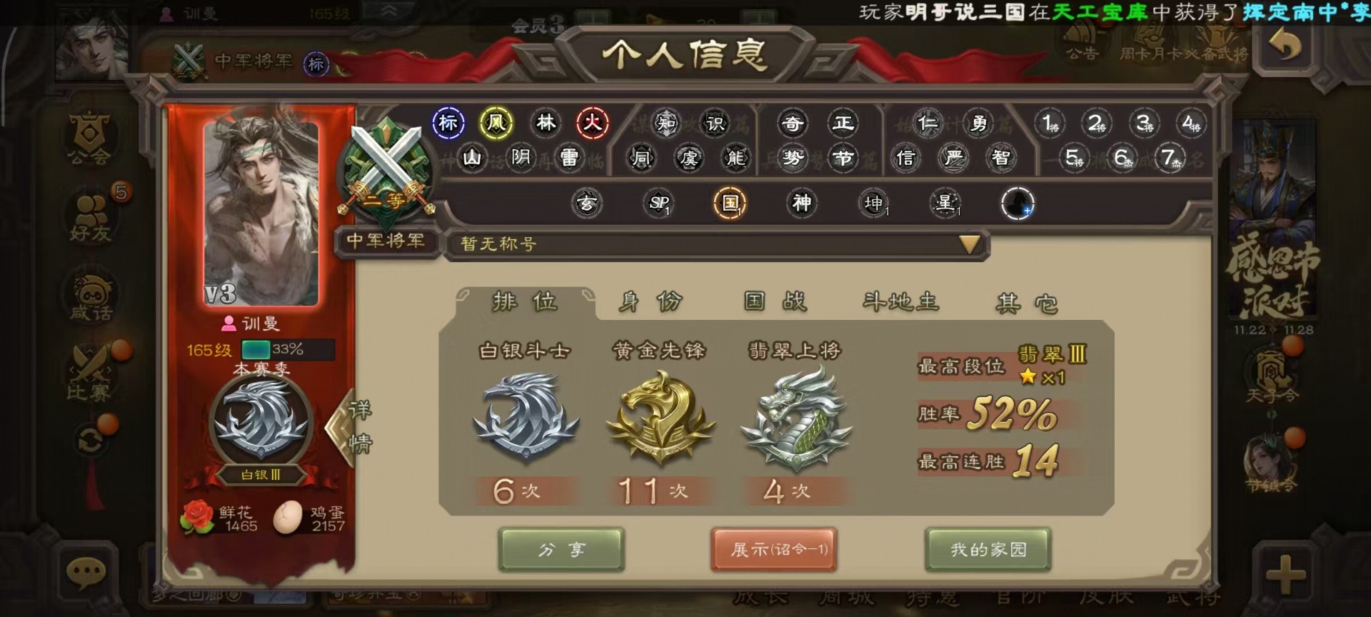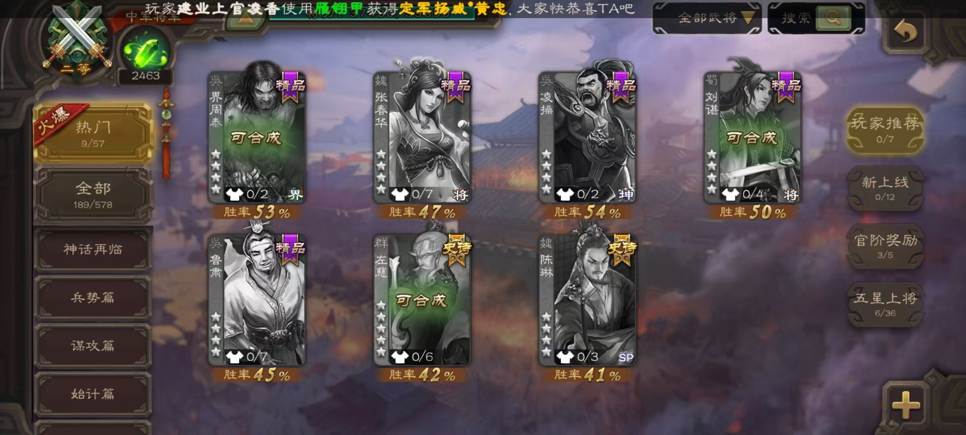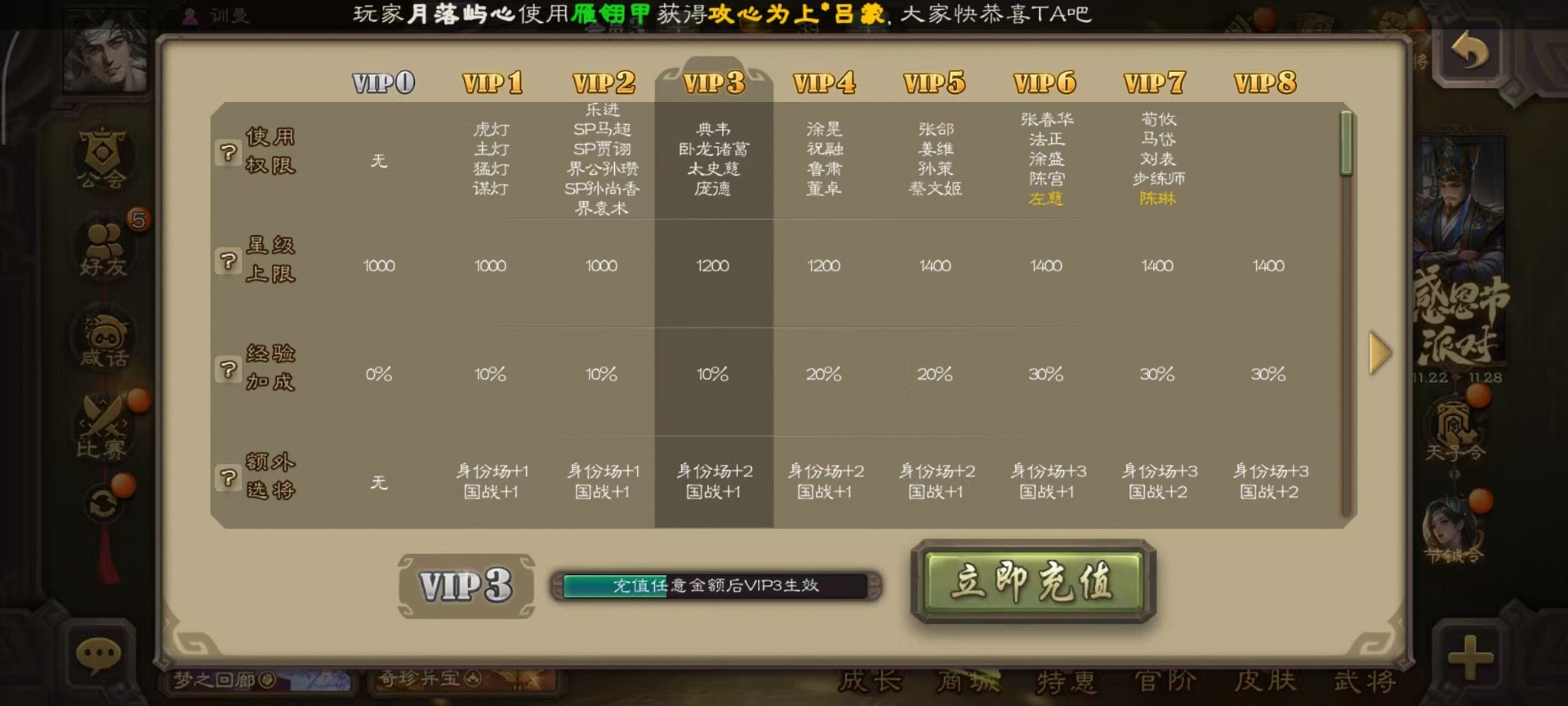 [14525623]vip3 中军将军 189武将 5动态皮肤 10史诗武将 【神将】:神赵云神司马懿 【魏国武将】:程昱戏志才 【蜀国武将】:谋诸葛亮谋赵云谋马超谯周花鬘 【群国武将】:谋张角