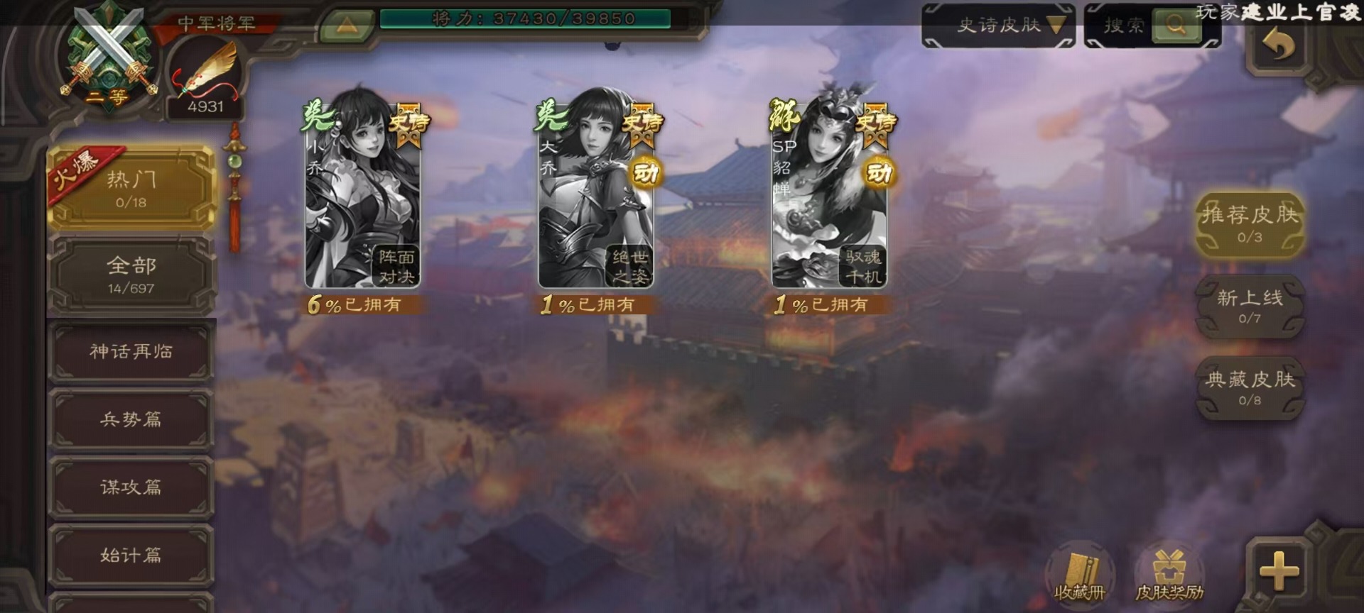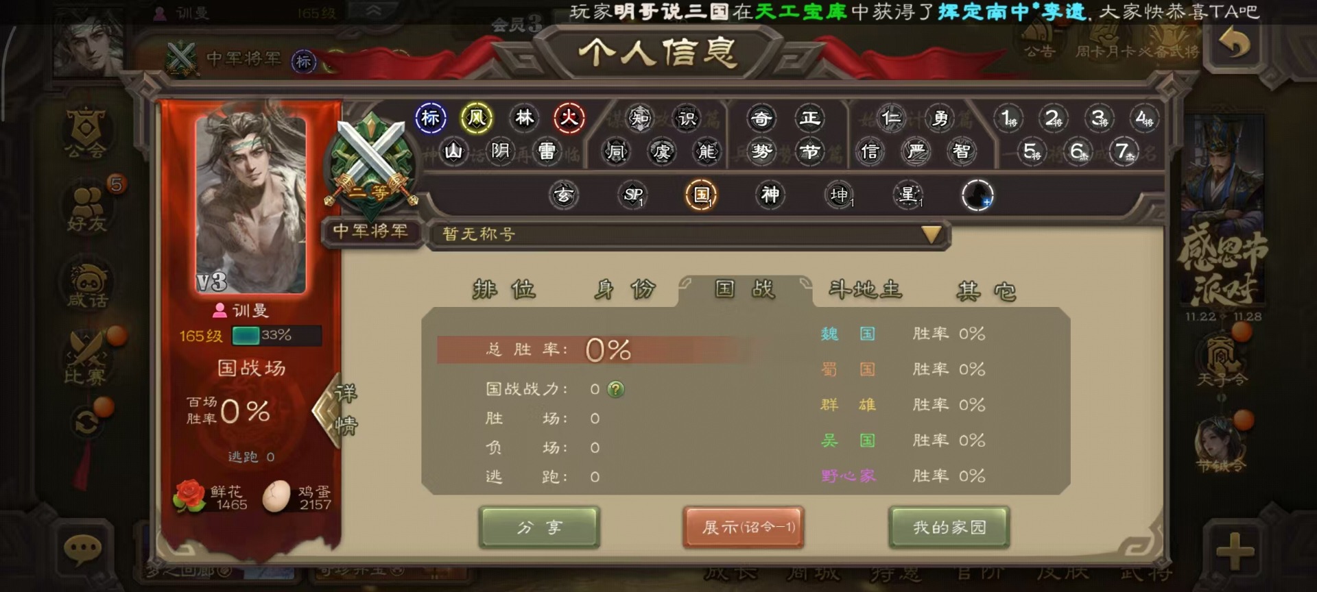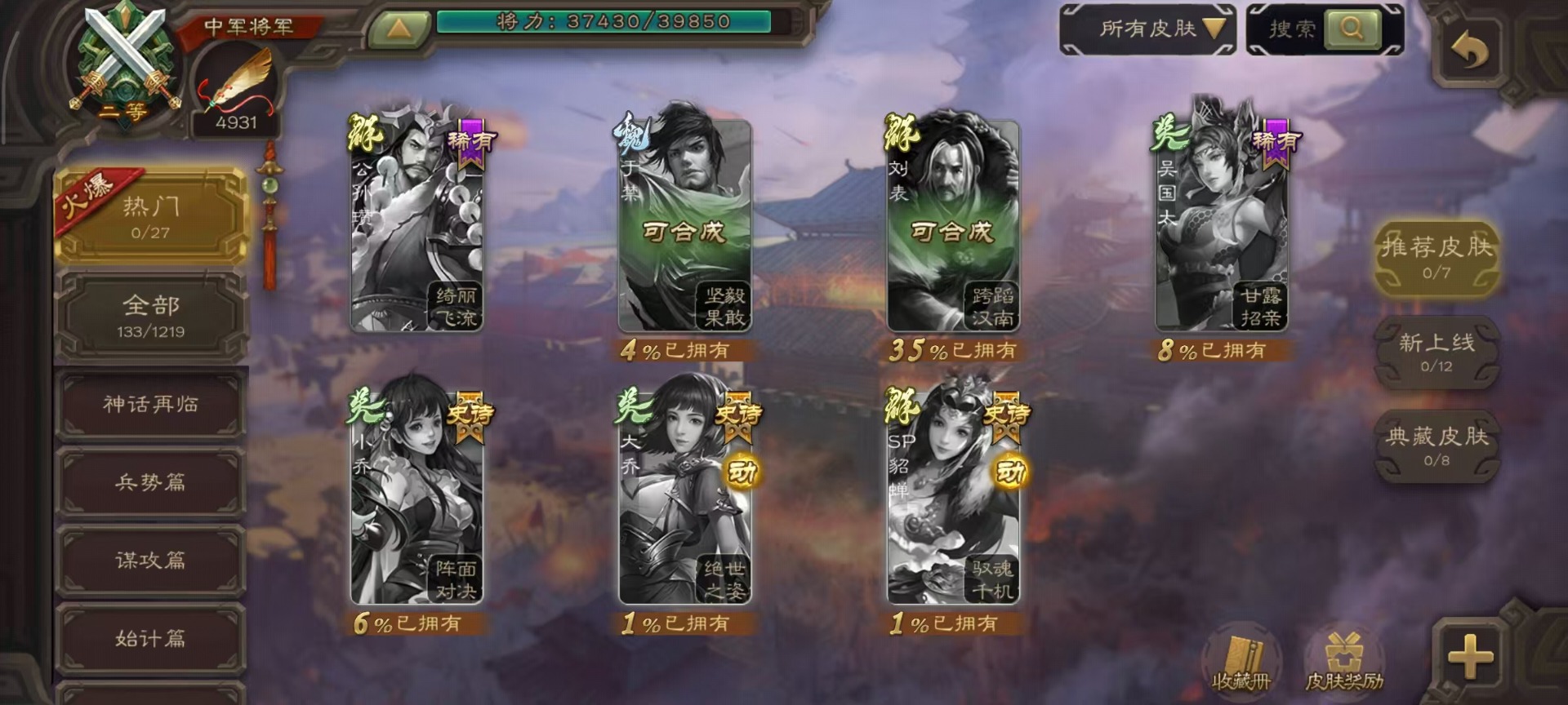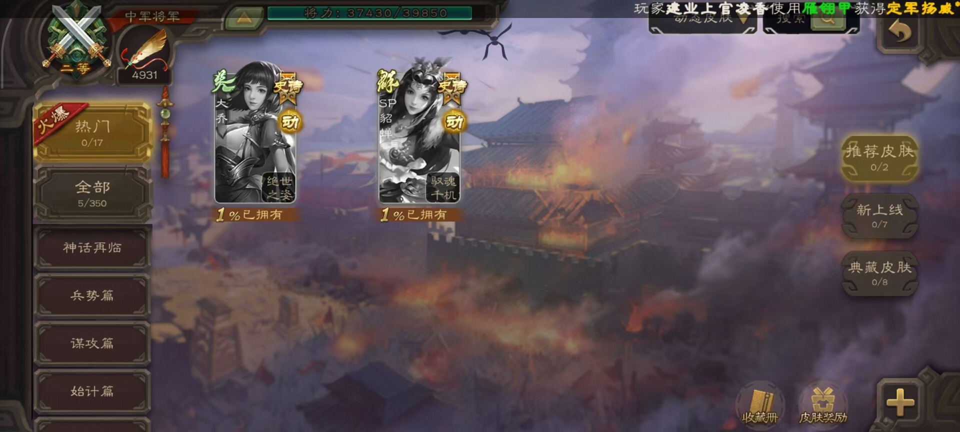 [14525623]vip3 中军将军 189武将 5动态皮肤 10史诗武将 【神将】:神赵云神司马懿 【魏国武将】:程昱戏志才 【蜀国武将】:谋诸葛亮谋赵云谋马超谯周花鬘 【群国武将】:谋张角
