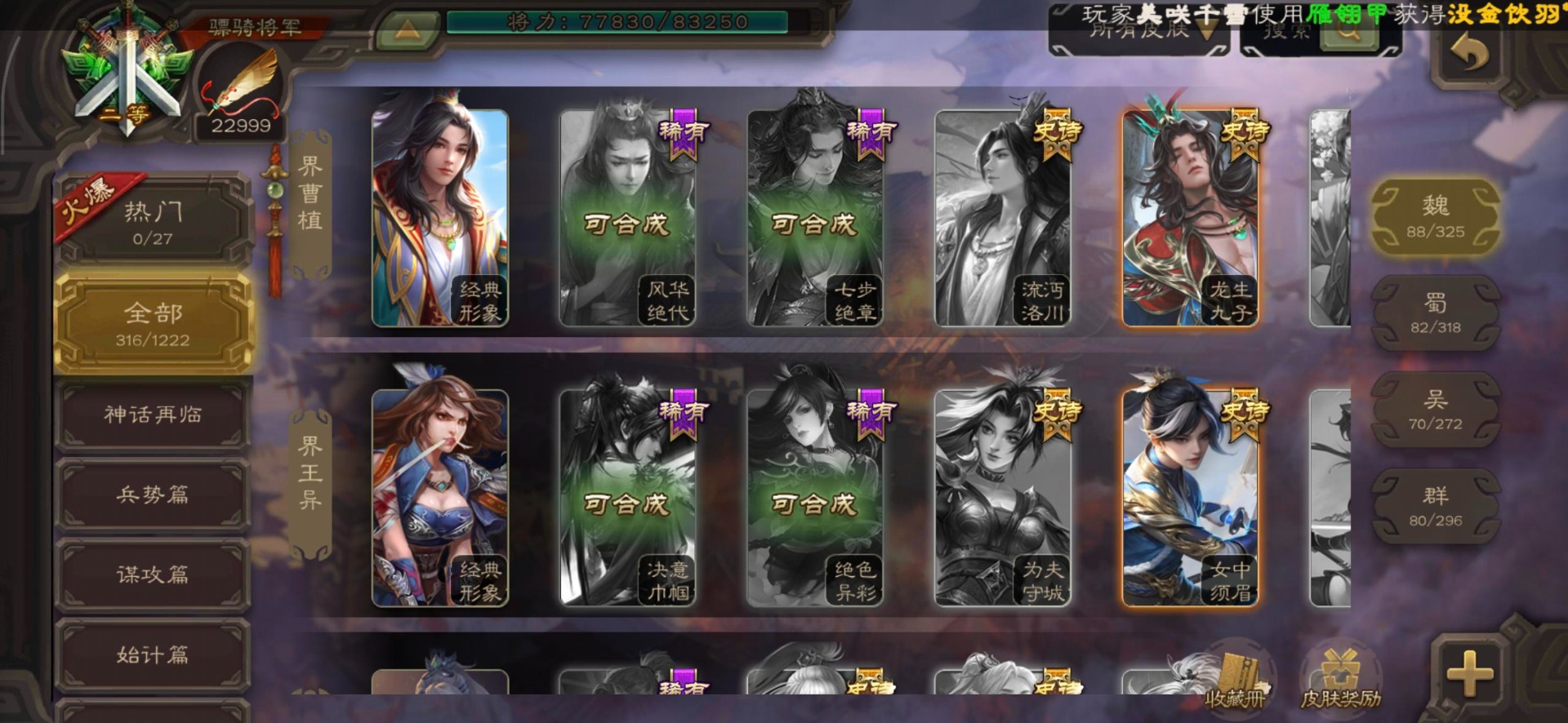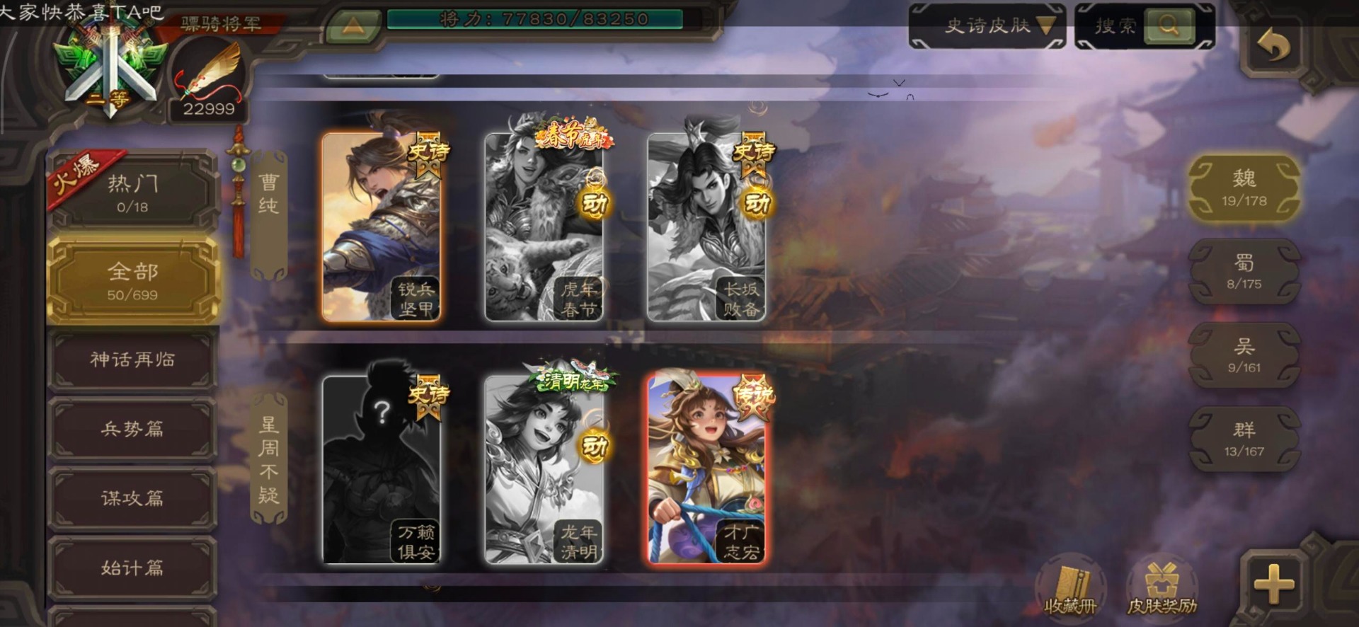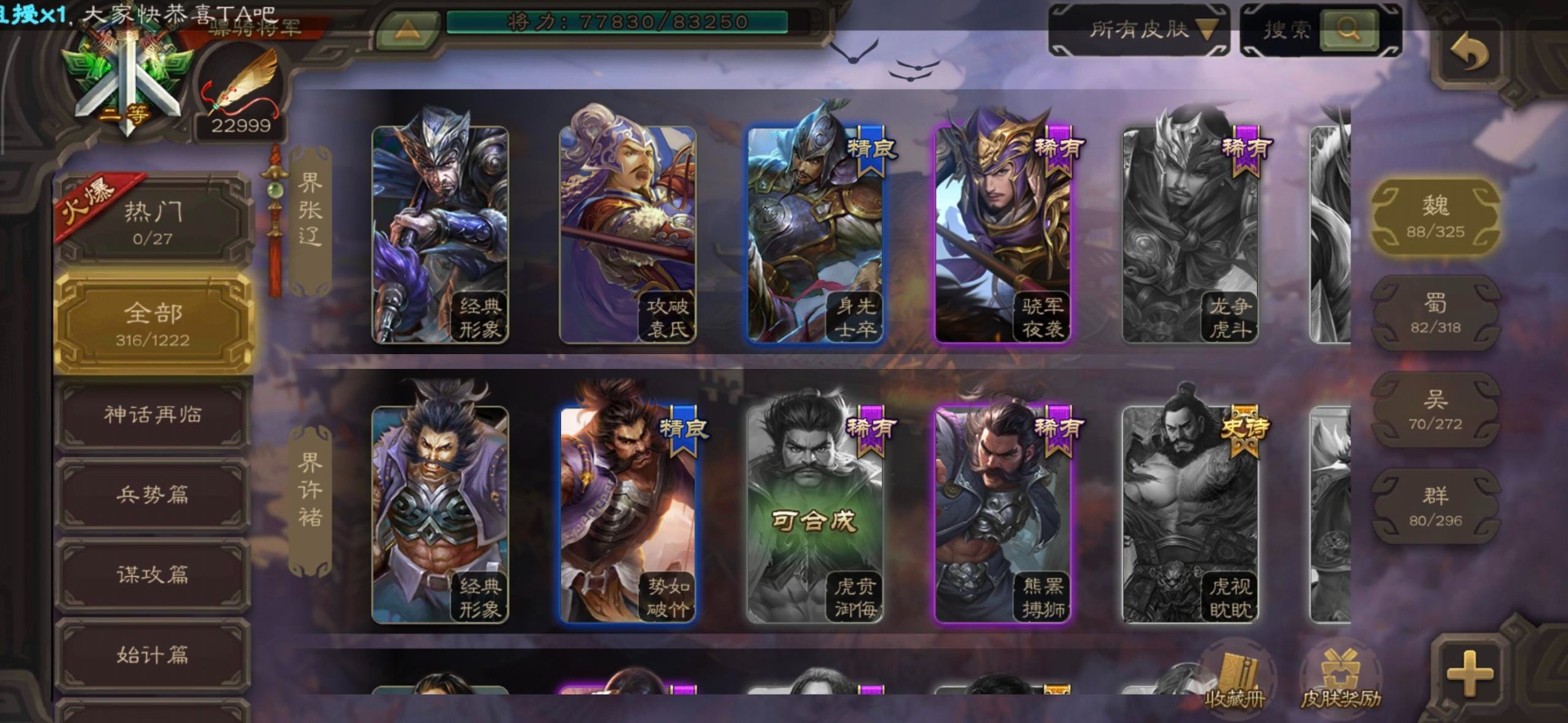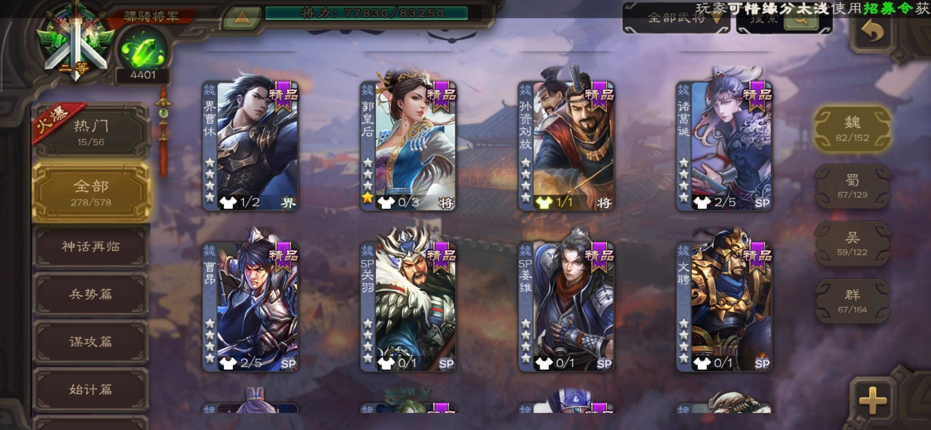 [14525625]vip8 骠骑将军 278武将 20动态皮肤 30史诗武将 【魏国武将】:星周不疑界钟会郝昭程昱曹婴曹纯戏志才于禁界夏侯惇曹彰界张辽曹植李通界许褚吕虔界荀彧界郭嘉张恭王异sp贾诩