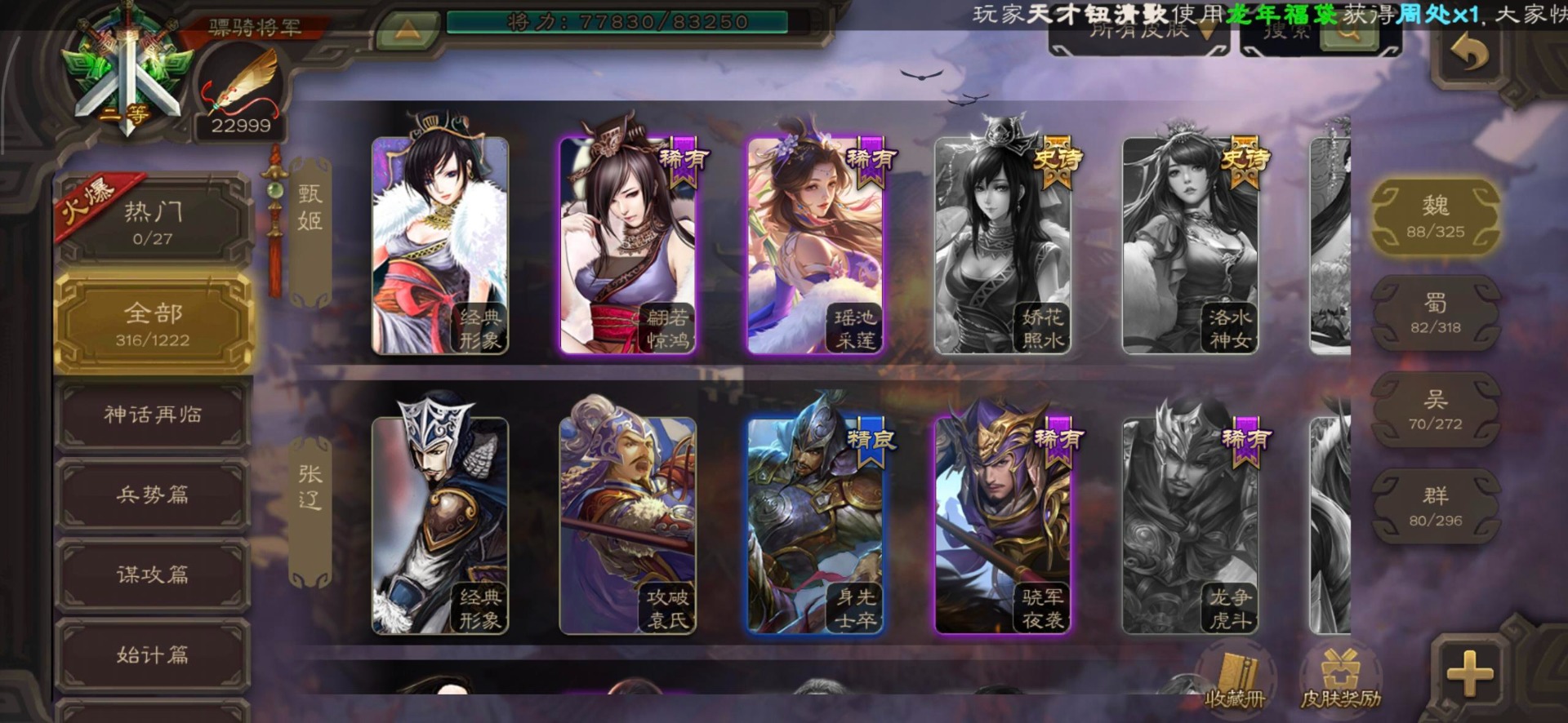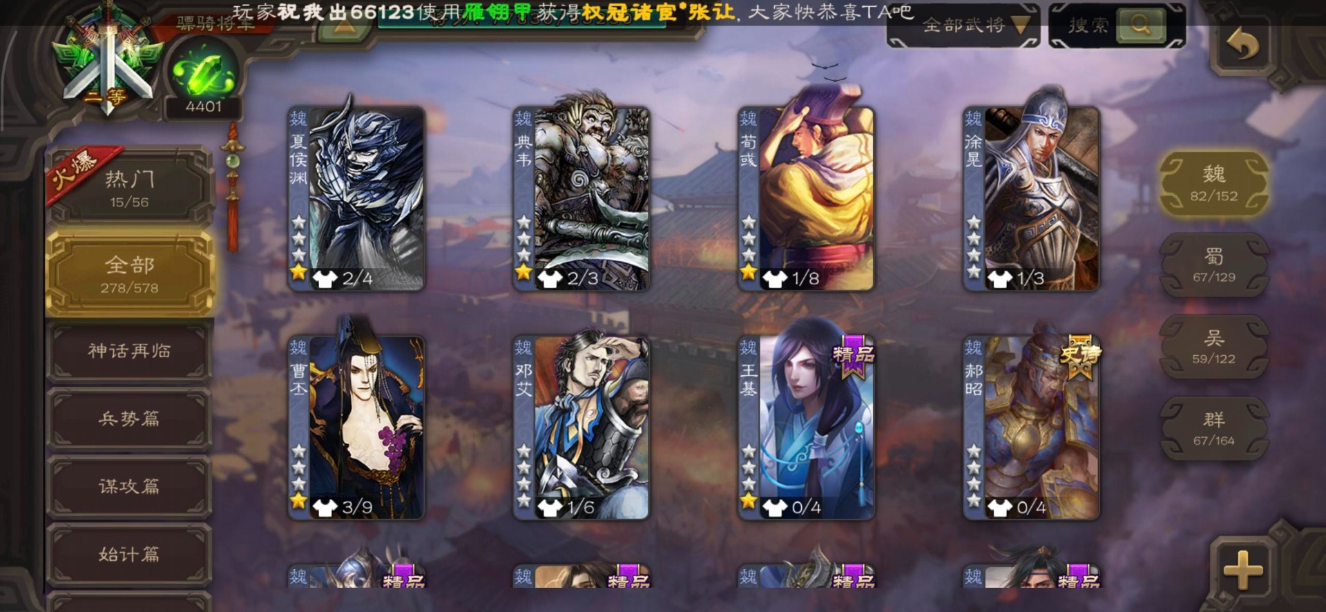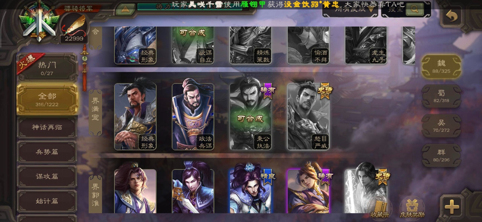 [14525625]vip8 骠骑将军 278武将 20动态皮肤 30史诗武将 【魏国武将】:星周不疑界钟会郝昭程昱曹婴曹纯戏志才于禁界夏侯惇曹彰界张辽曹植李通界许褚吕虔界荀彧界郭嘉张恭王异sp贾诩