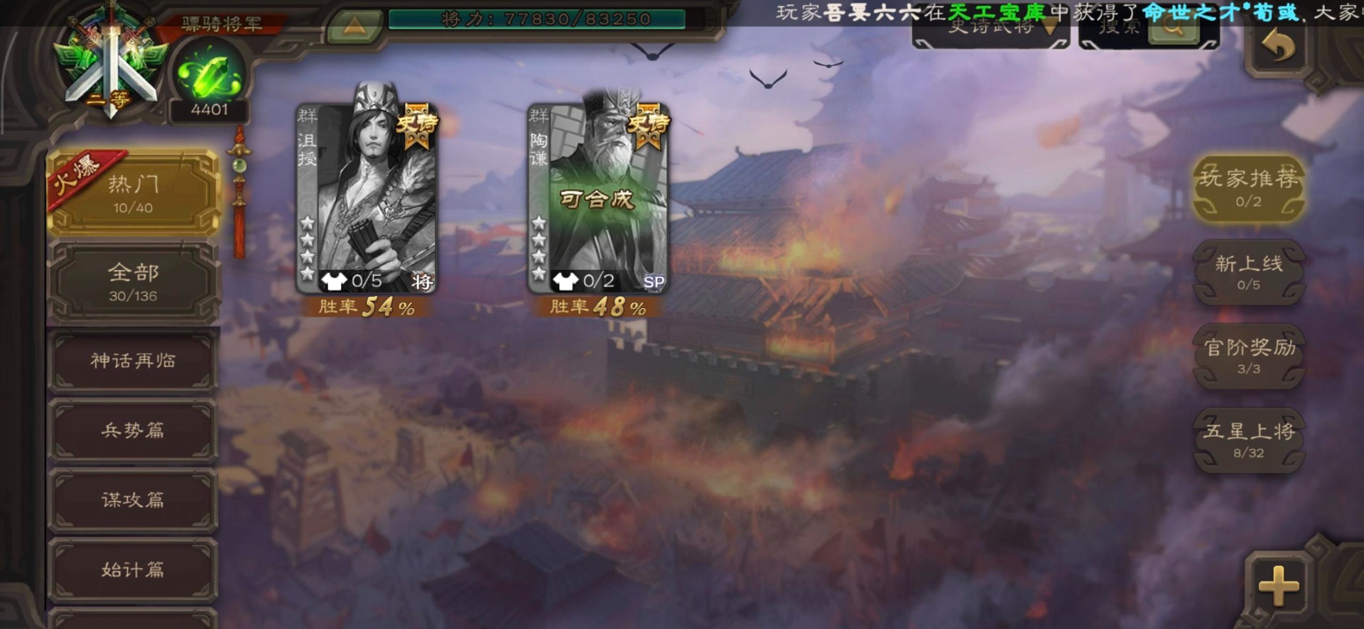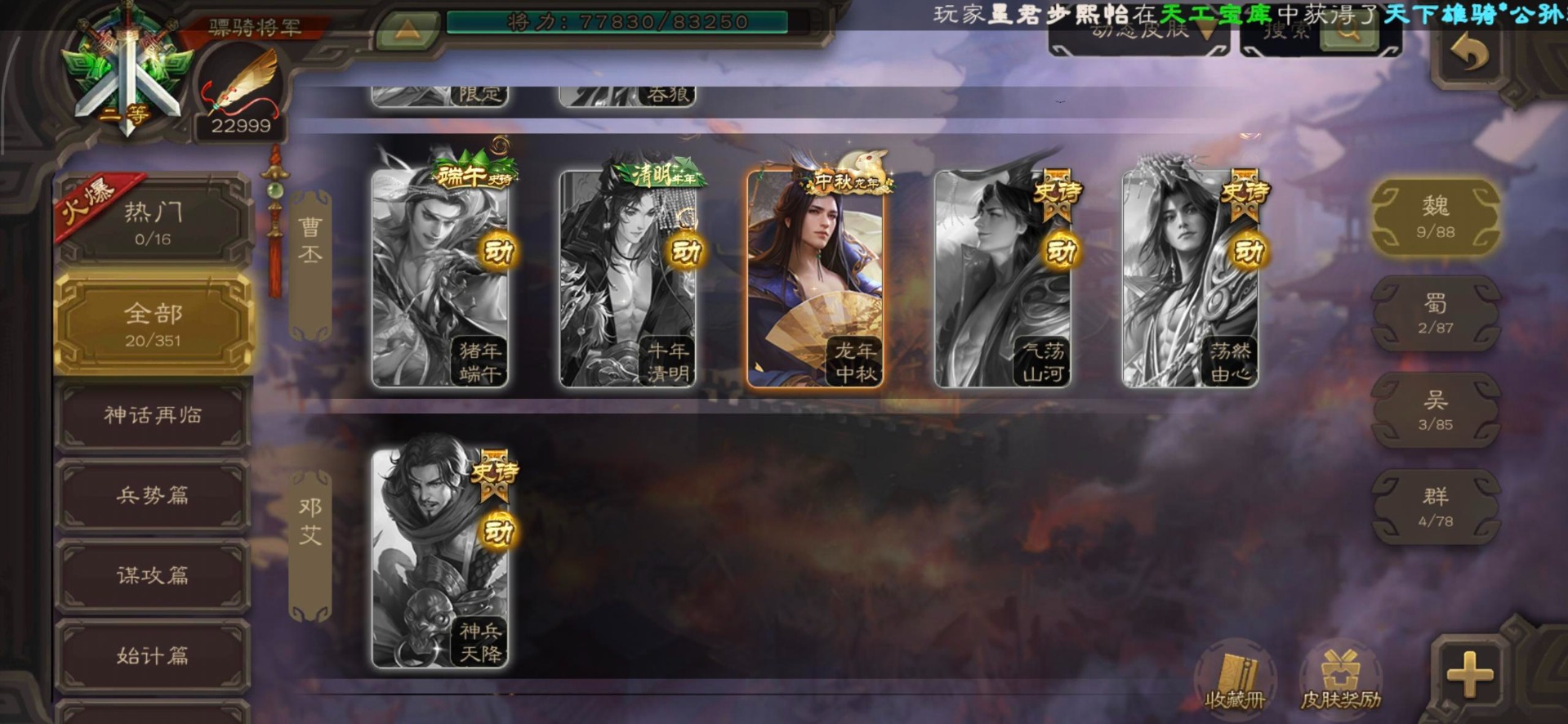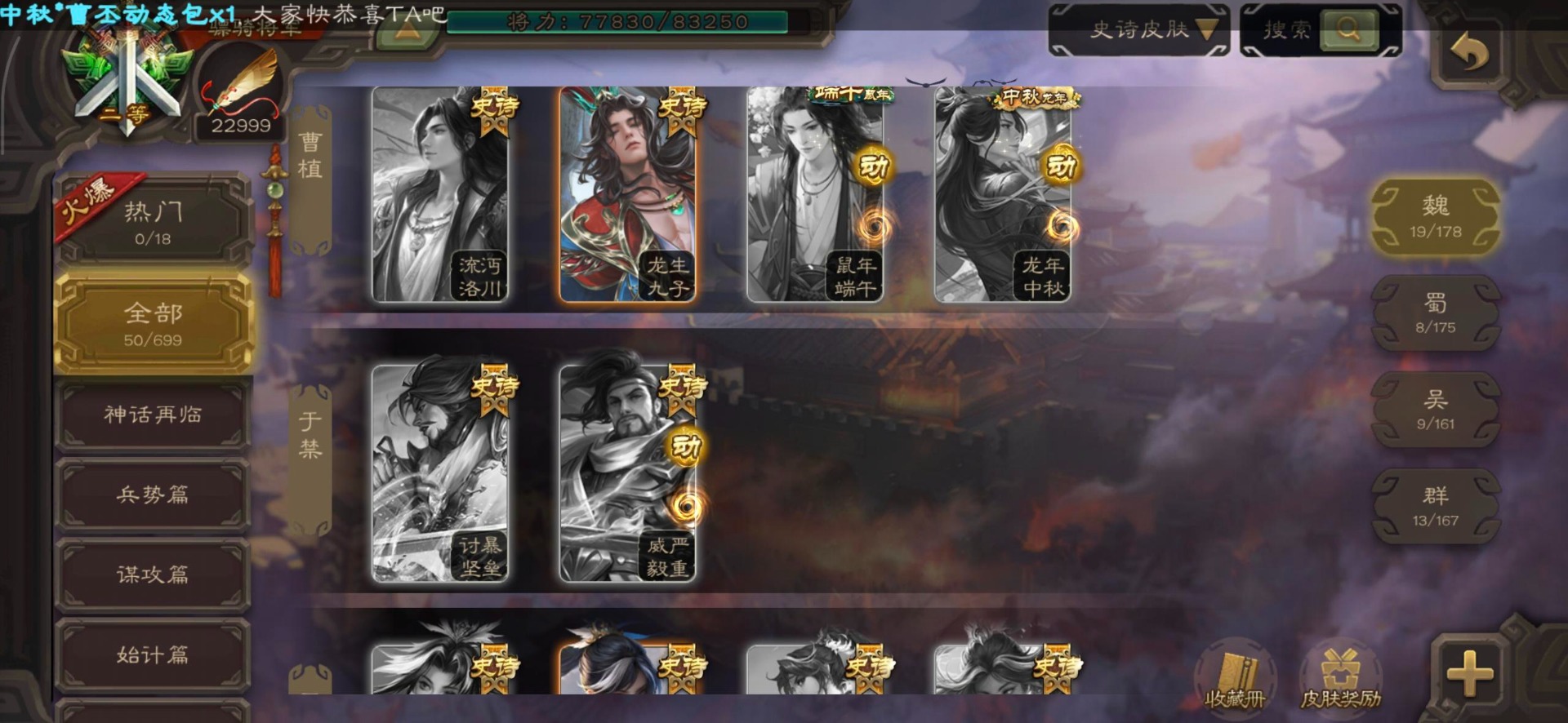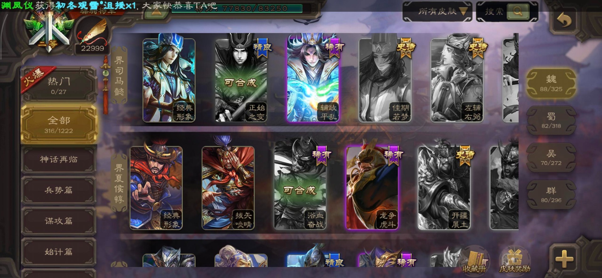 [14525625]vip8 骠骑将军 278武将 20动态皮肤 30史诗武将 【魏国武将】:星周不疑界钟会郝昭程昱曹婴曹纯戏志才于禁界夏侯惇曹彰界张辽曹植李通界许褚吕虔界荀彧界郭嘉张恭王异sp贾诩