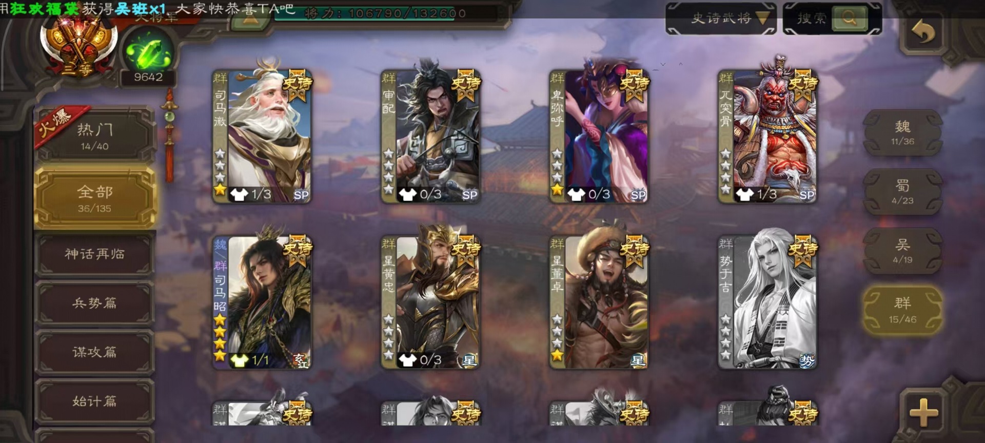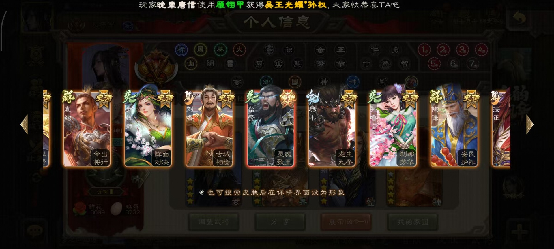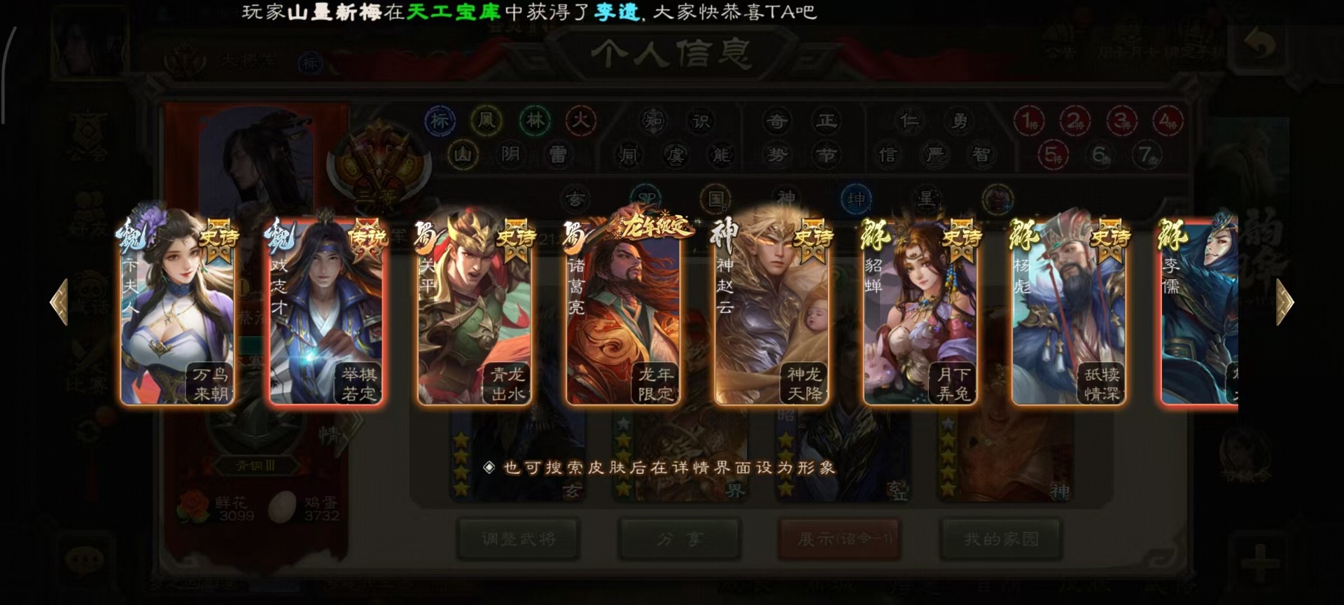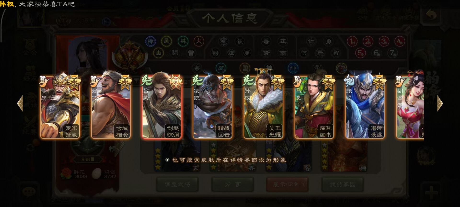 [14525688]vip10 大将军 336武将 29动态皮肤 36史诗武将 20宝珠 【神将】:神吕布神赵云神孙策 【魏国武将】:清河公主曹髦杨修魏-司马昭界钟会界曹真嵇康程昱陈琳曹纯戏志才 【蜀国武将】:谋赵云沙摩柯界黄忠花鬘 【吴国武将】:骆统留赞界朱然界徐盛 【群国武将】:星董卓群-司马昭左慈张让星黄忠兀突骨司马徽审配麹义沮授界左慈界李儒卑弥呼谋张角许攸