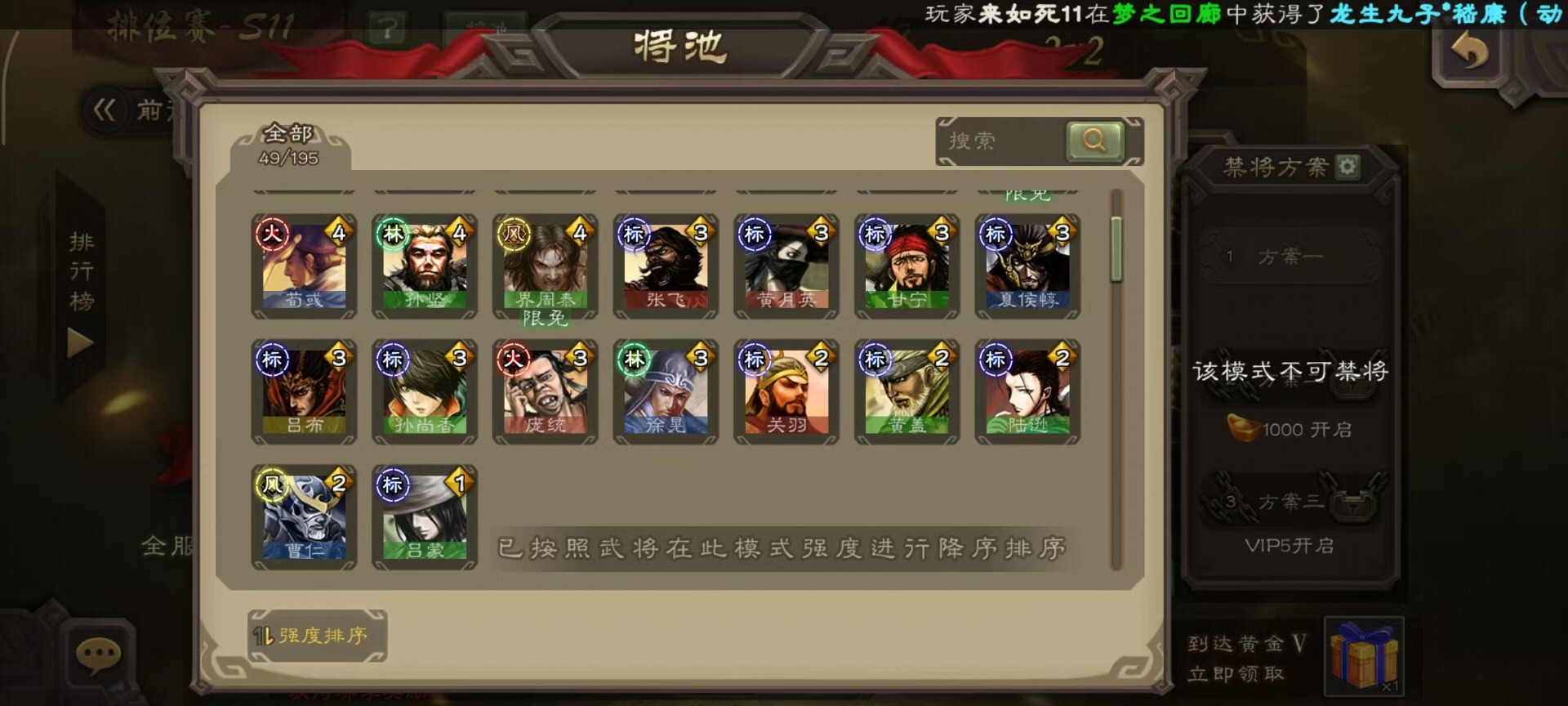 [14526303]vip2 校尉 124武将 3动态皮肤 2史诗武将 【魏国武将】:界荀彧谋于禁 【群国武将】:张让
