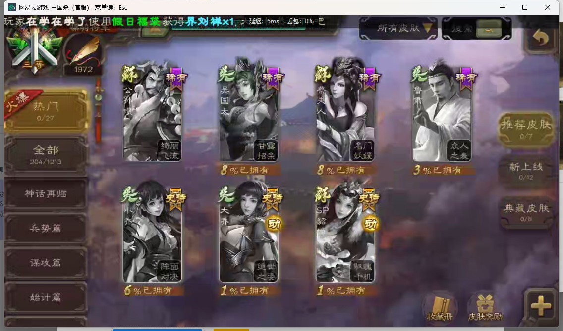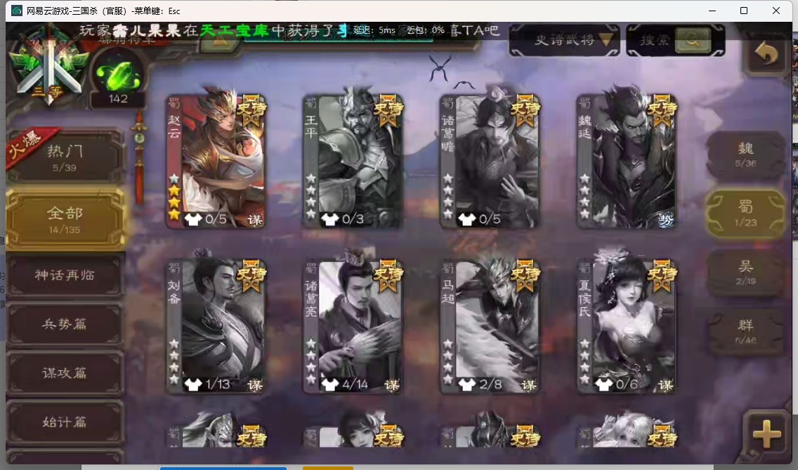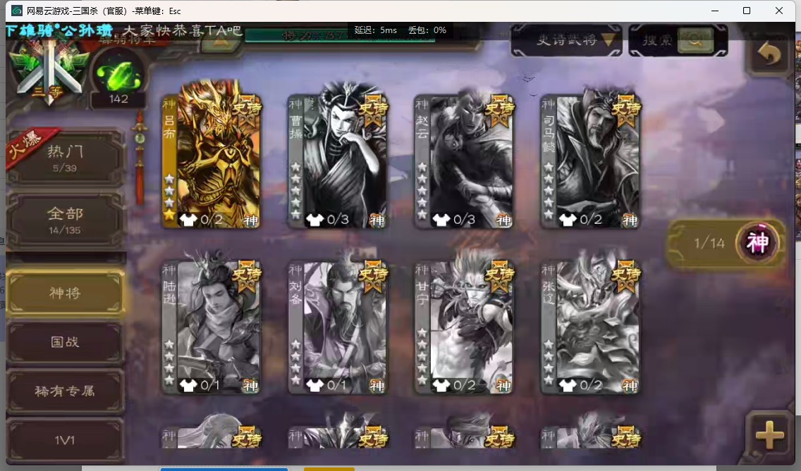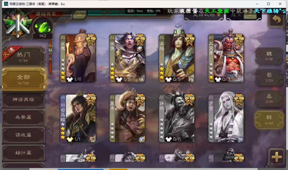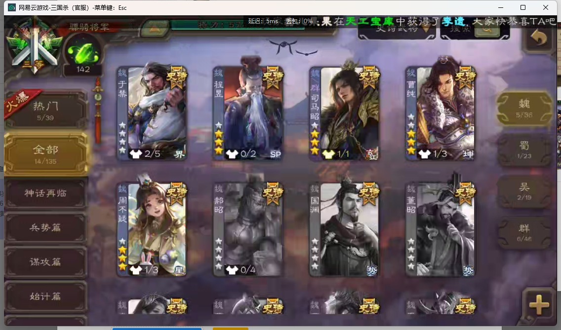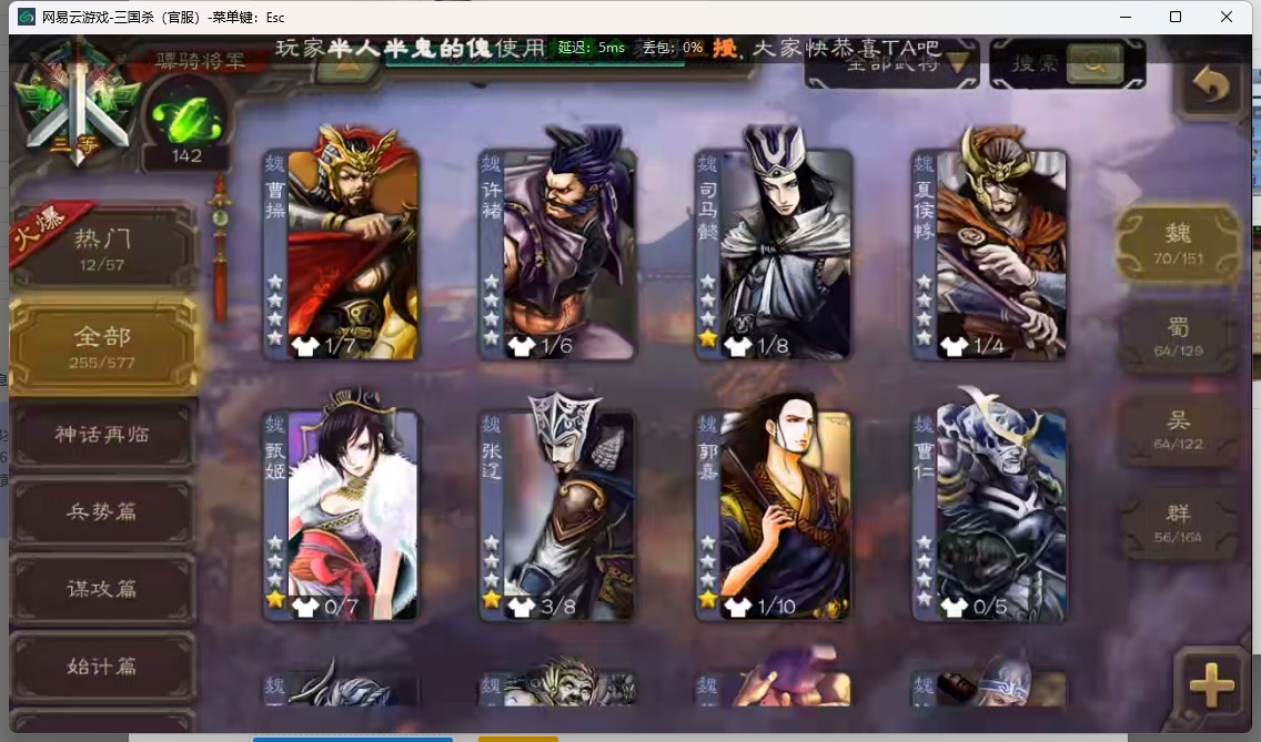 [14552973]vip8 骠骑将军 255武将 13动态皮肤 14史诗武将 【神将】:神吕布 【魏国武将】:星周不疑魏-司马昭程昱曹纯于禁甄姬司马懿许褚夏侯惇郭嘉曹仁曹操张辽 【蜀国武将】:赵云 【吴国武将】:徐盛周处 【群国武将】:群-司马昭左慈兀突骨沮授张角董卓