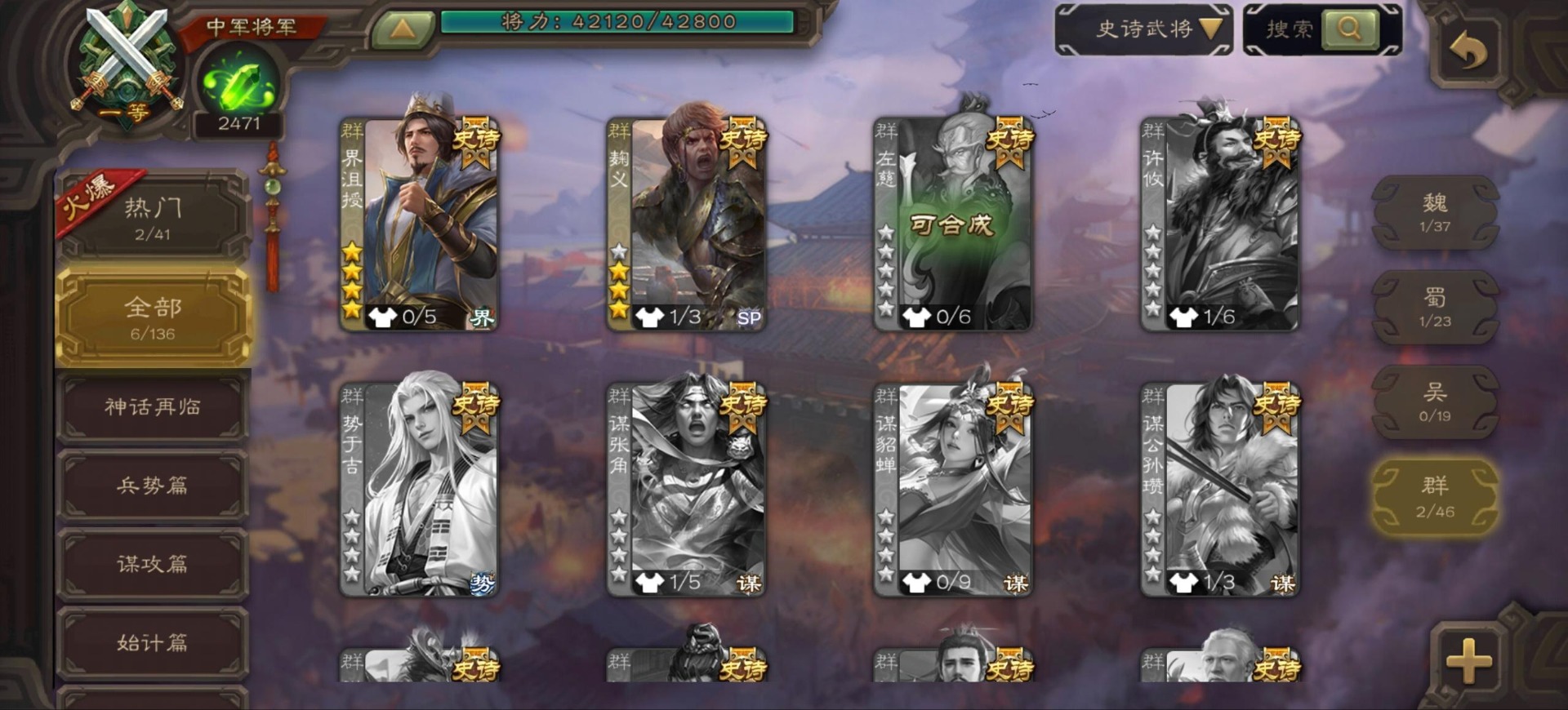 [14575002]vip9 中军将军 197武将 4动态皮肤 6史诗武将 【神将】:神司马懿神张辽 【魏国武将】:程昱甄姬司马懿许褚夏侯惇郭嘉曹仁曹操张辽 【蜀国武将】:谋赵云 【群国武将】:界沮授麹义