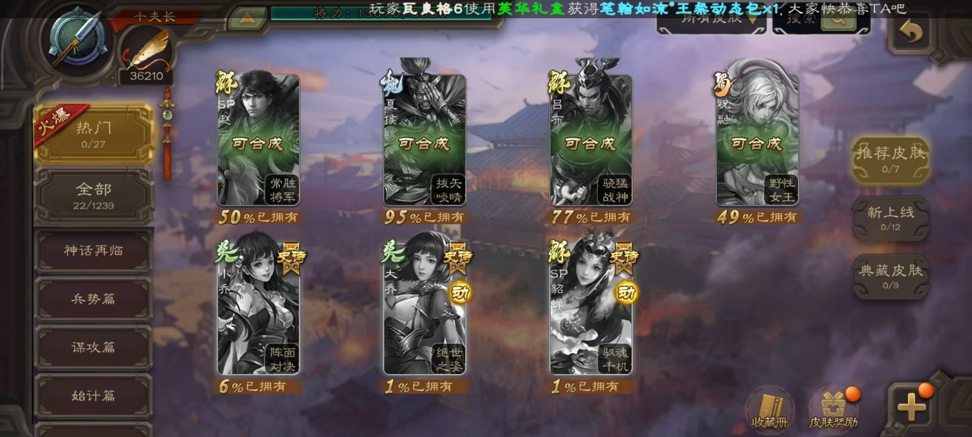 [14575702]vip2 十夫长 1武将 1动态皮肤 2史诗武将 【神将】:神司马懿 【蜀国武将】:谯周
