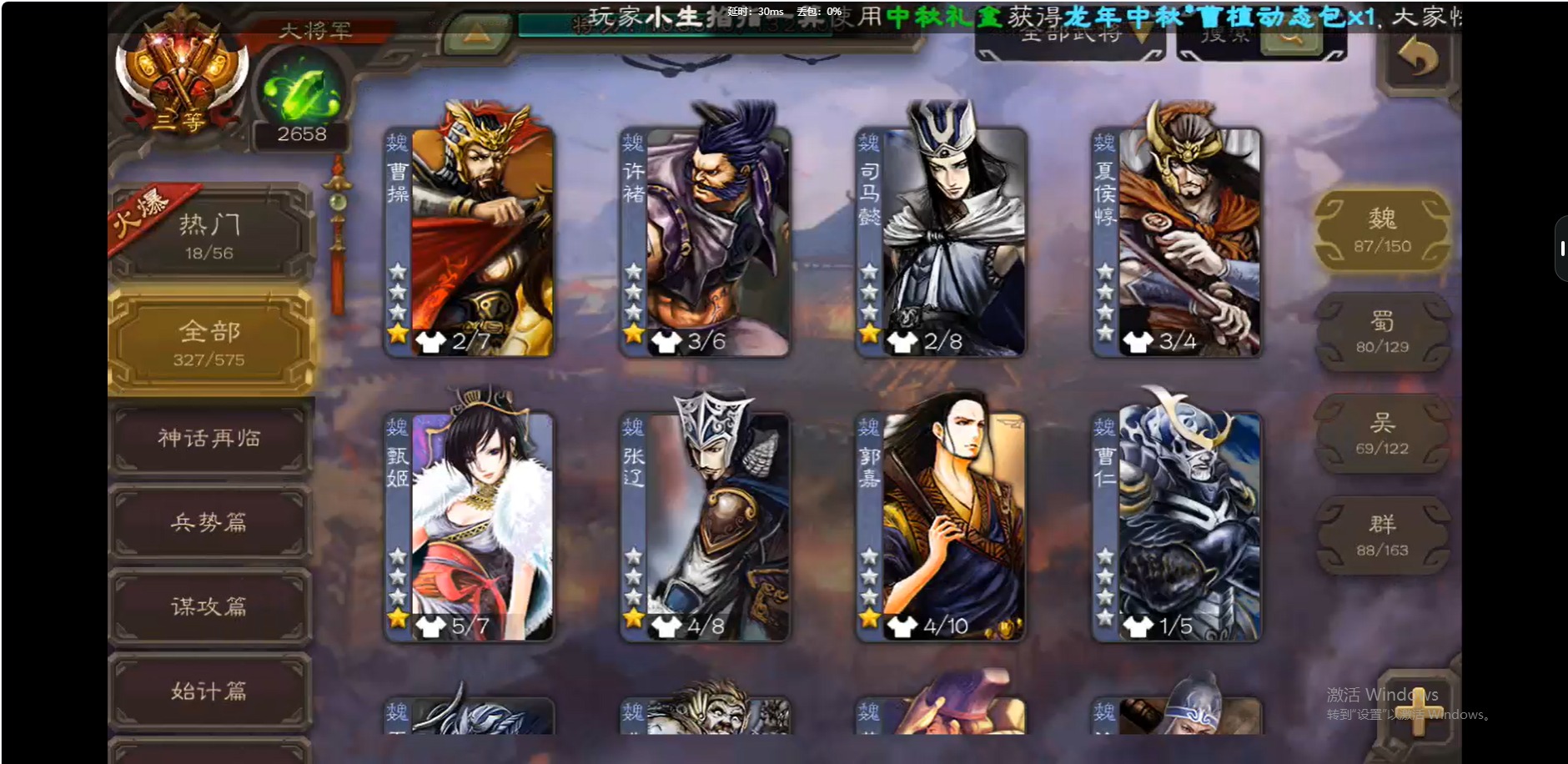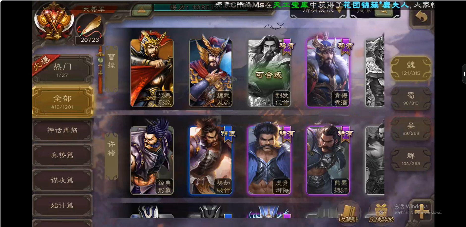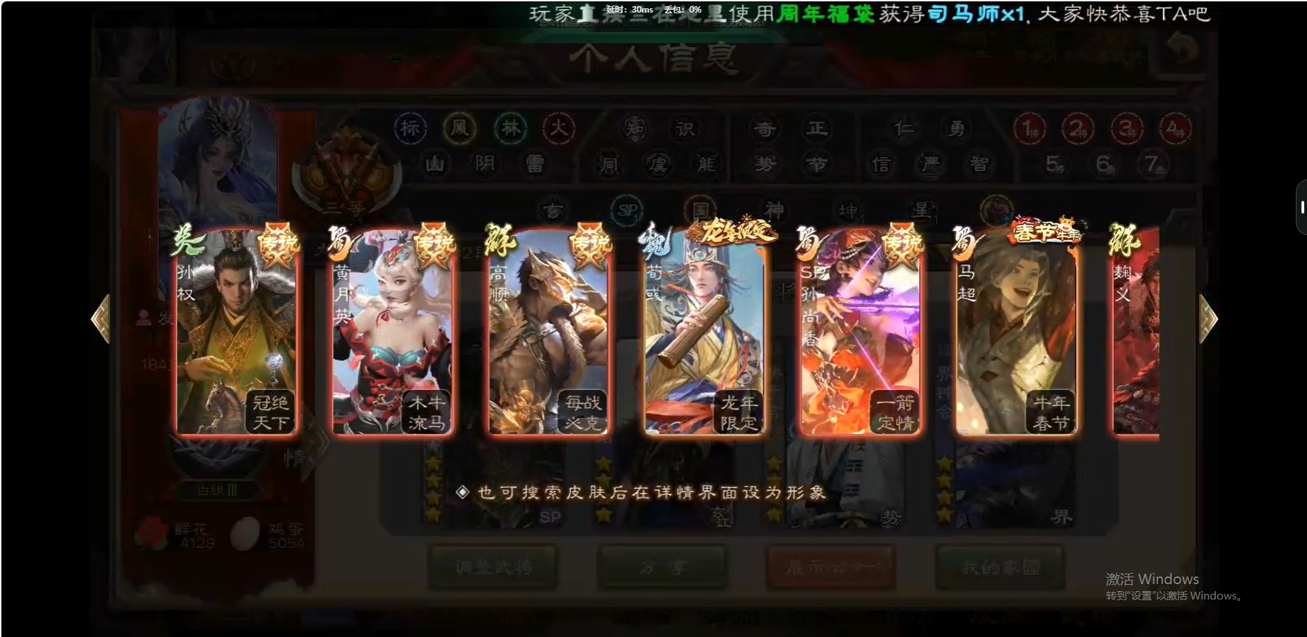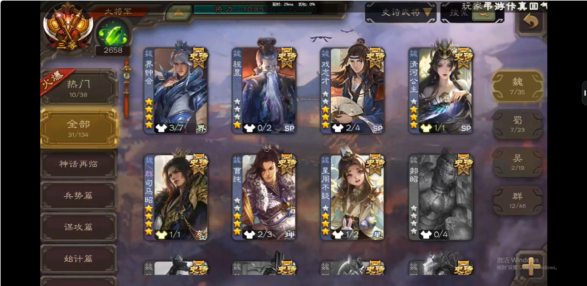 [14619639]vip8 骠骑将军 242武将 11动态皮肤 16史诗武将 【魏国武将】:杨修界钟会界曹真程昱曹纯sp蔡文姬 【蜀国武将】:马云騄谋黄忠谋马超谯周花鬘刘备 【吴国武将】:孙权孙寒华骆统界徐盛 【群国武将】:左慈兀突骨界李儒貂蝉