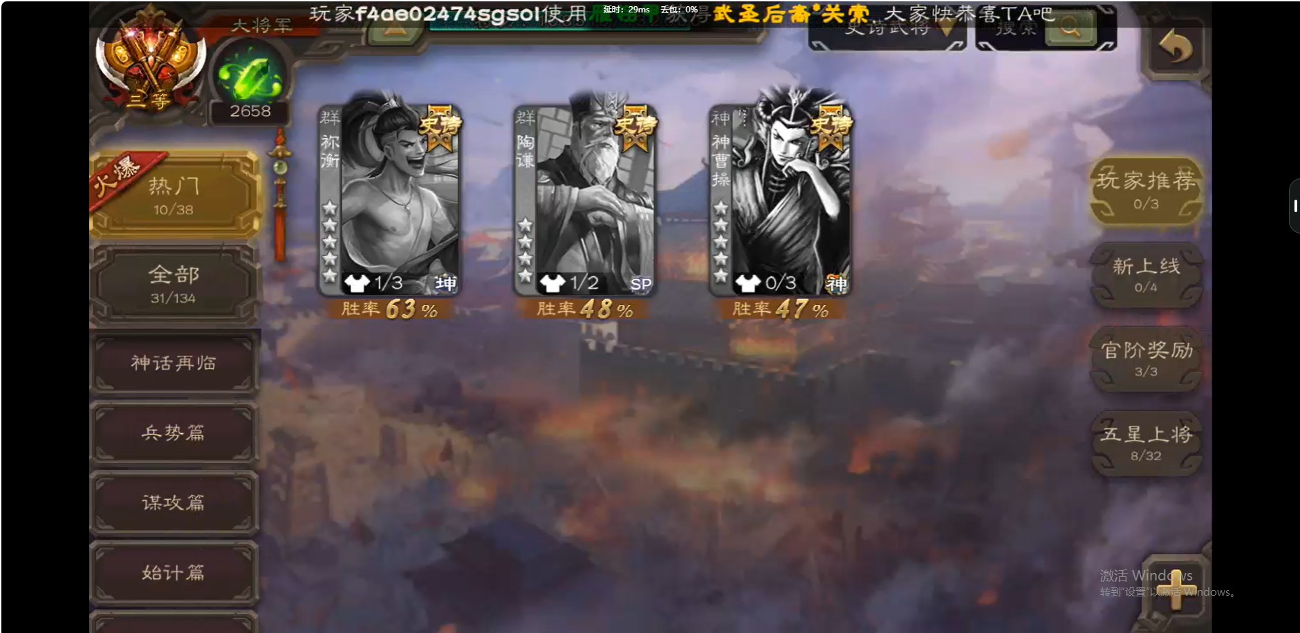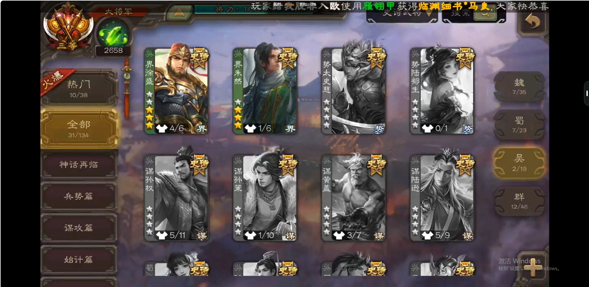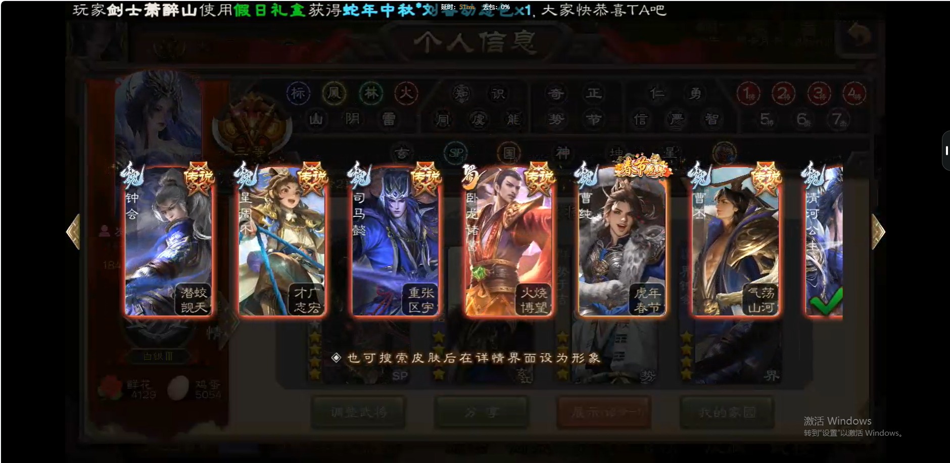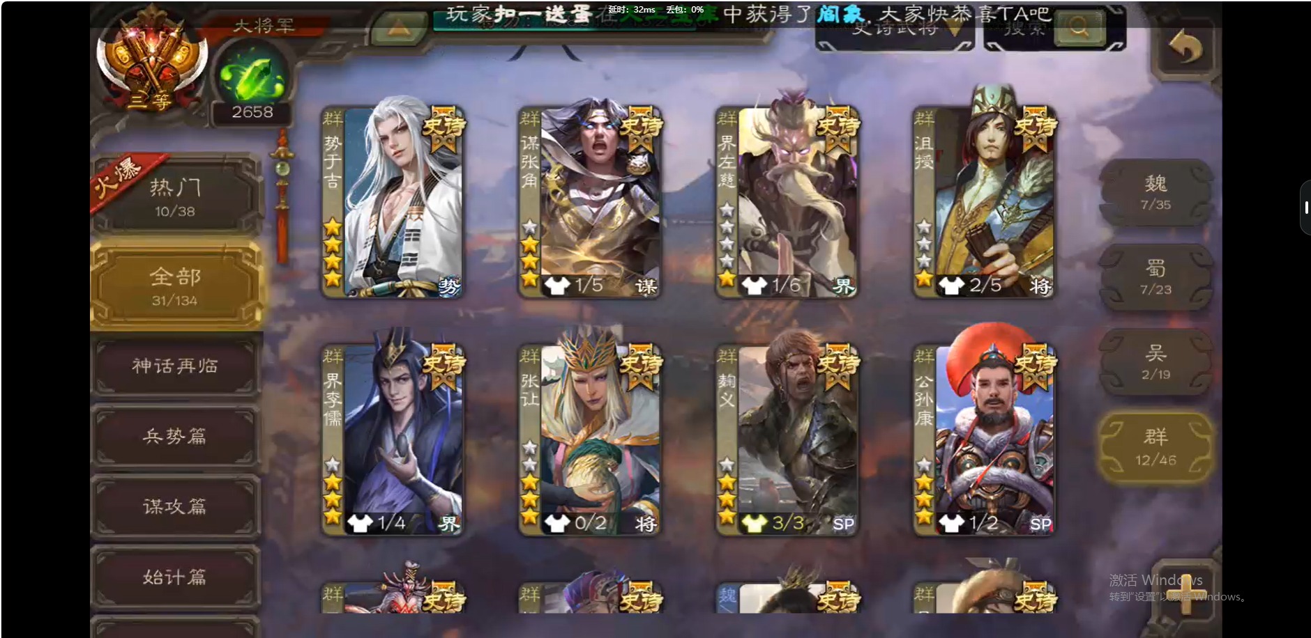 [14619639]vip8 骠骑将军 242武将 11动态皮肤 16史诗武将 【魏国武将】:杨修界钟会界曹真程昱曹纯sp蔡文姬 【蜀国武将】:马云騄谋黄忠谋马超谯周花鬘刘备 【吴国武将】:孙权孙寒华骆统界徐盛 【群国武将】:左慈兀突骨界李儒貂蝉
