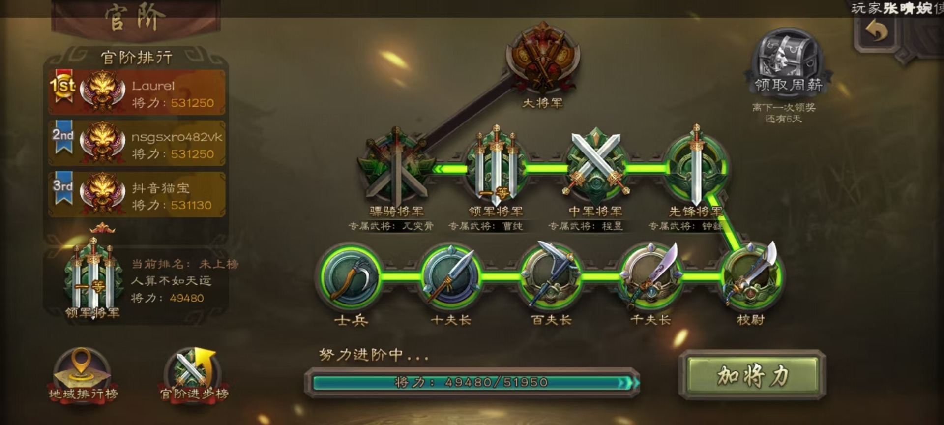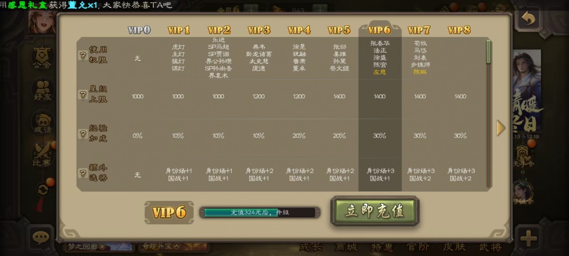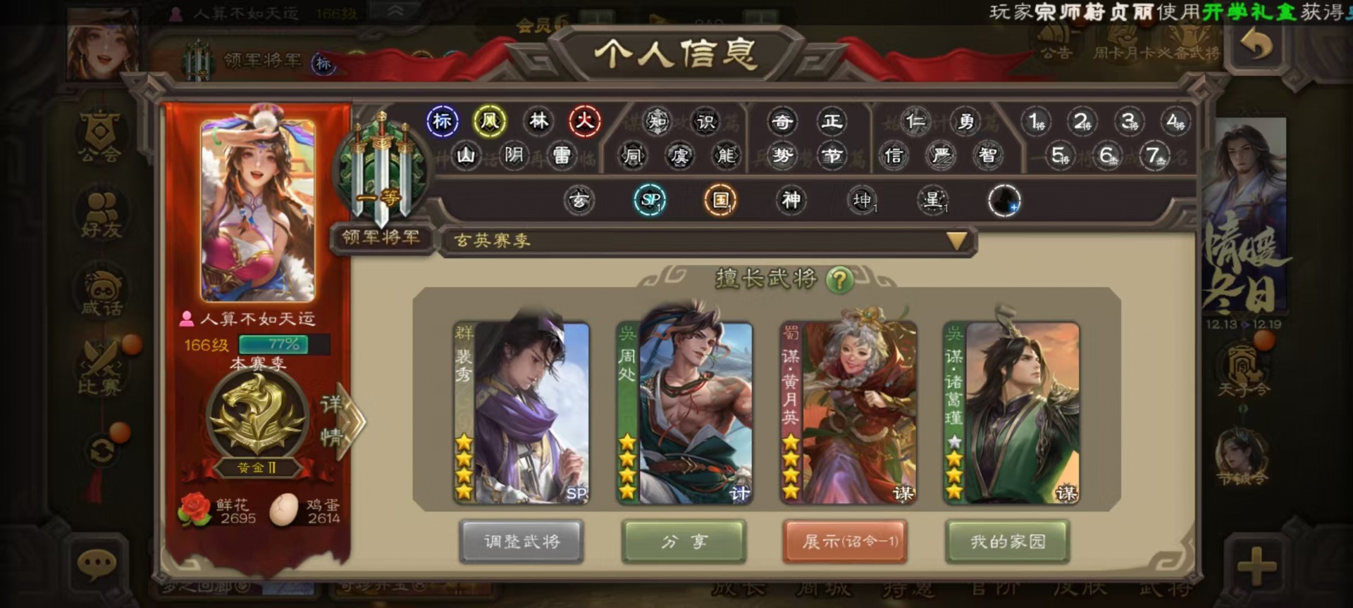 [14630851]vip6 领军将军 222武将 5动态皮肤 13史诗武将 12宝珠 【魏国武将】:星周不疑程昱陈琳曹纯戏志才甄姬司马懿许褚夏侯惇郭嘉曹仁曹操张辽 【蜀国武将】:赵襄谯周界黄忠花鬘 【吴国武将】:周处 【群国武将】:裴秀左慈张琪瑛