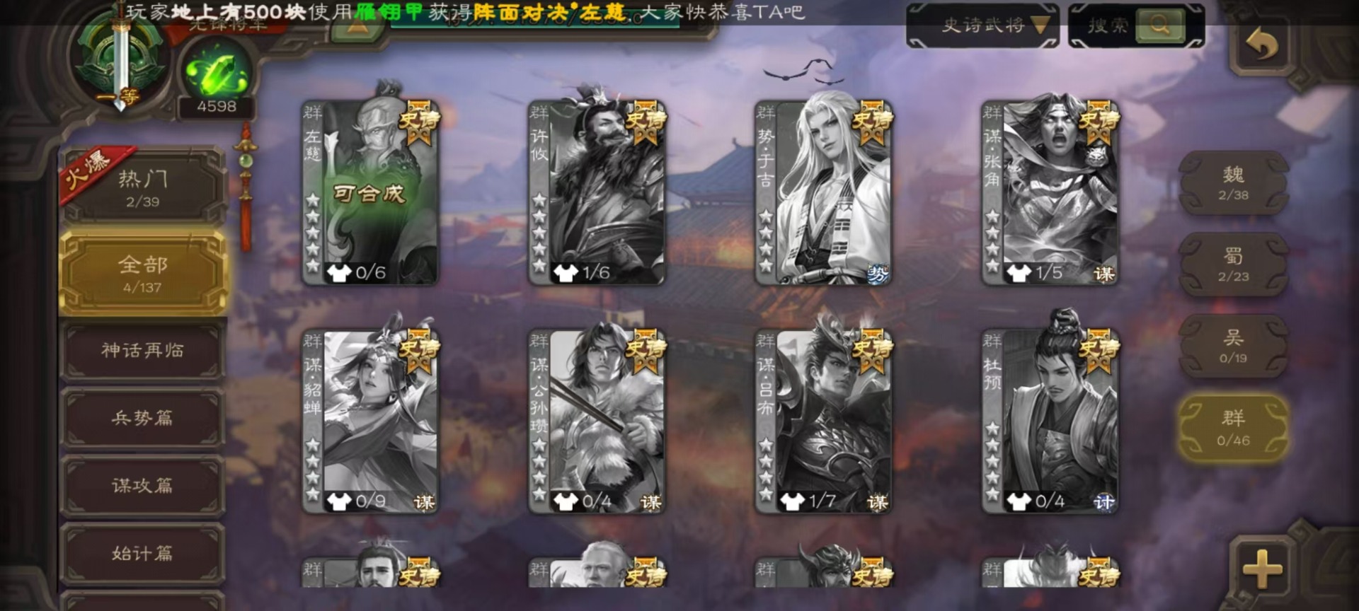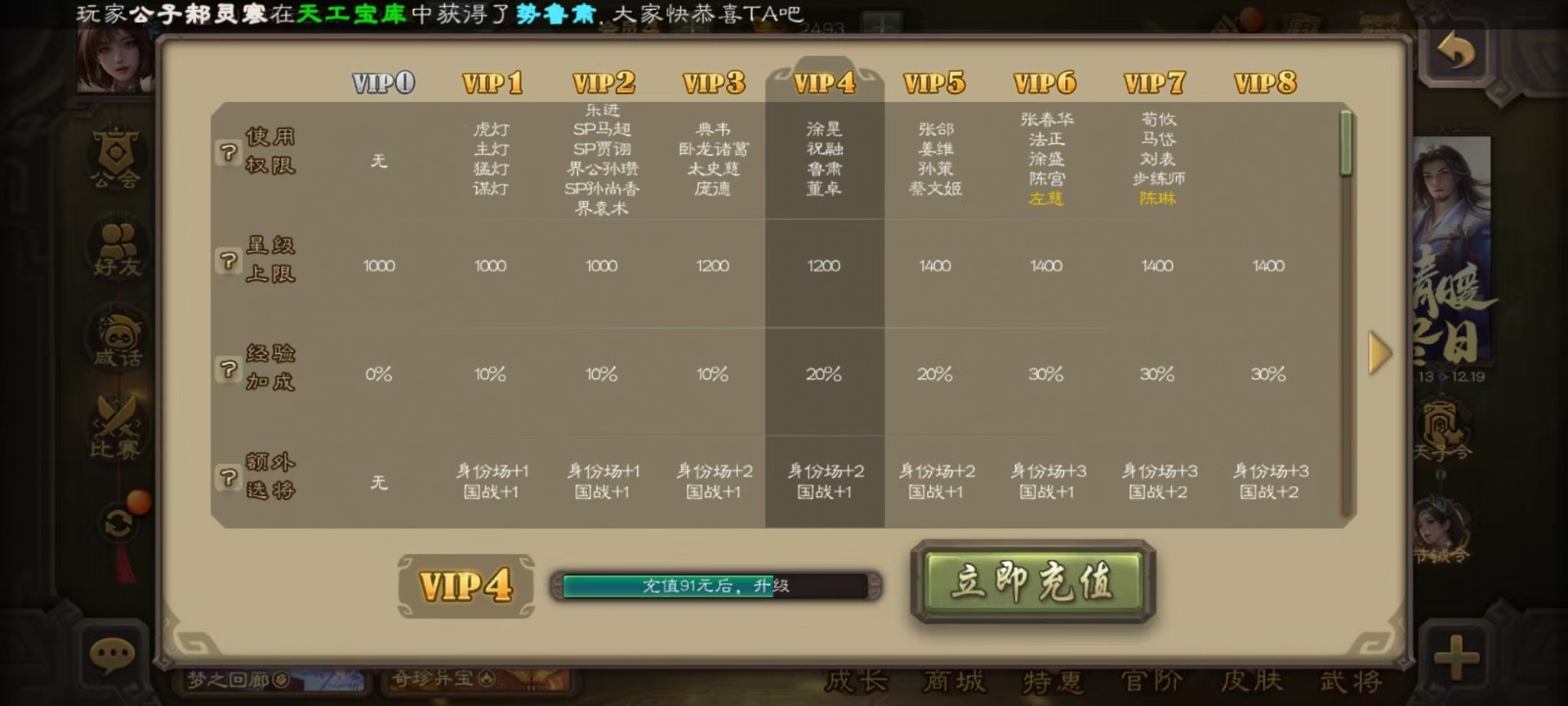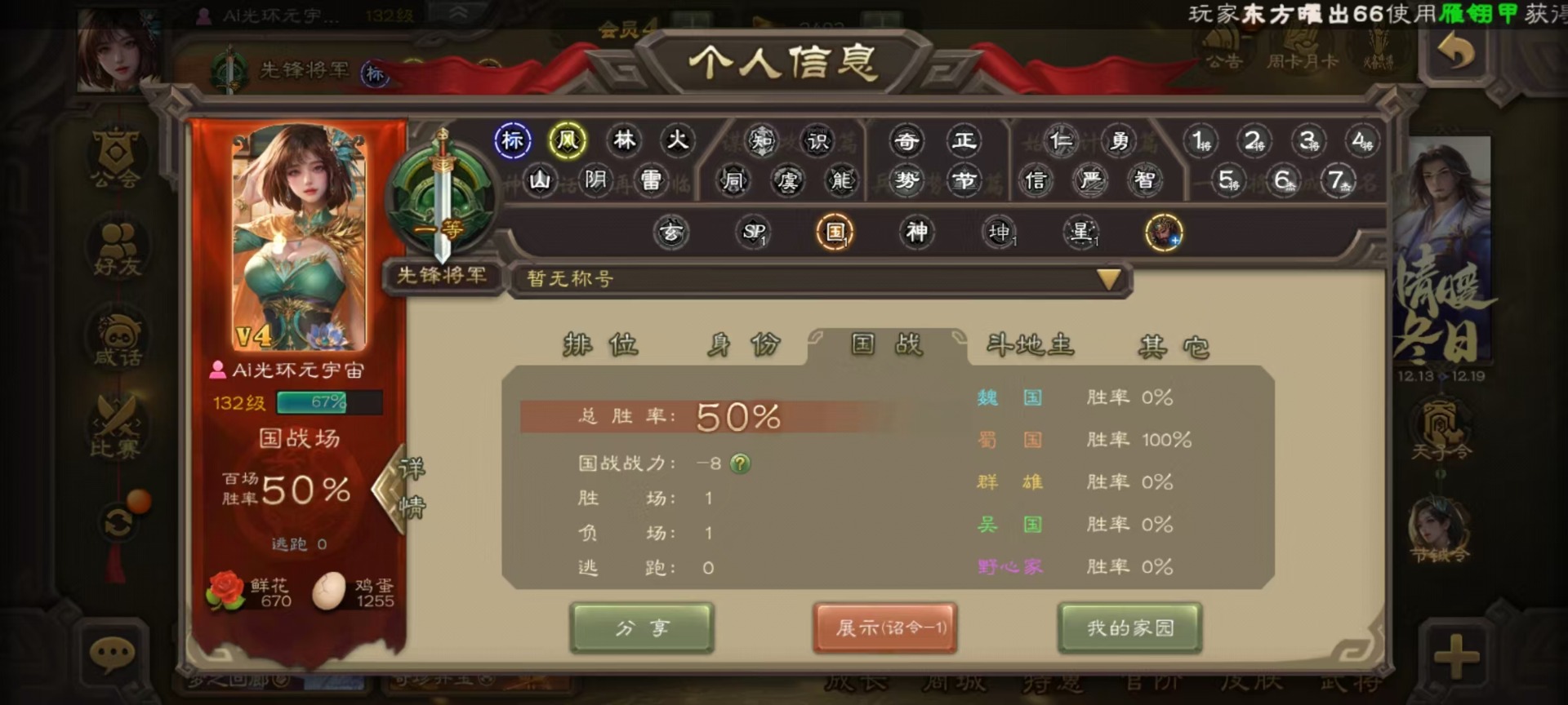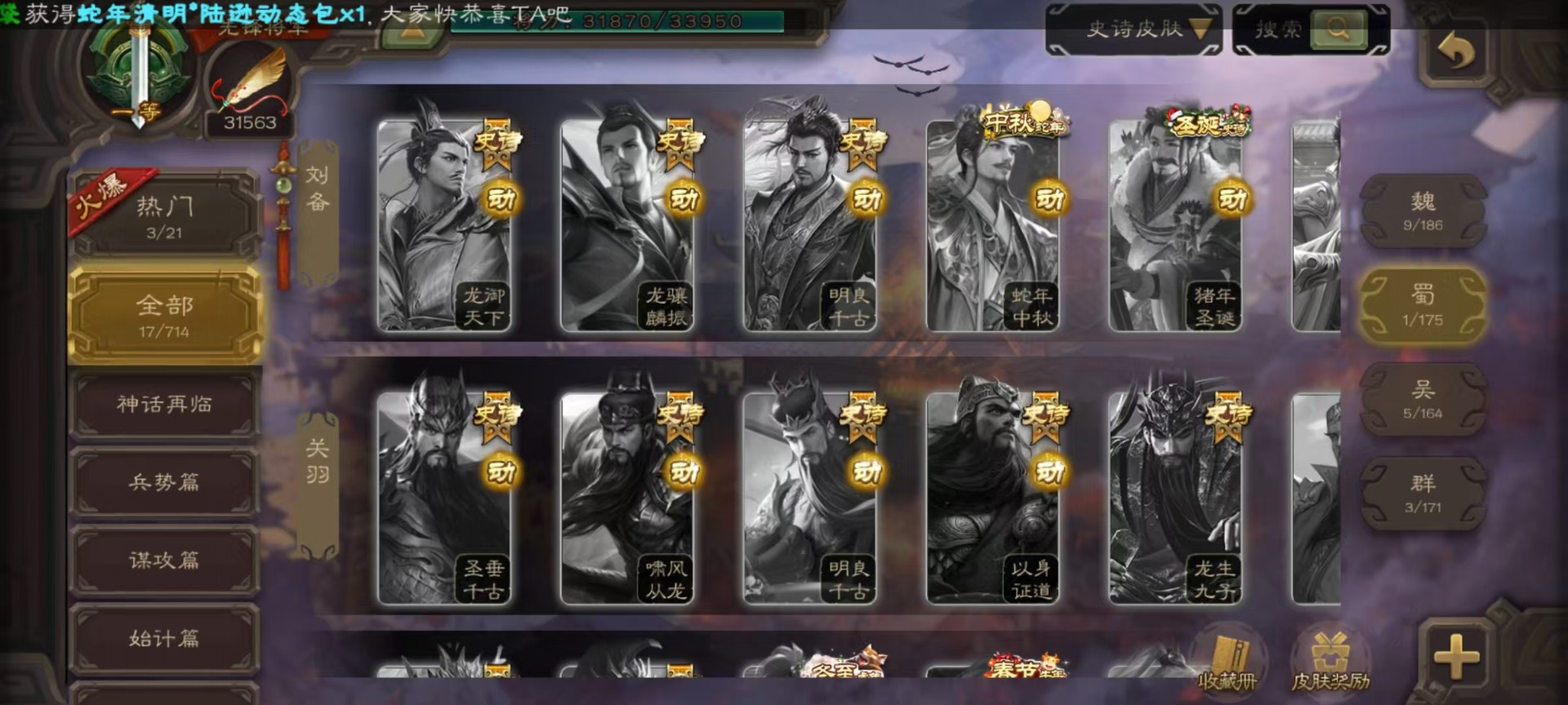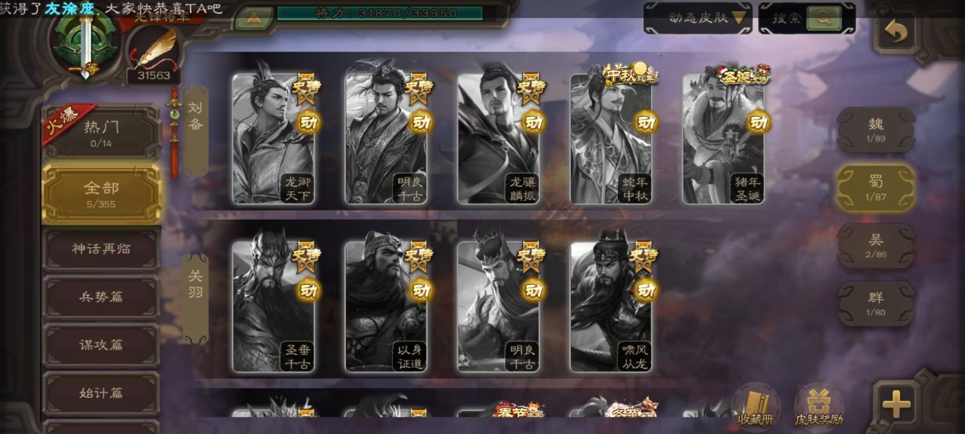 [14630876]vip4 先锋将军 159武将 5动态皮肤 4史诗武将 1宝珠 【魏国武将】:曹婴谋夏侯惇甄姬司马懿许褚夏侯惇郭嘉曹仁曹操张辽 【蜀国武将】:谋黄忠谋关羽