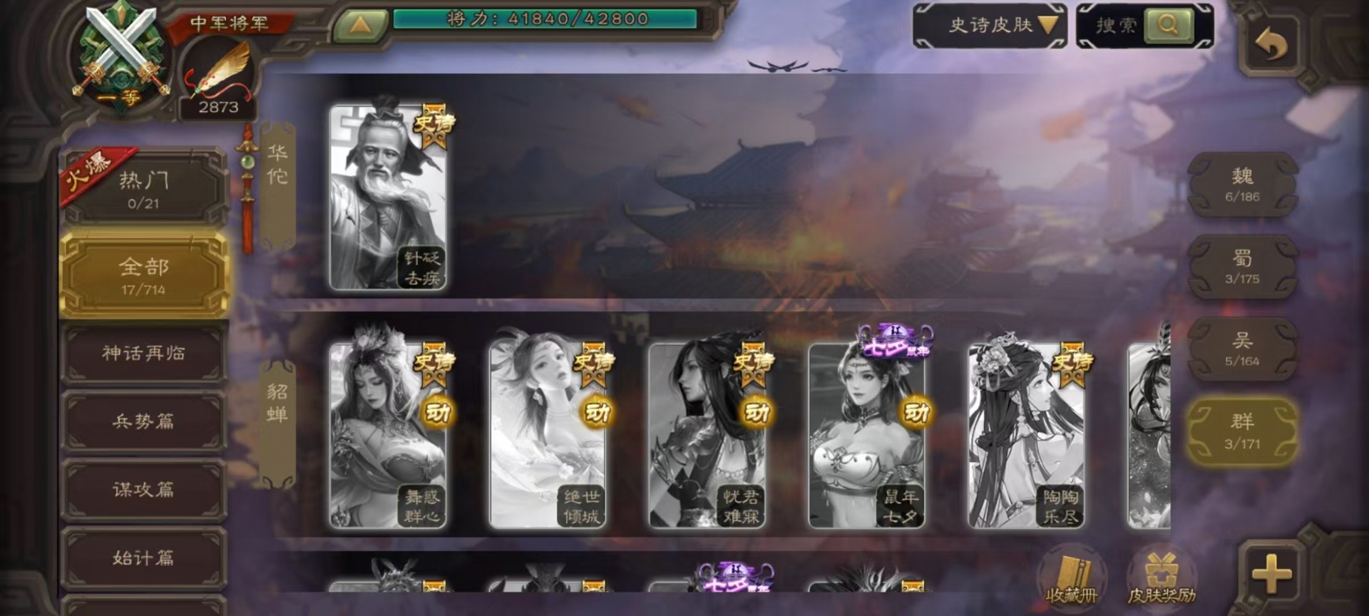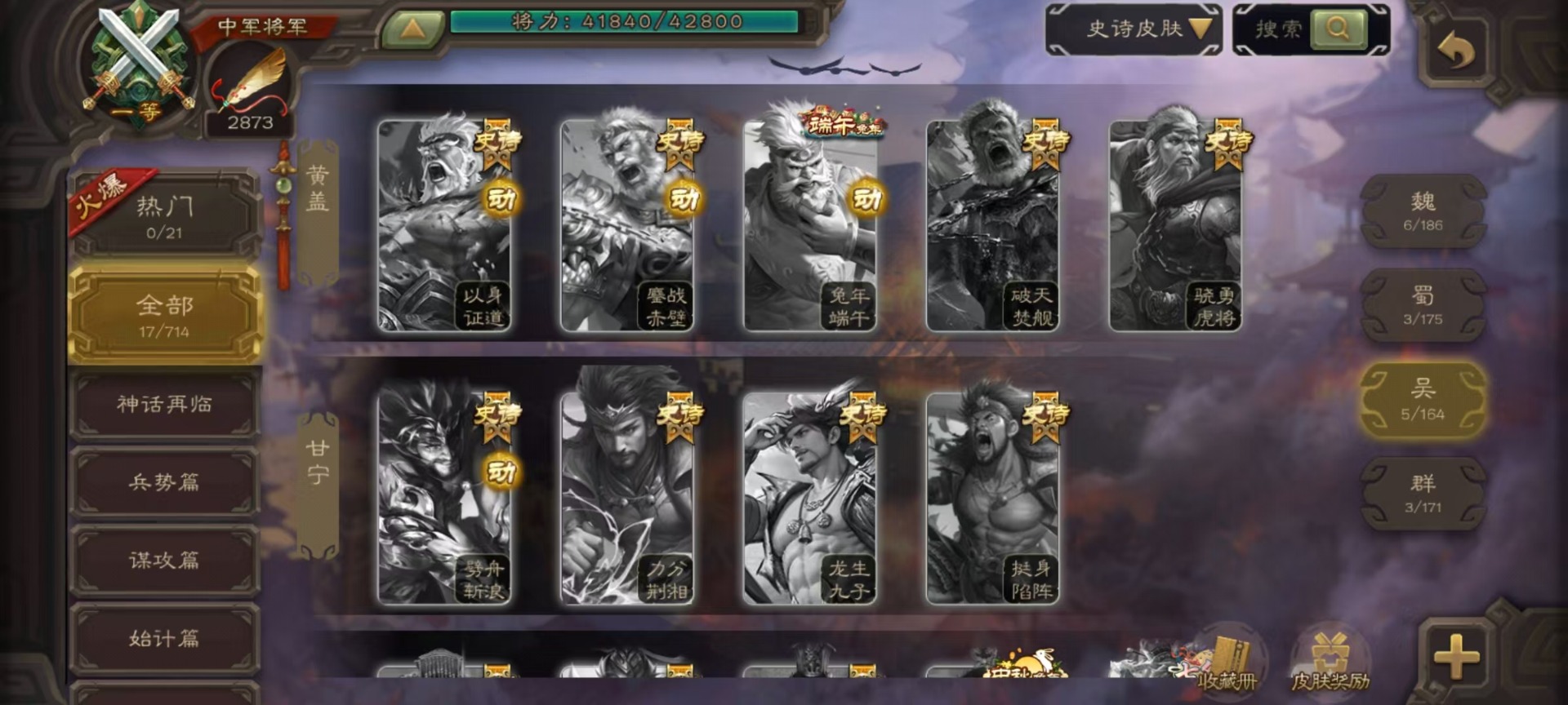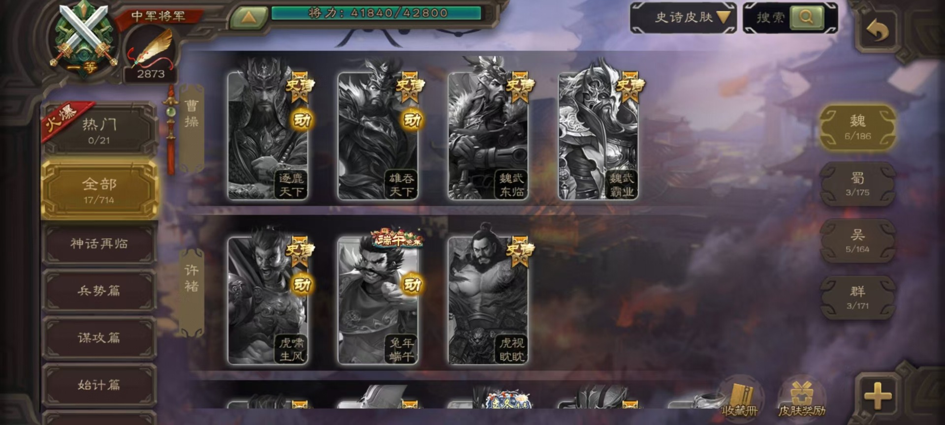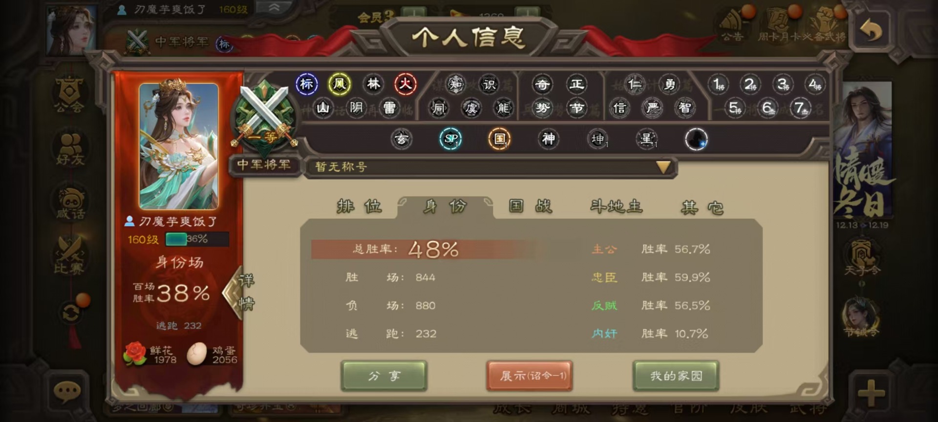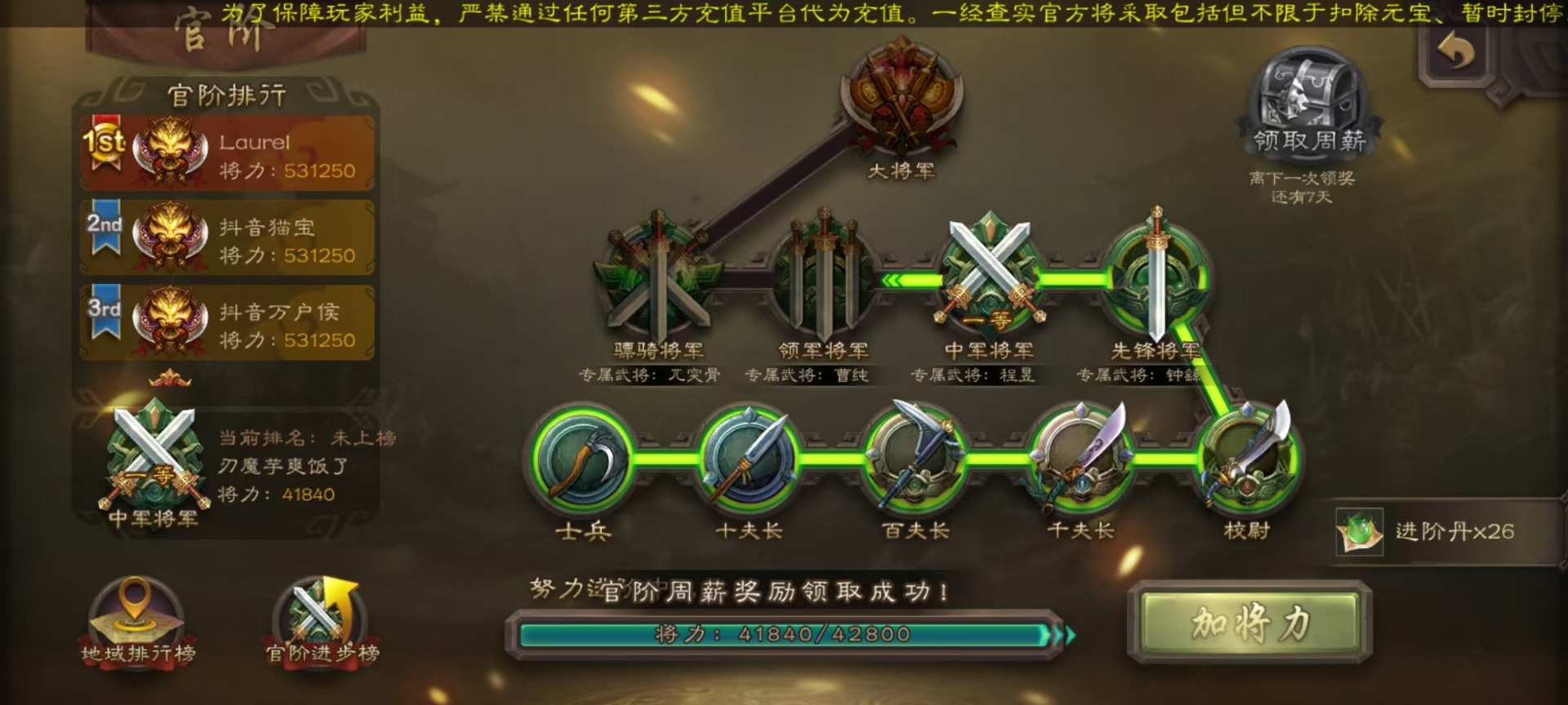 [14631164]vip3 中军将军 188武将 7动态皮肤 9史诗武将 【魏国武将】:星周不疑界钟会程昱甄姬司马懿许褚夏侯惇郭嘉曹仁曹操张辽 【蜀国武将】:谋诸葛亮谋赵云界黄忠 【吴国武将】:界徐盛 【群国武将】:星黄忠麹义