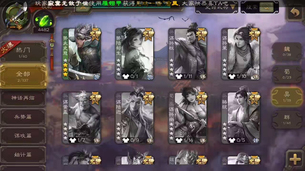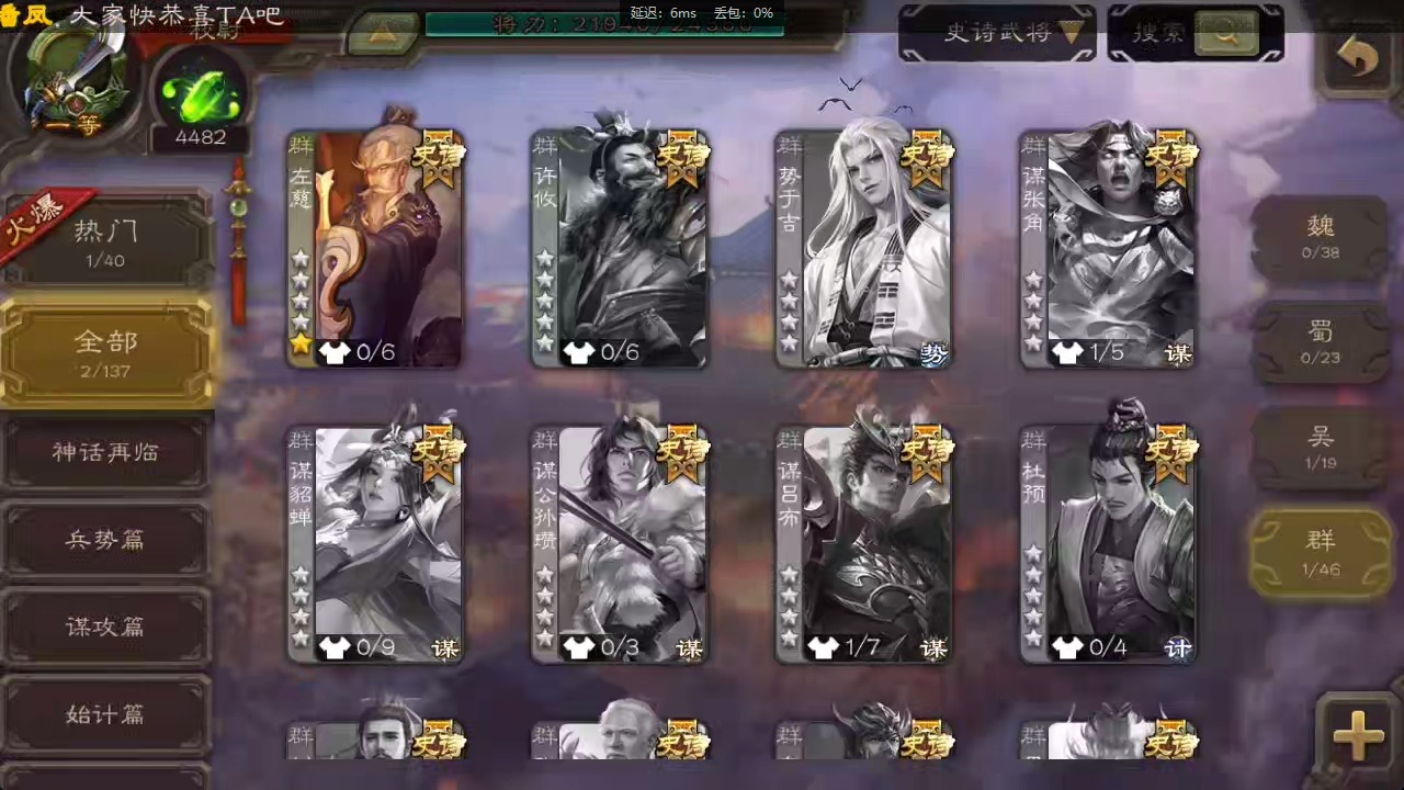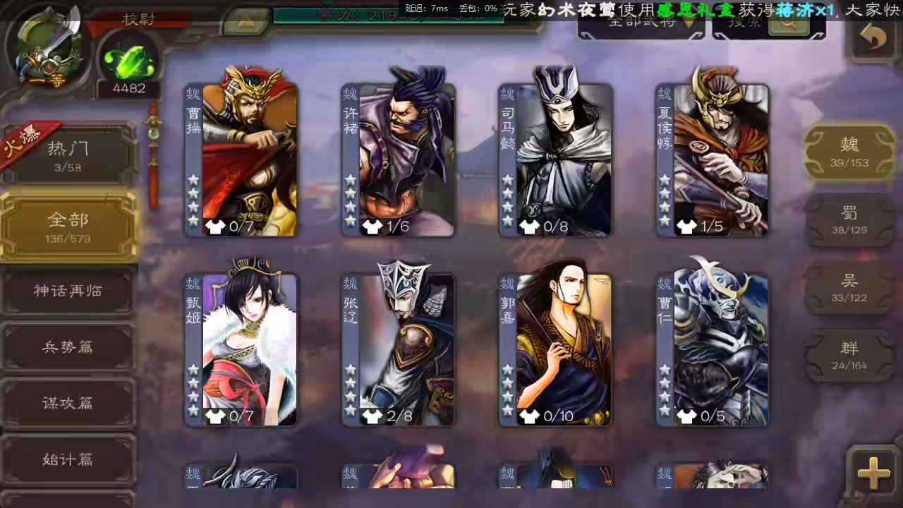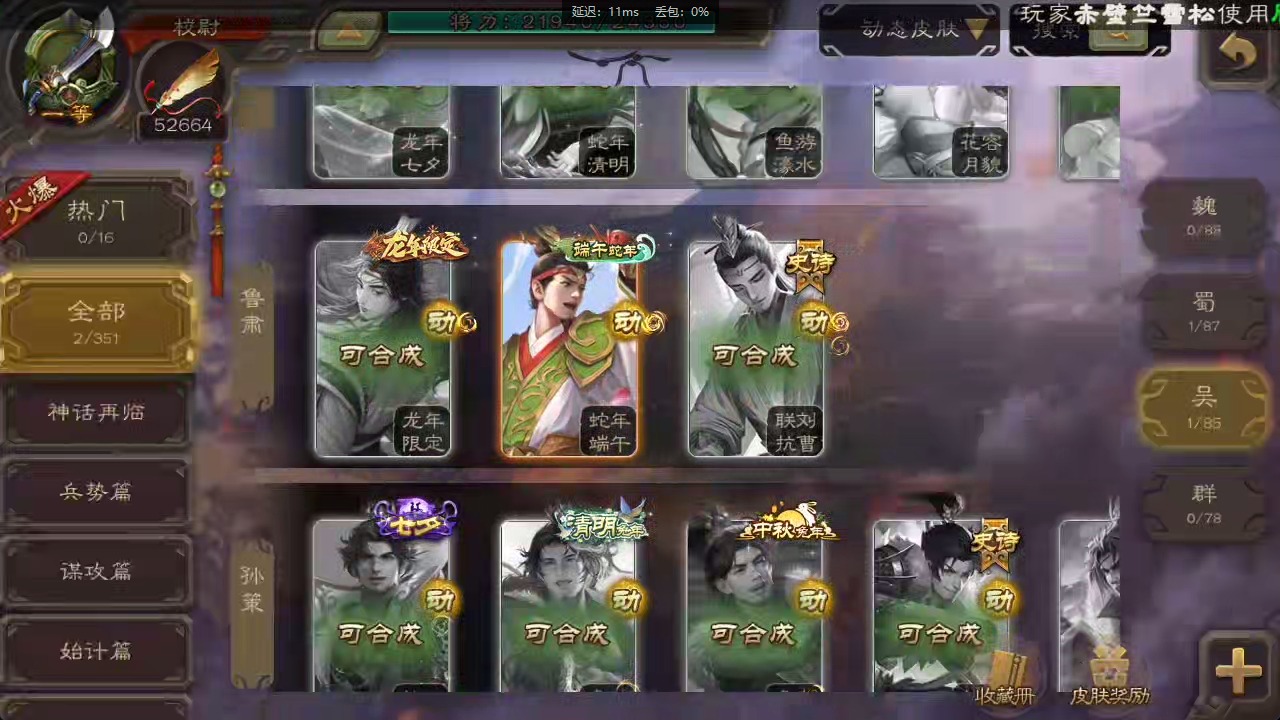 [14632200]vip3 校尉 136武将 2动态皮肤 2史诗武将 【魏国武将】:甄姬司马懿许褚夏侯惇郭嘉曹仁曹操张辽 【吴国武将】:势太史慈 【群国武将】:左慈
