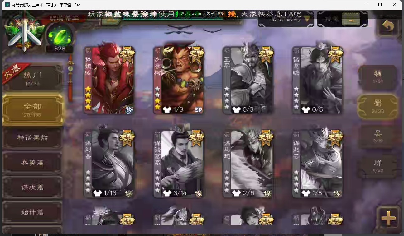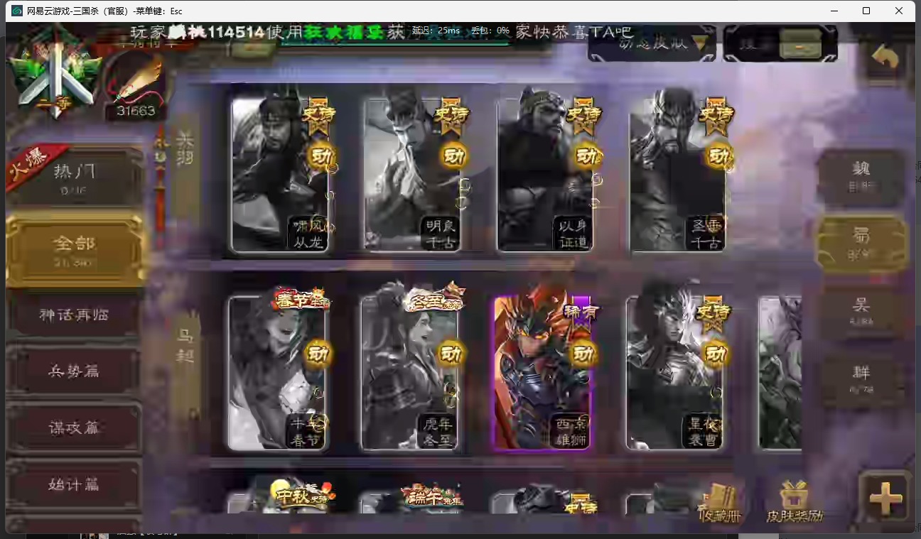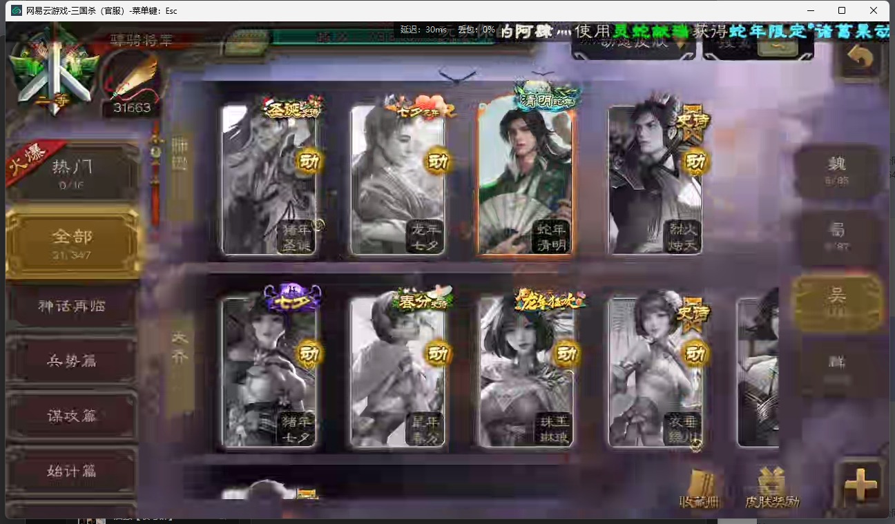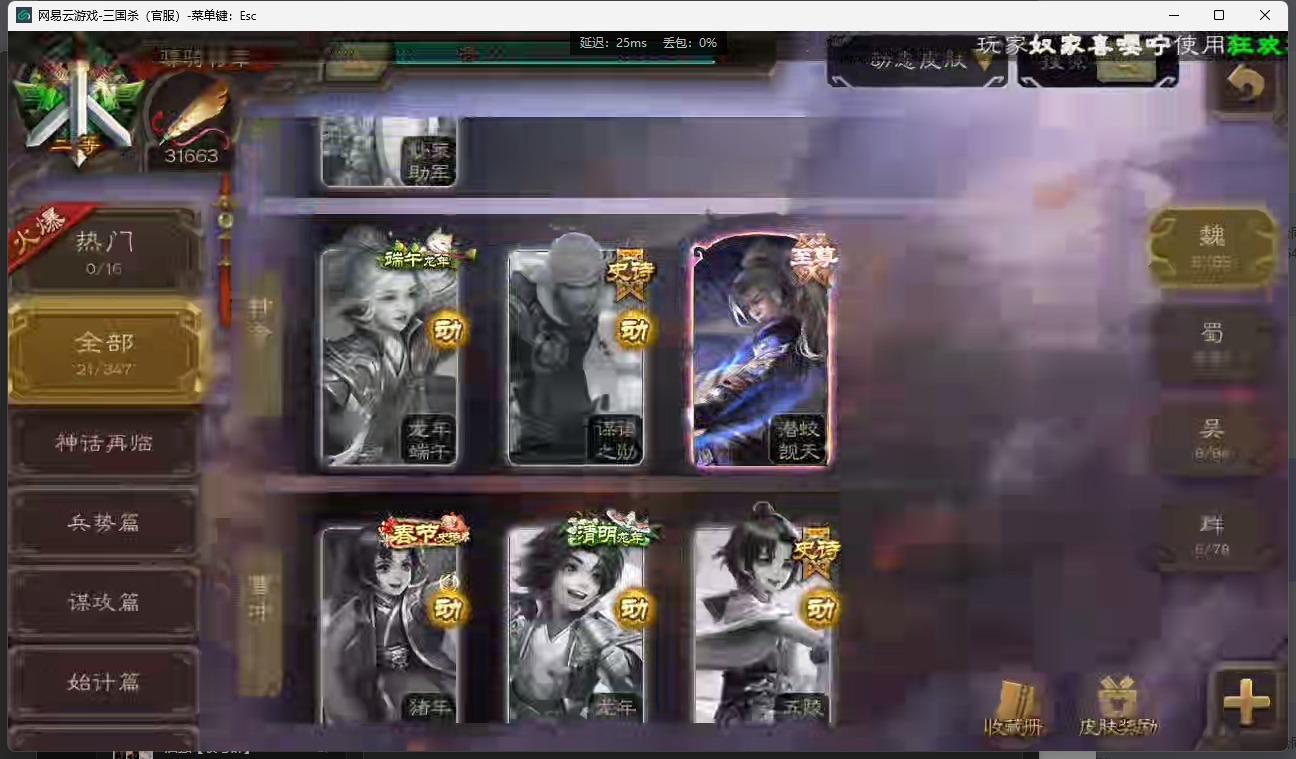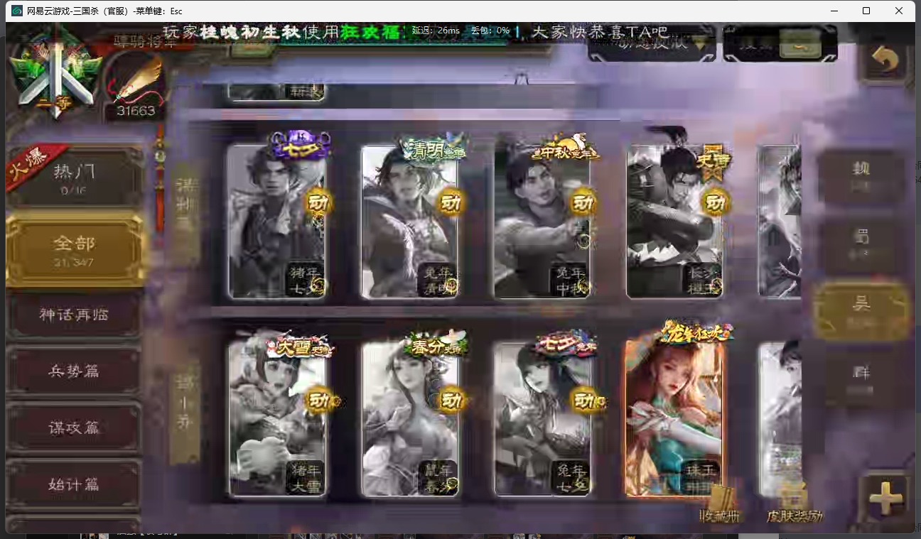 [14649348]vip9 骠骑将军 283武将 21动态皮肤 20史诗武将 1宝珠 【神将】:神吕布神赵云神张辽 【魏国武将】:清河公主曹髦界钟会程昱曹婴曹纯甄姬司马懿许褚夏侯惇郭嘉曹仁曹操张辽 【蜀国武将】:势魏延沙摩柯 【吴国武将】:势陆郁生骆统界徐盛 【群国武将】:兀突骨麹义南华老仙沮授许攸