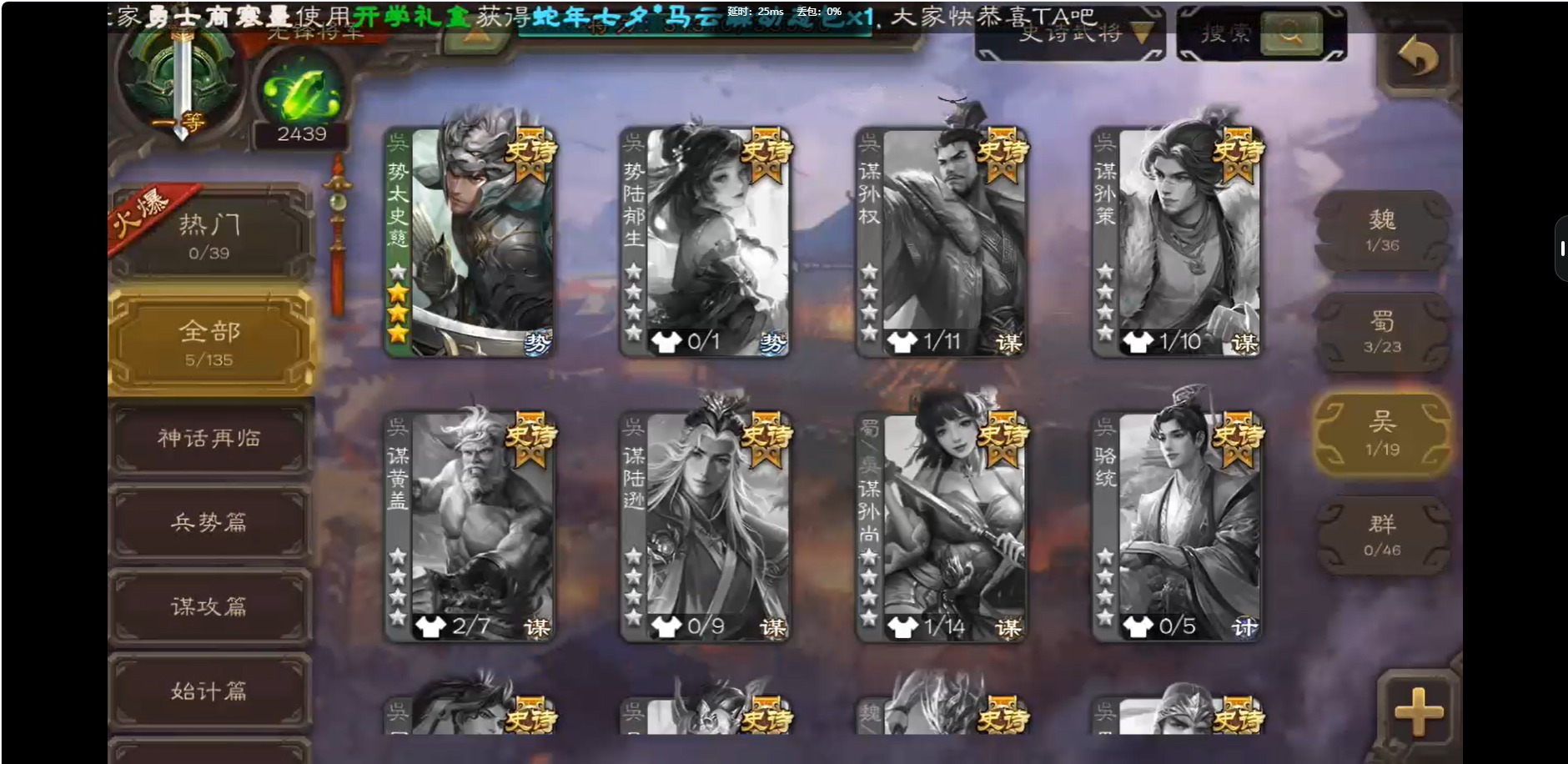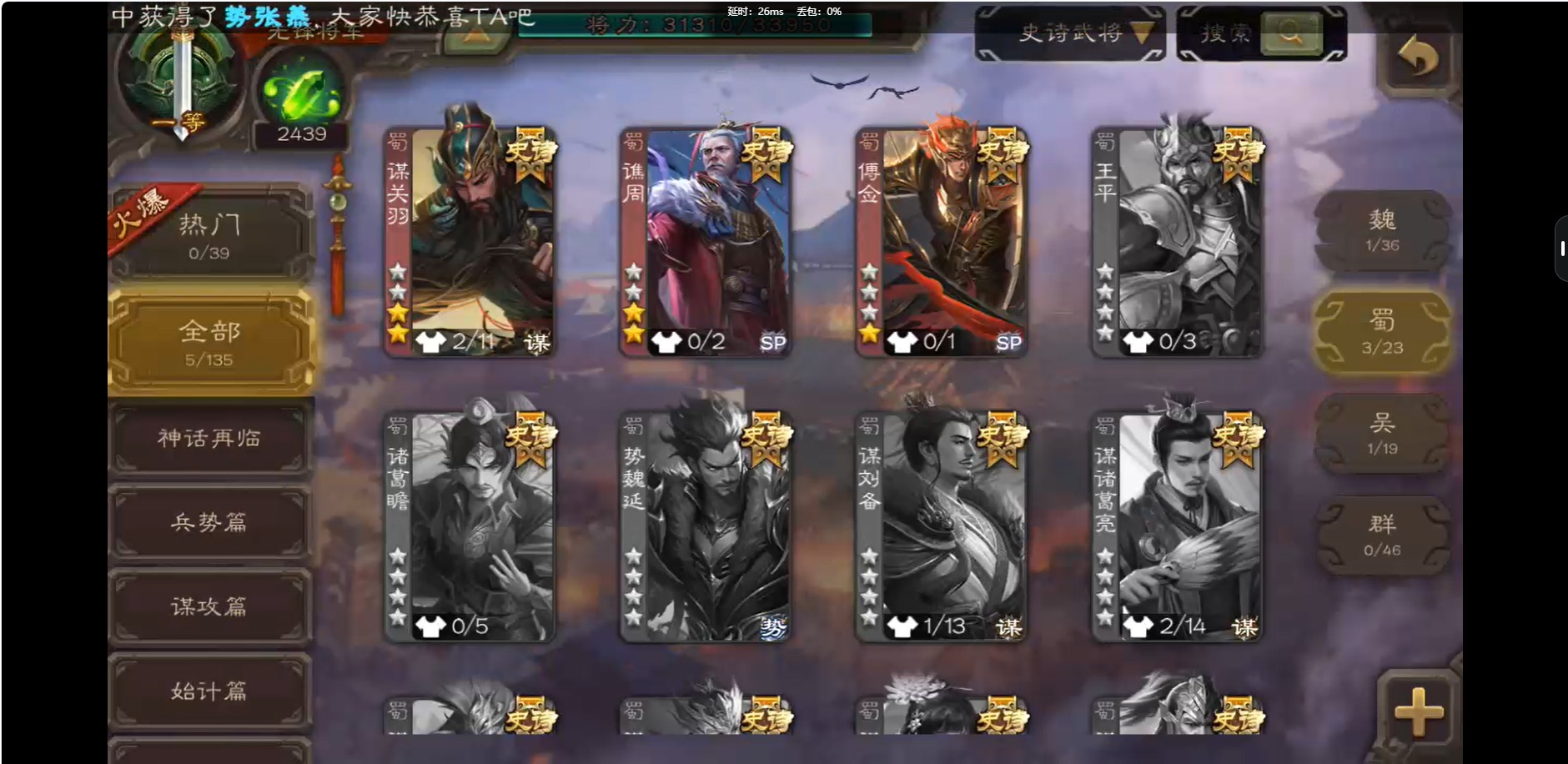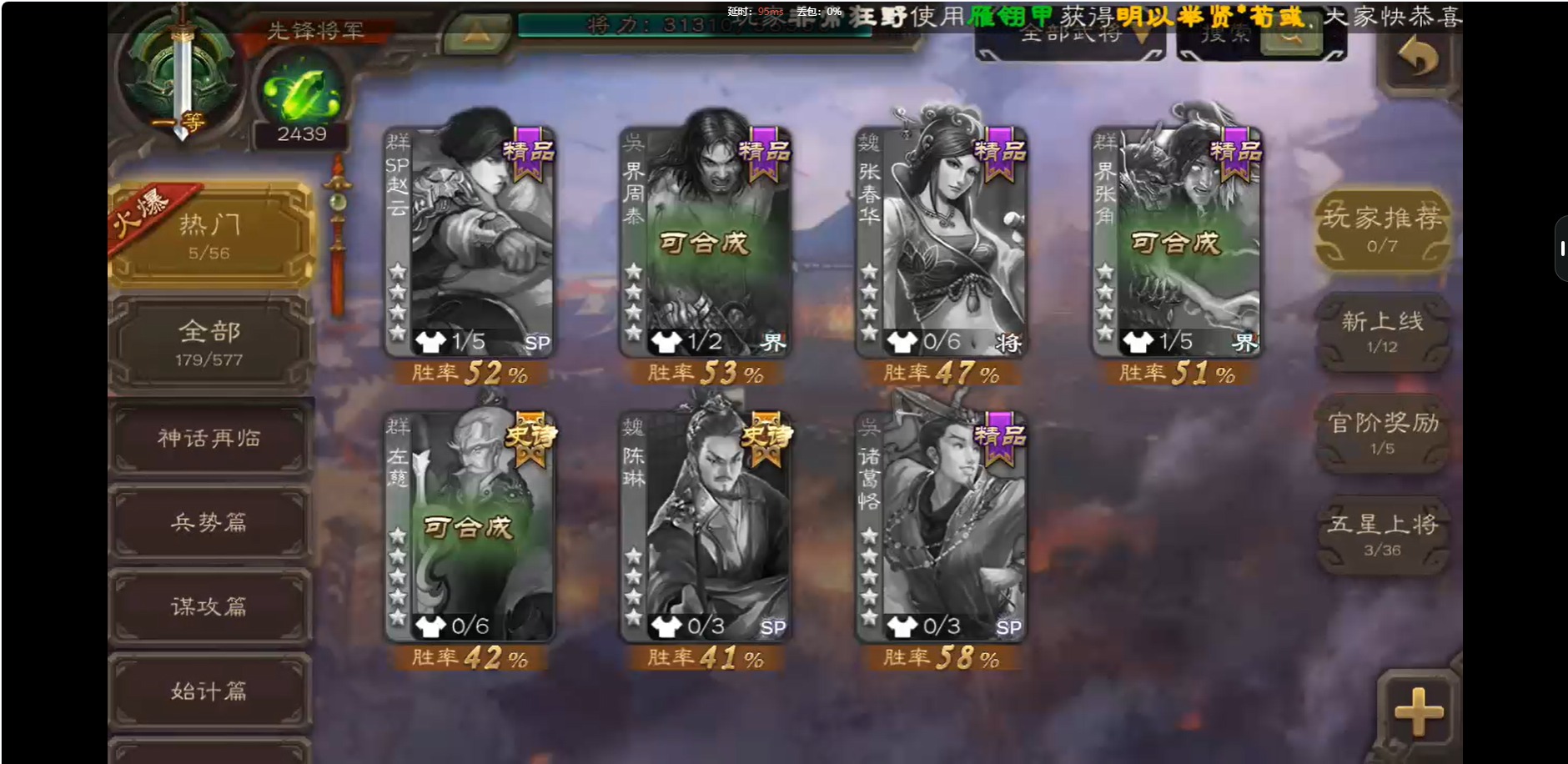 [14649357]vip4 先锋将军 179武将 1动态皮肤 5史诗武将 【魏国武将】:界钟会甄姬 【蜀国武将】:谯周傅佥关银屏谋关羽 【吴国武将】:势太史慈 【群国武将】:何太后