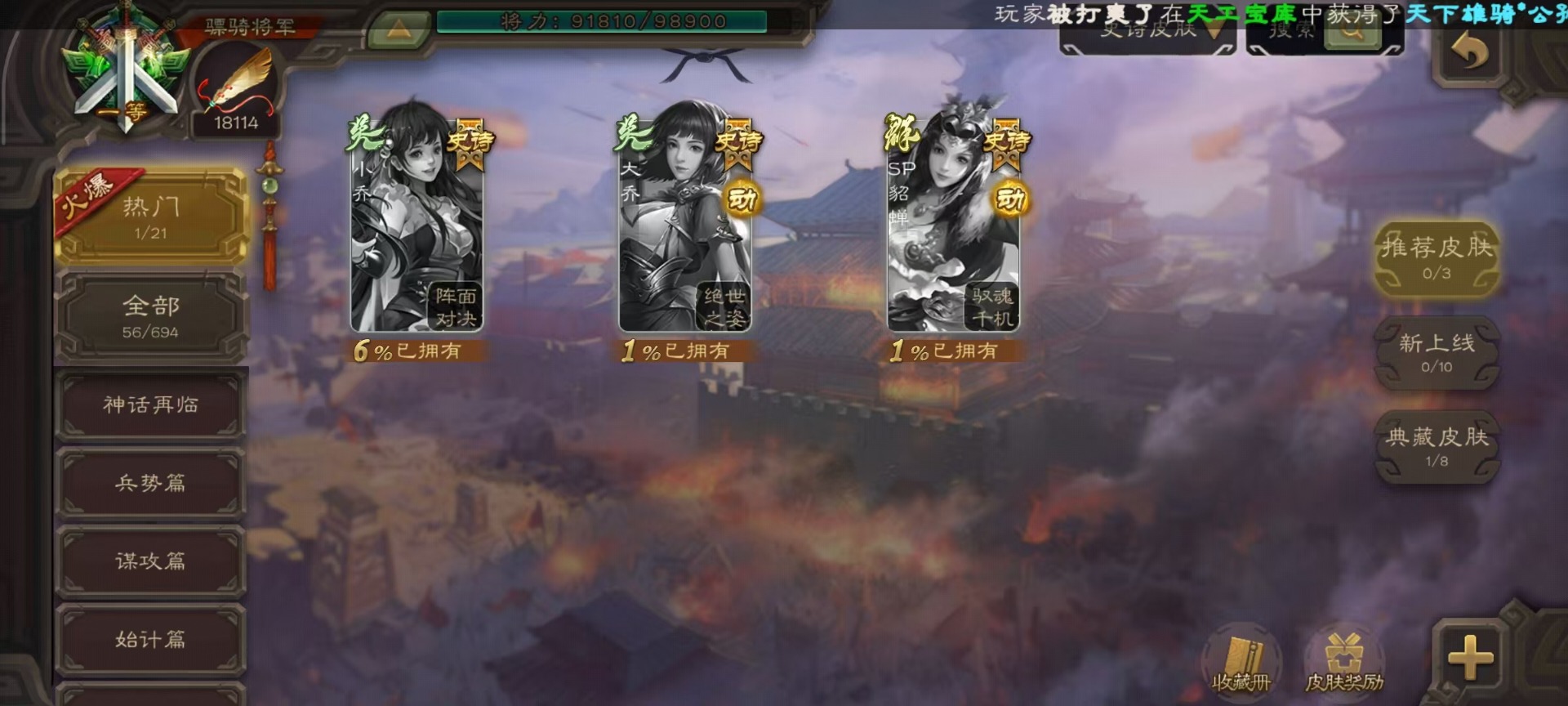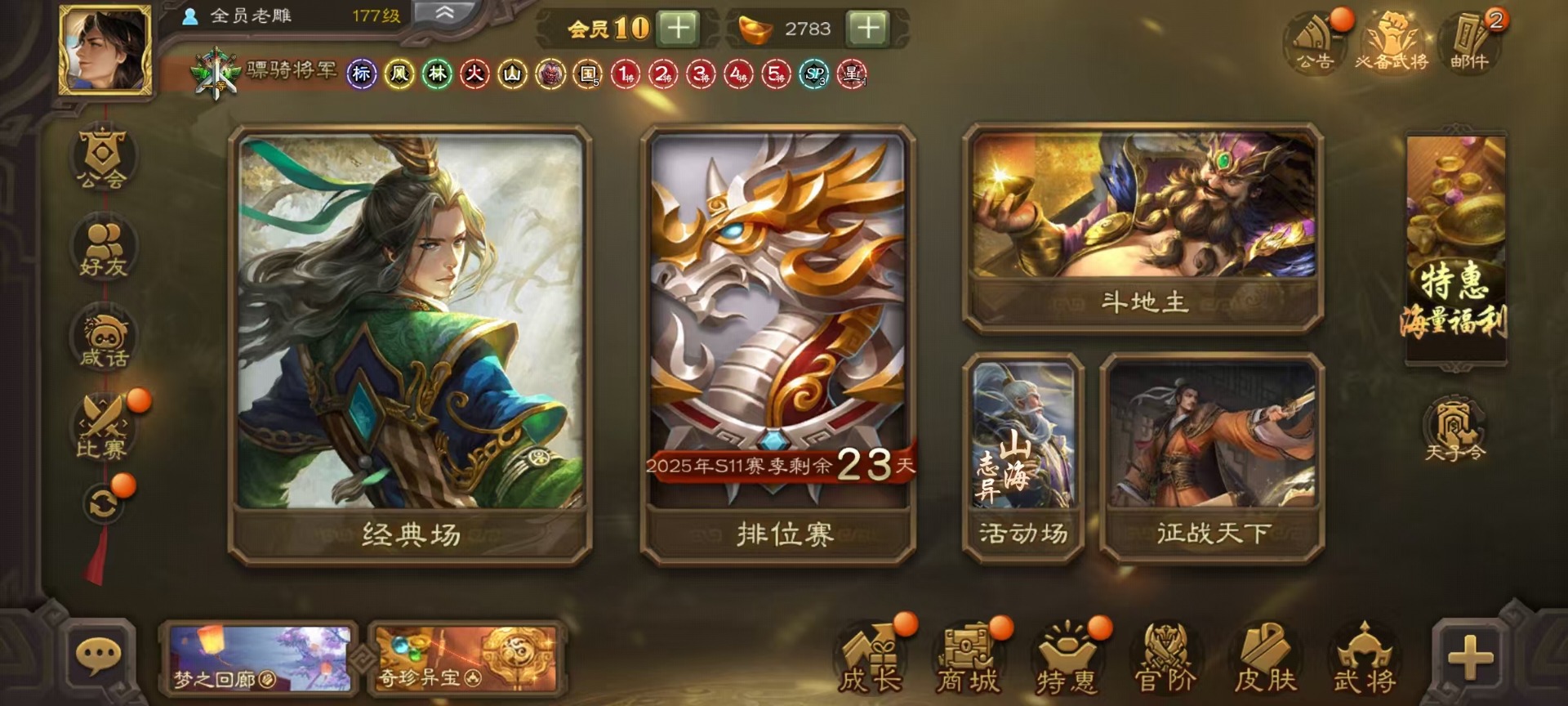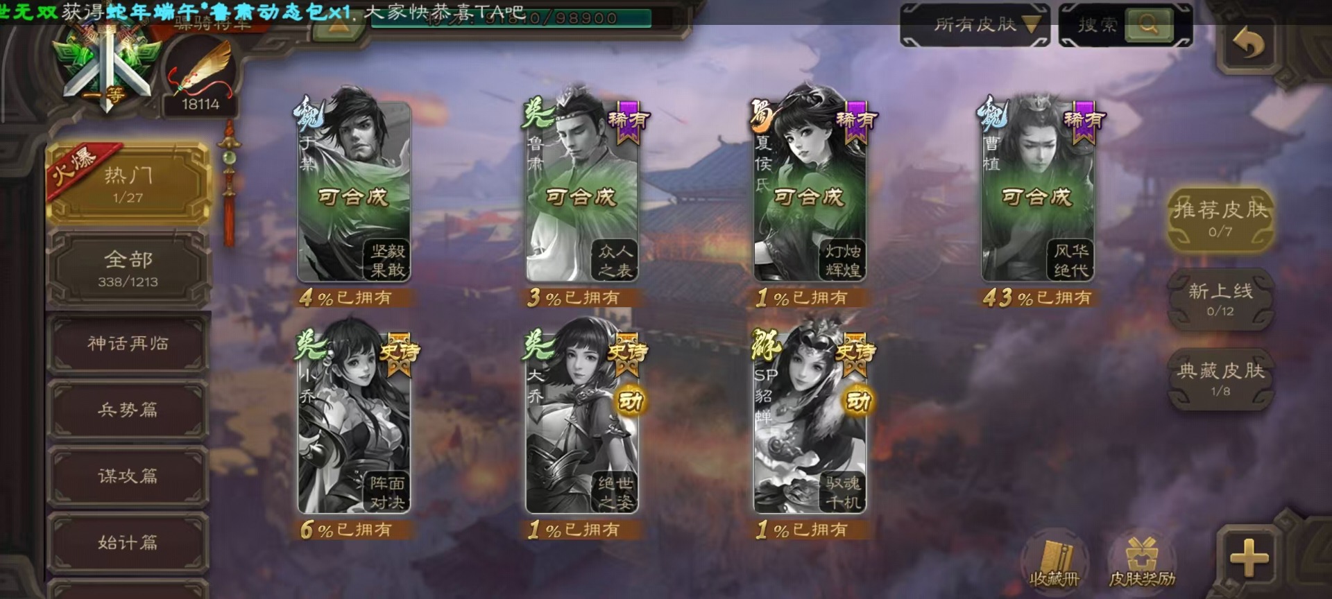 [14649581]vip10 骠骑将军 324武将 24动态皮肤 32史诗武将 【神将】:神吕布神赵云神张辽神太史慈神华佗 【魏国武将】:星周不疑马钧界于禁嵇康程昱曹纯戏志才谋夏侯惇 【蜀国武将】:沙摩柯谯周花鬘关索董允 【吴国武将】:吴景界徐盛 【群国武将】:星董卓谋貂蝉左慈星黄忠兀突骨司马徽麹义南华老仙沮授界李儒杜预许攸