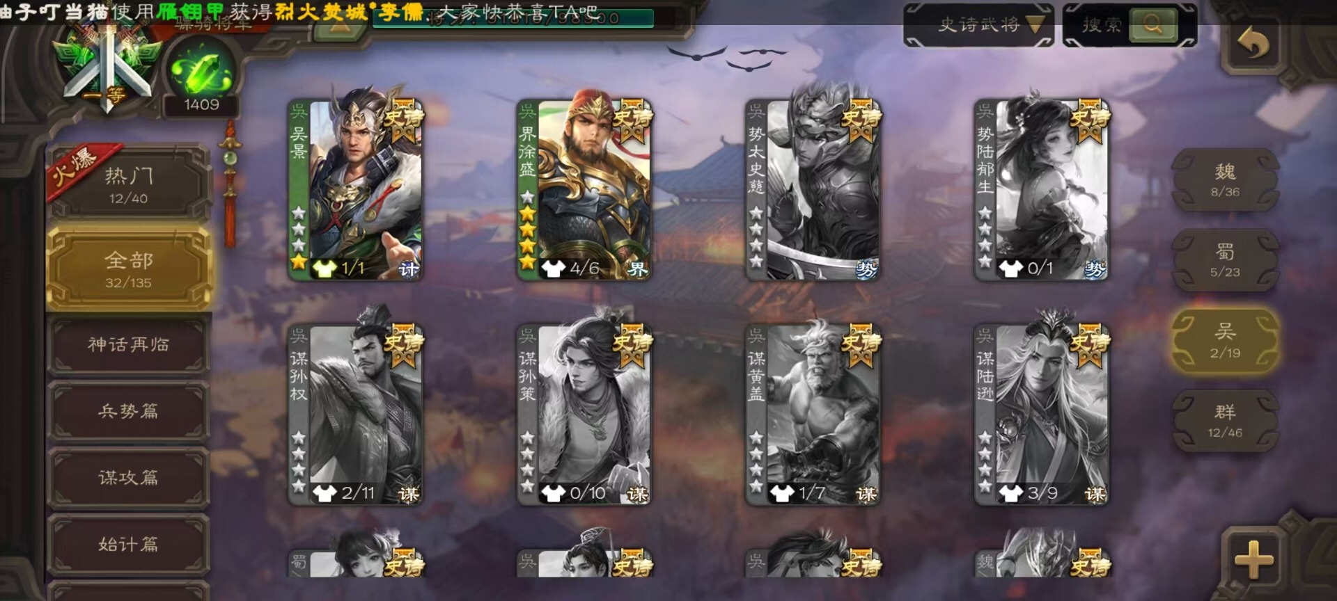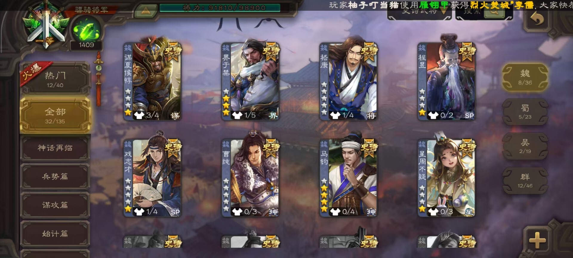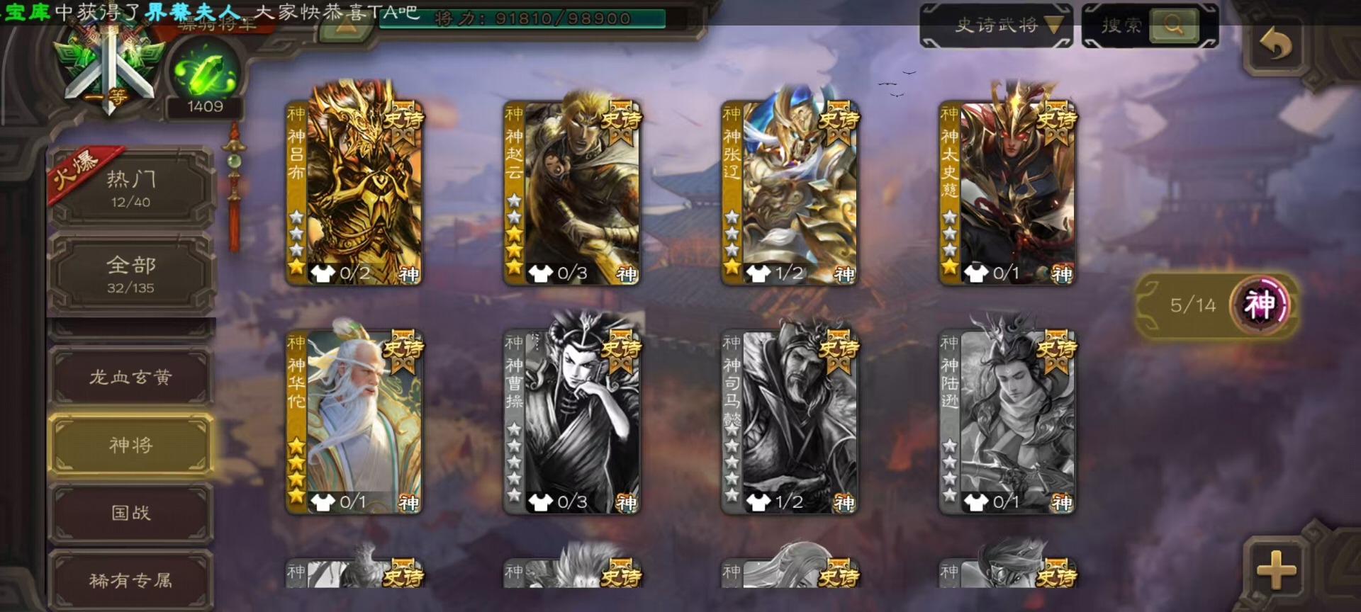 [14649581]vip10 骠骑将军 324武将 24动态皮肤 32史诗武将 【神将】:神吕布神赵云神张辽神太史慈神华佗 【魏国武将】:星周不疑马钧界于禁嵇康程昱曹纯戏志才谋夏侯惇 【蜀国武将】:沙摩柯谯周花鬘关索董允 【吴国武将】:吴景界徐盛 【群国武将】:星董卓谋貂蝉左慈星黄忠兀突骨司马徽麹义南华老仙沮授界李儒杜预许攸