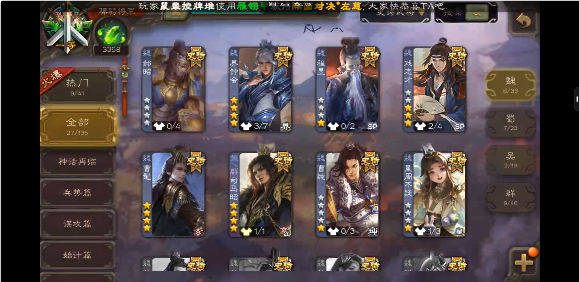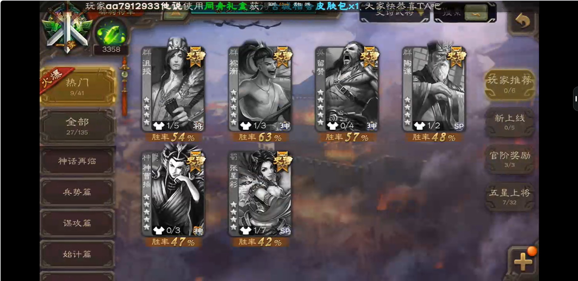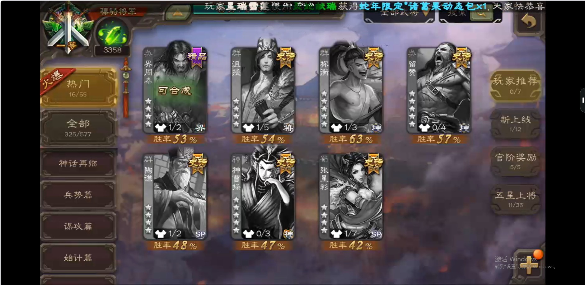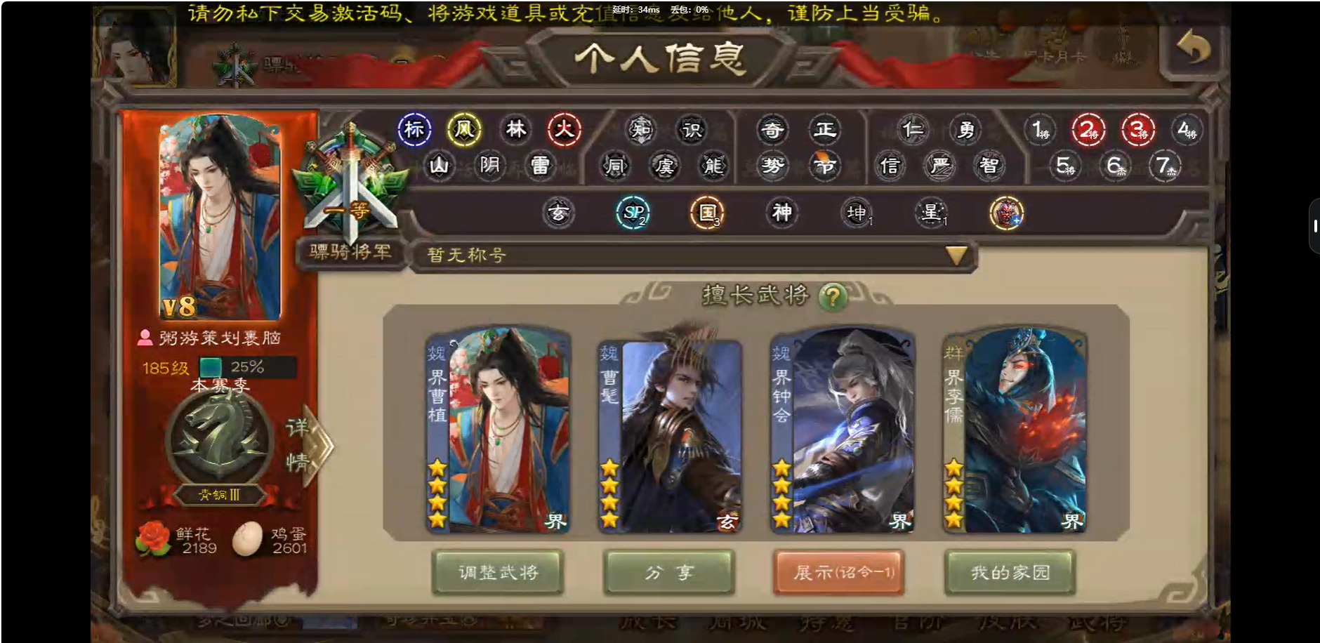 [14649692]vip8 骠骑将军 325武将 20动态皮肤 27史诗武将 【神将】:神赵云神刘备 【魏国武将】:曹髦界钟会界曹植 【蜀国武将】:谋黄忠谋赵云谋马超沙摩柯界黄忠花鬘董允 【吴国武将】:骆统界朱然 【群国武将】:星董卓群-司马昭左慈兀突骨苏飞麹义界左慈界李儒谋张角
