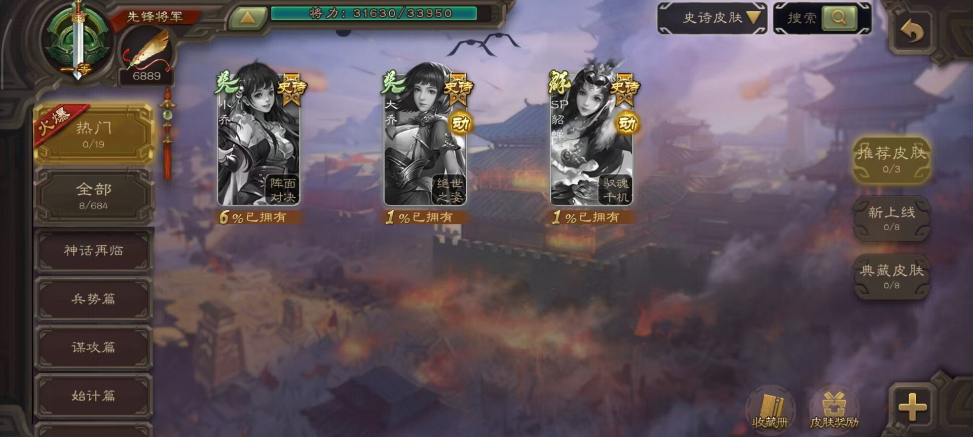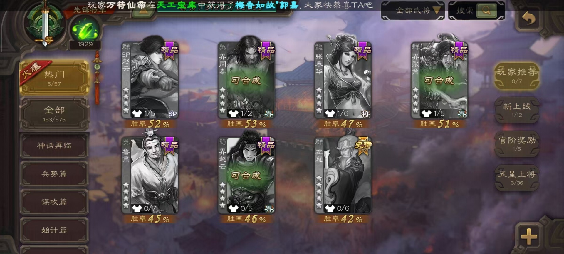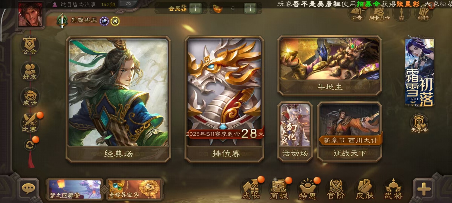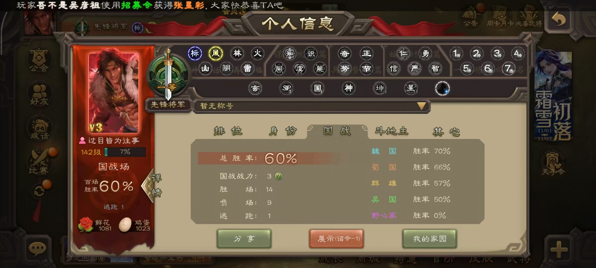 [14649851]vip3 先锋将军 163武将 5动态皮肤 6史诗武将 【神将】:神吕布神孙策 【蜀国武将】:沙摩柯花鬘 【吴国武将】:界徐盛 【群国武将】:麹义