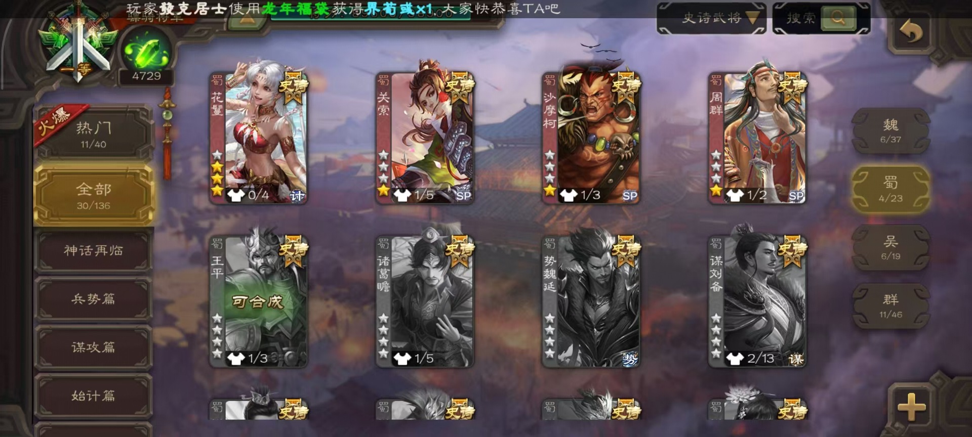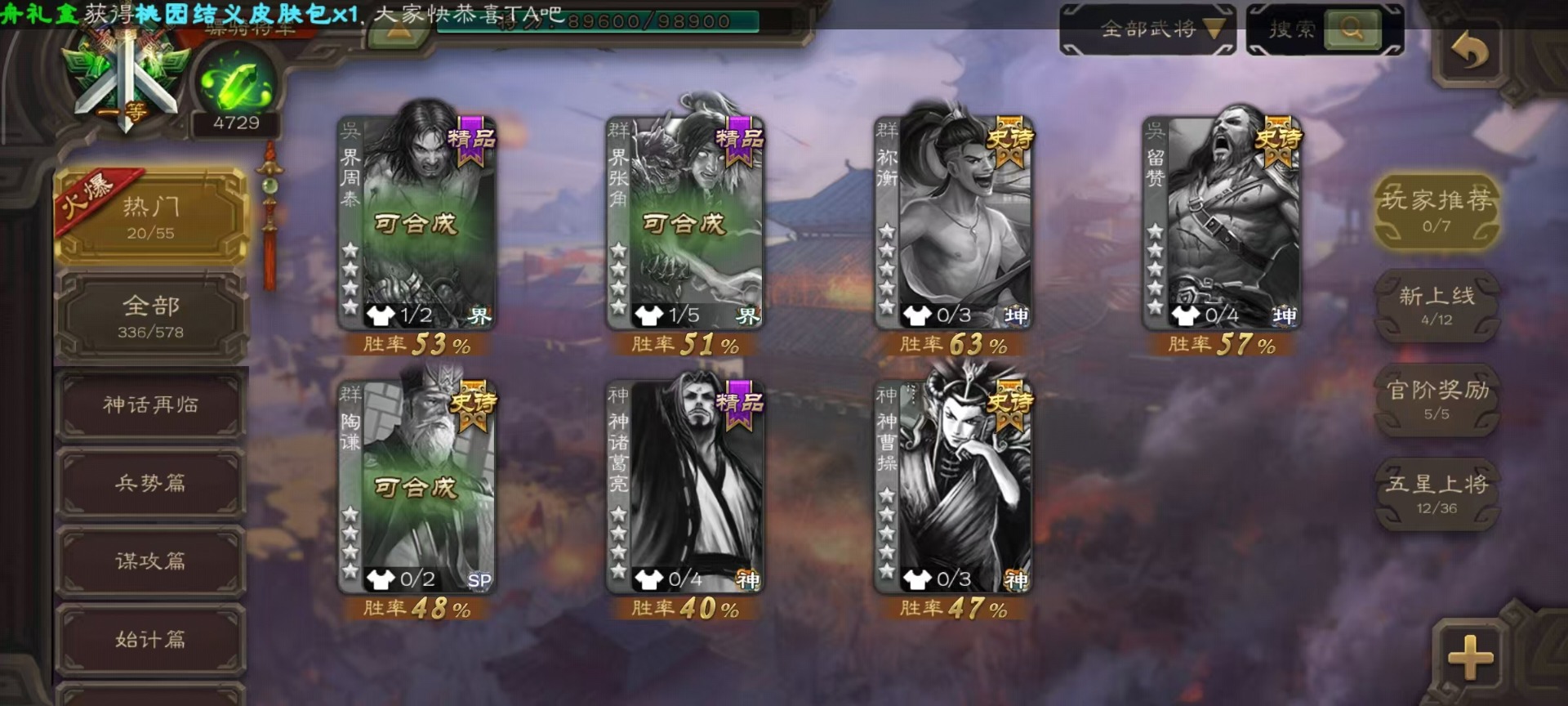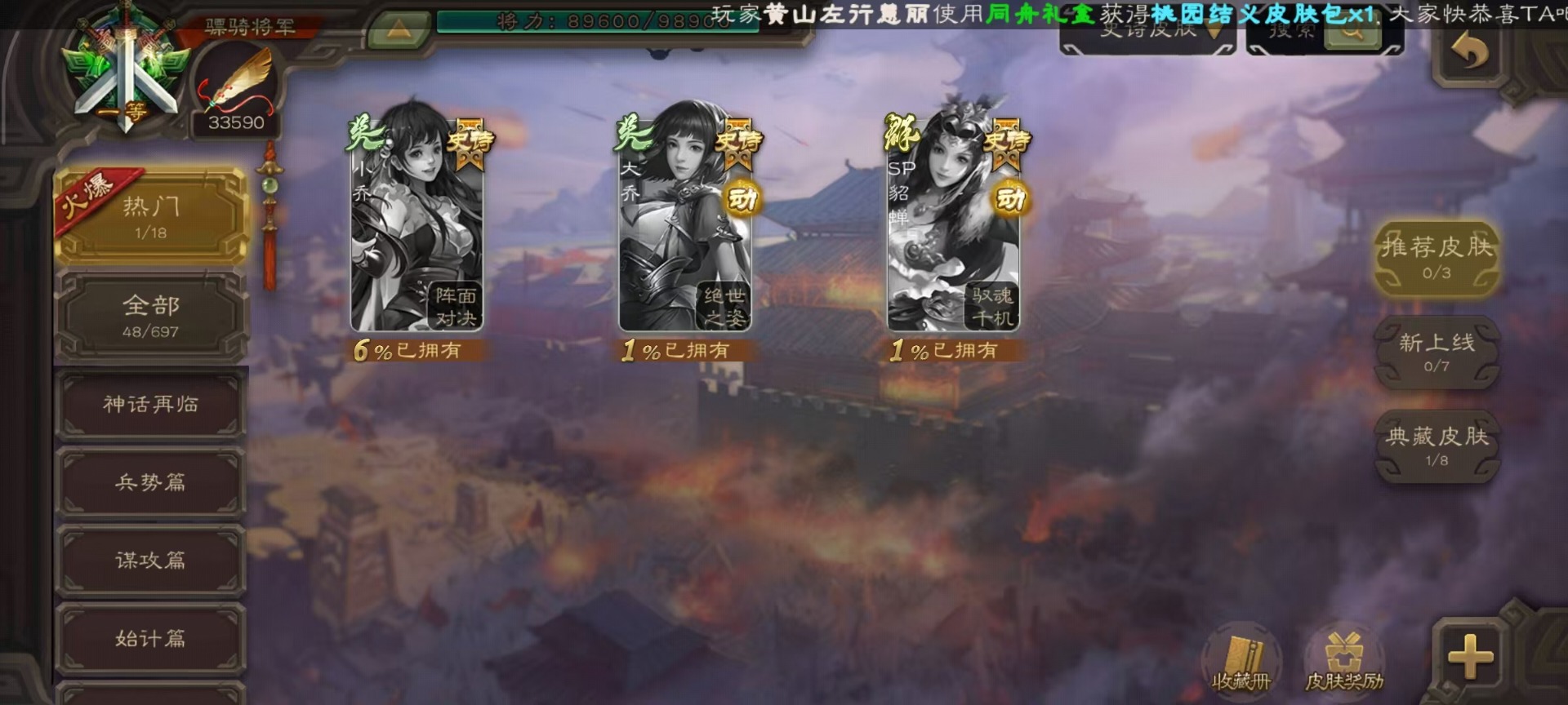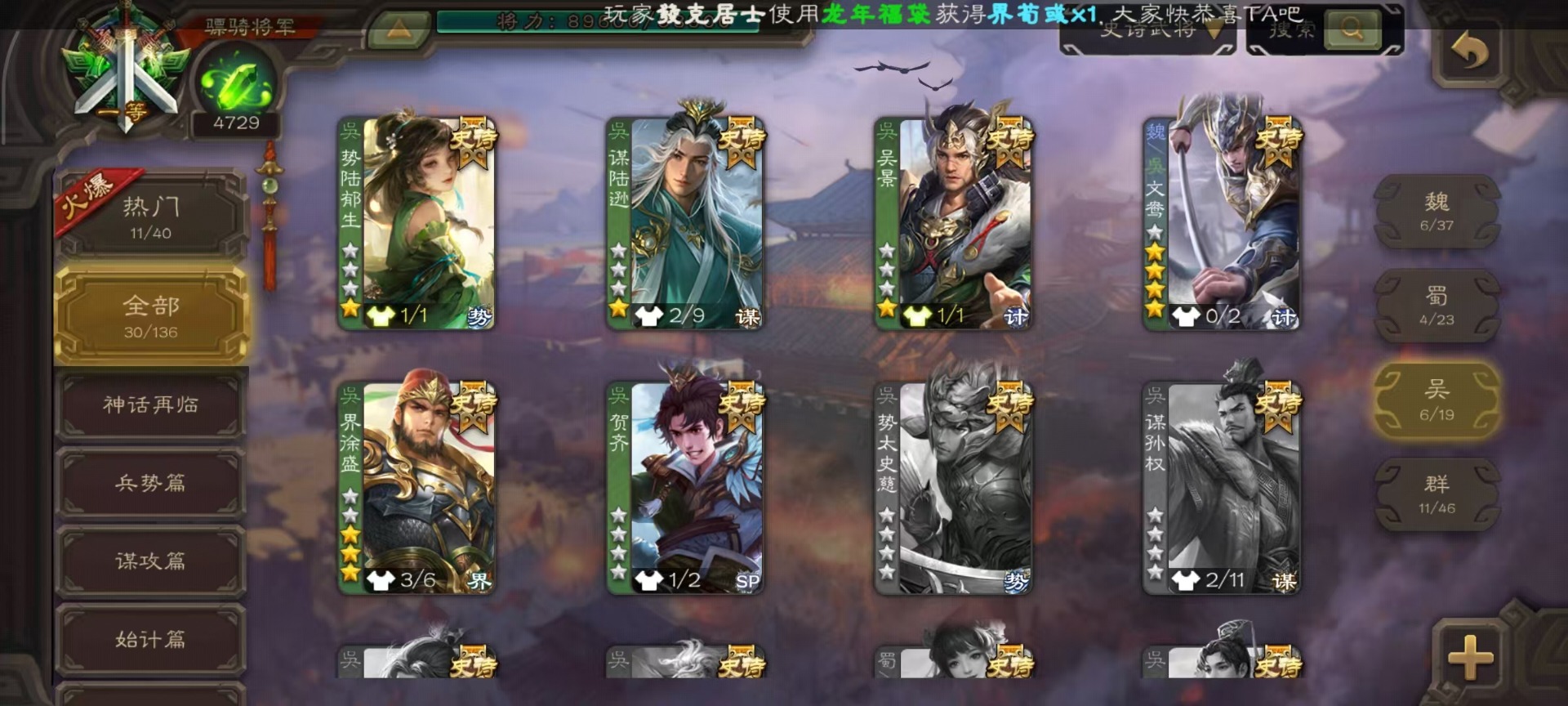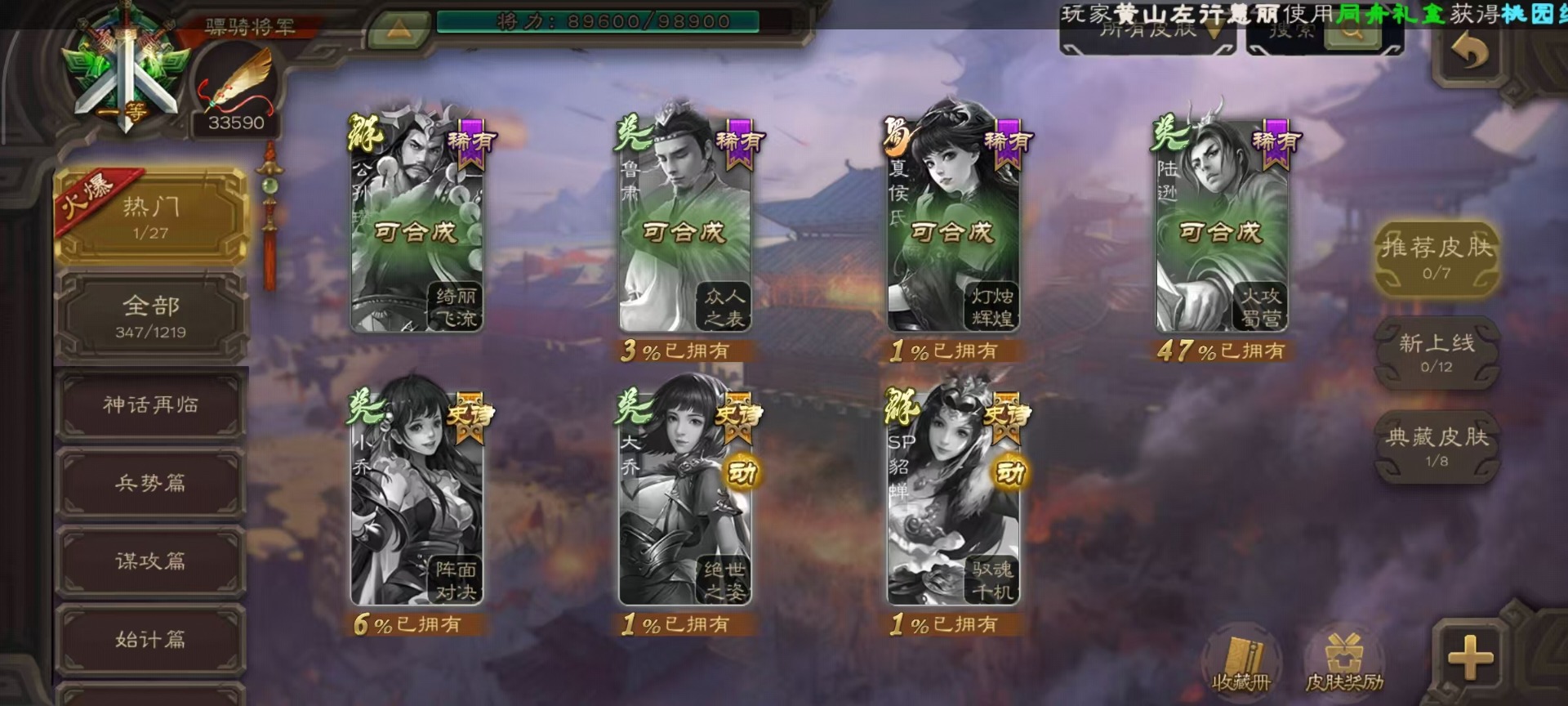 [14650620]vip9 骠骑将军 336武将 19动态皮肤 30史诗武将 5宝珠 【神将】:神吕布神司马懿神张辽神太史慈 【魏国武将】:文鸯界钟会嵇康程昱曹纯戏志才 【蜀国武将】:周群沙摩柯花鬘关索 【吴国武将】:势陆郁生谋陆逊文鸯吴景界徐盛贺齐 【群国武将】:左慈兀突骨麹义刘焉沮授界李儒公孙康谋张角