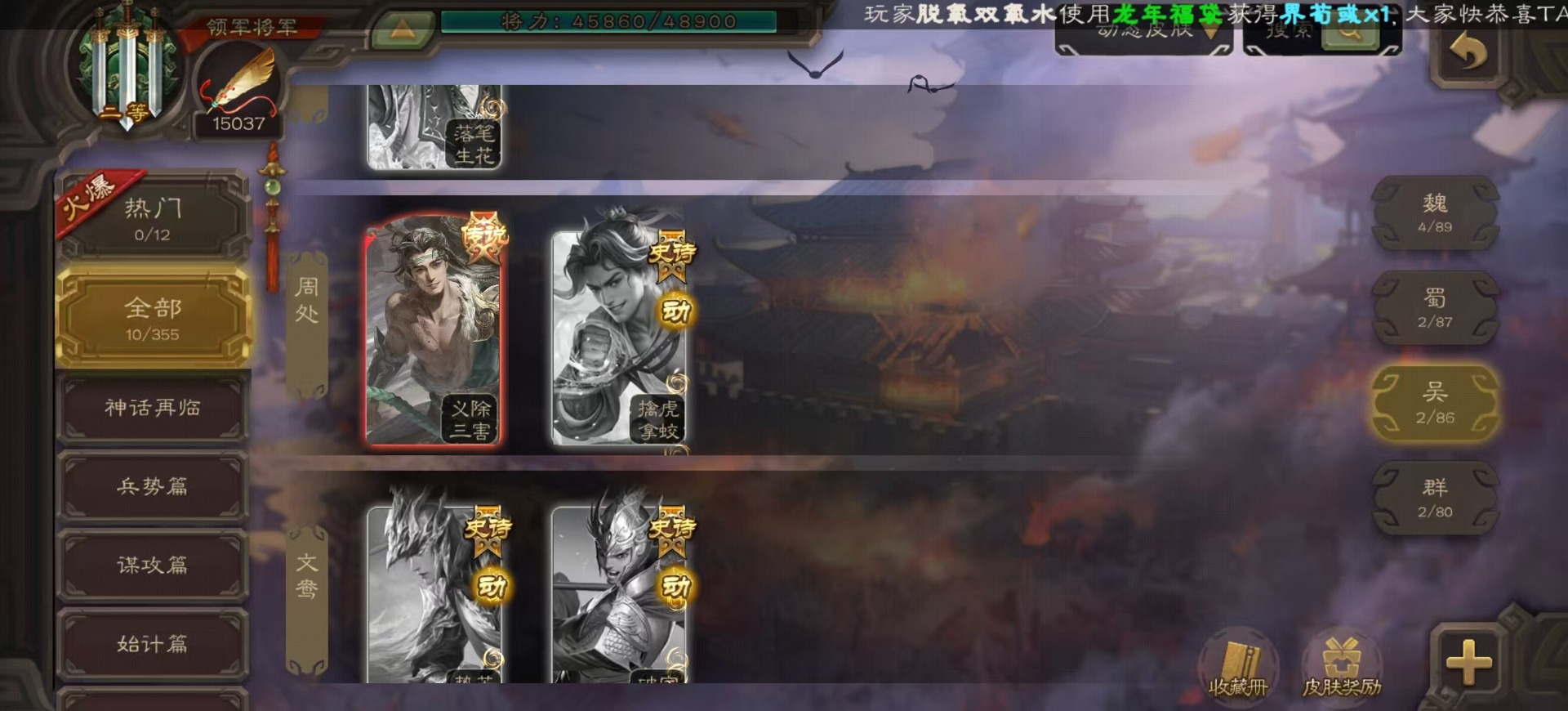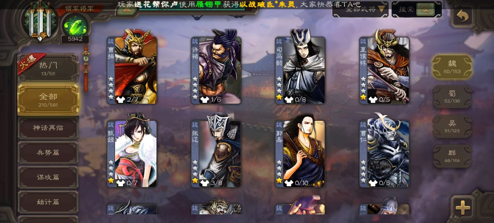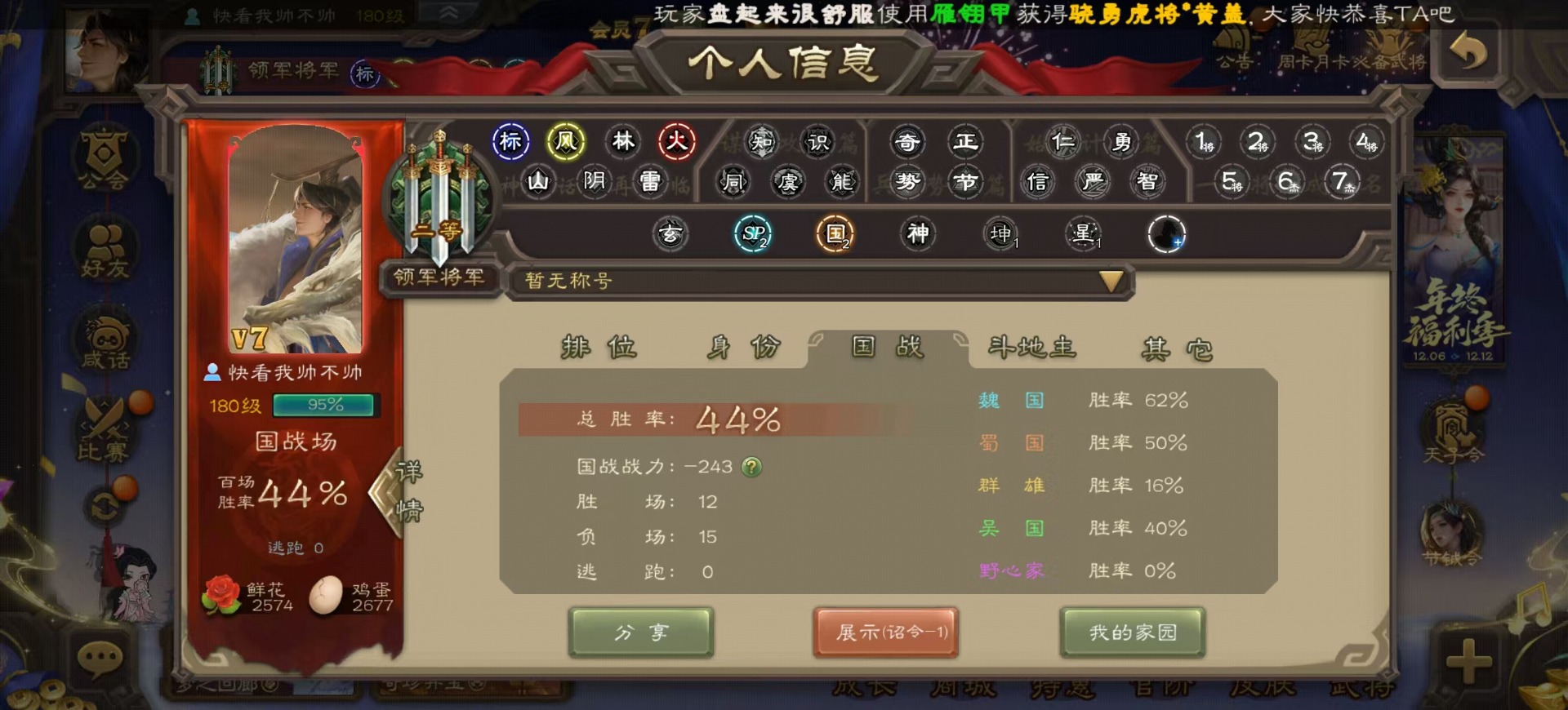 [14659199]vip7 领军将军 1武将 10动态皮肤 8史诗武将 【魏国武将】:星周不疑程昱曹纯 【蜀国武将】:沙摩柯 【吴国武将】:界徐盛 【群国武将】:左慈星黄忠杜预