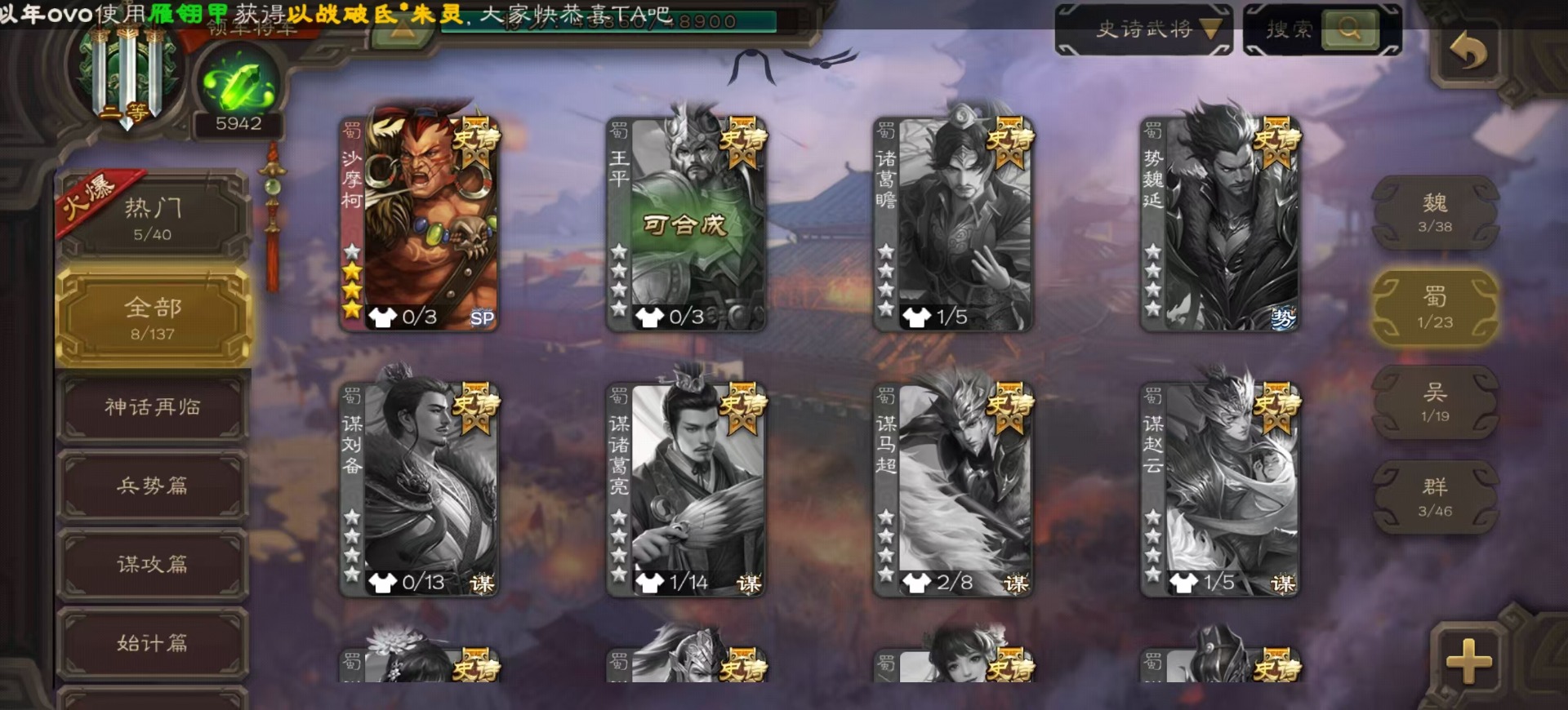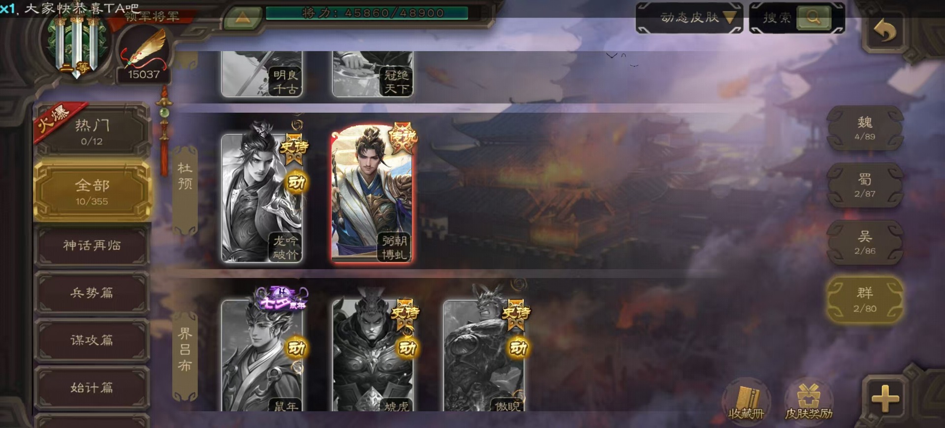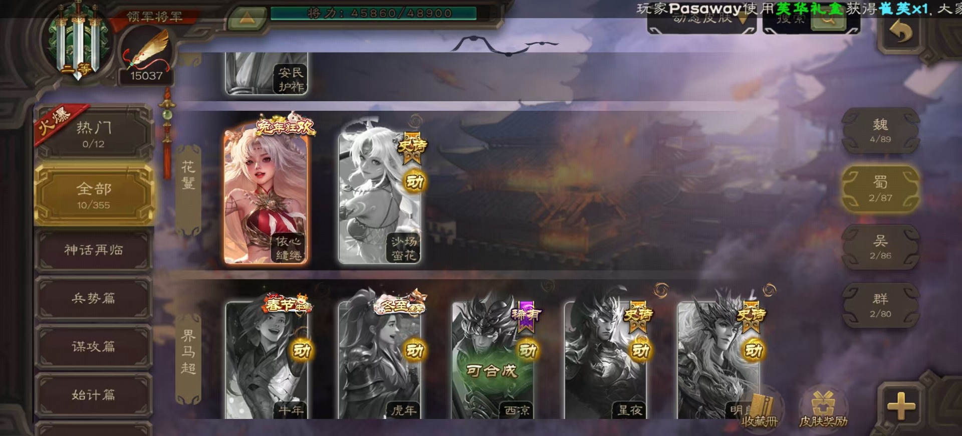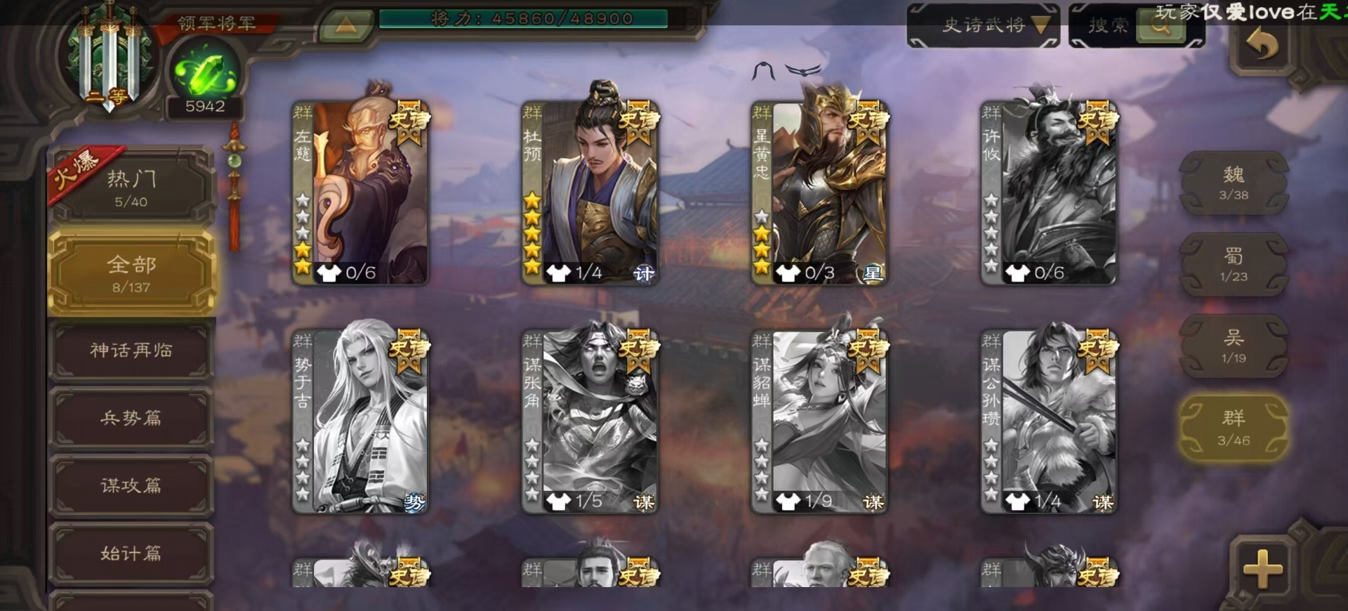 [14659199]vip7 领军将军 1武将 10动态皮肤 8史诗武将 【魏国武将】:星周不疑程昱曹纯 【蜀国武将】:沙摩柯 【吴国武将】:界徐盛 【群国武将】:左慈星黄忠杜预