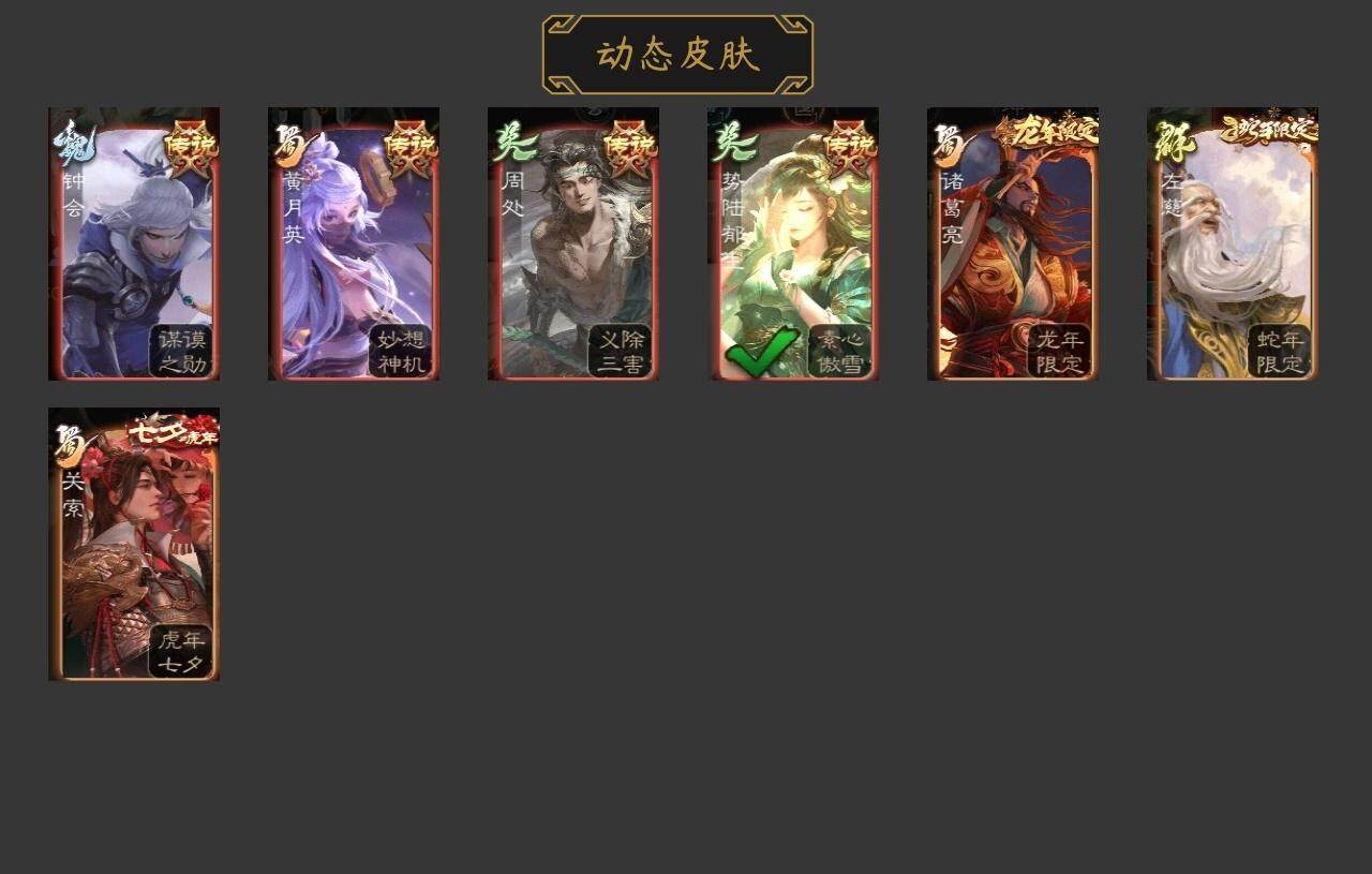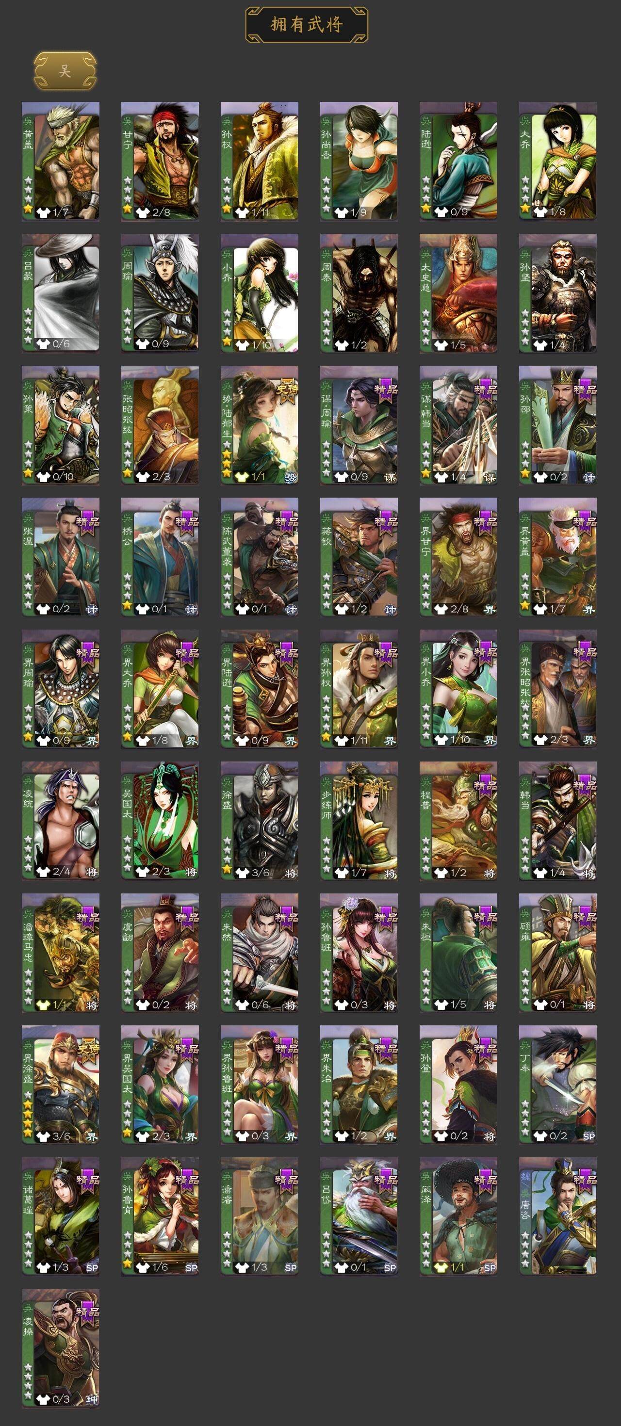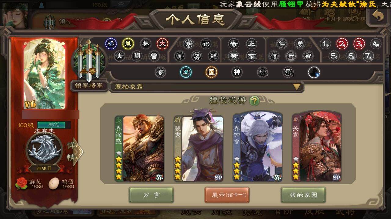 [14693419]【602】官阶:领军将军;vip等级:vip6;史诗武将数量:10;动态皮肤数量:7;武将总数:225;史诗宝珠数量:0;将魂数量:4521;神将:0;魏国史诗武将:4;蜀国史诗武将:4;吴国史诗武将:2;群史诗武将:2 界钟会曹纯关索沙摩柯谯周花鬘界徐盛势陆郁生裴秀张绣钟会-谋谟之勋动态界钟会-谋谟之勋动态诸葛亮-龙年限定动态关索-虎年七夕动态周处-义除三害动态左慈-蛇年限定动态