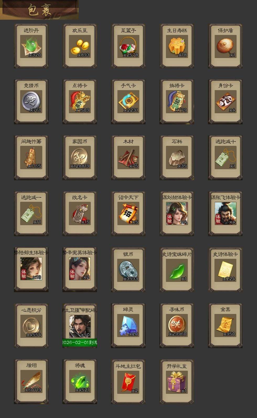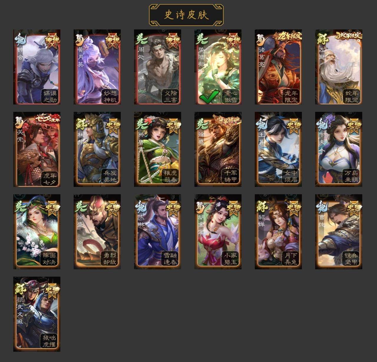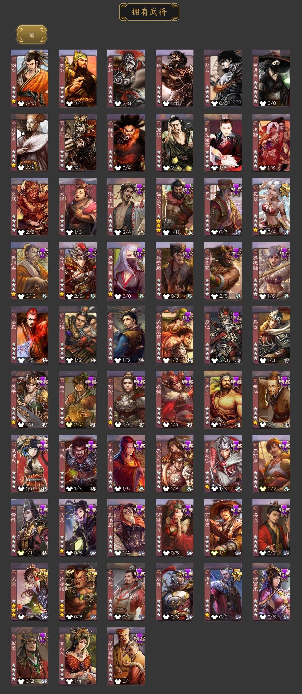 [14693419]【602】官阶:领军将军;vip等级:vip6;史诗武将数量:10;动态皮肤数量:7;武将总数:225;史诗宝珠数量:0;将魂数量:4521;神将:0;魏国史诗武将:4;蜀国史诗武将:4;吴国史诗武将:2;群史诗武将:2 界钟会曹纯关索沙摩柯谯周花鬘界徐盛势陆郁生裴秀张绣钟会-谋谟之勋动态界钟会-谋谟之勋动态诸葛亮-龙年限定动态关索-虎年七夕动态周处-义除三害动态左慈-蛇年限定动态