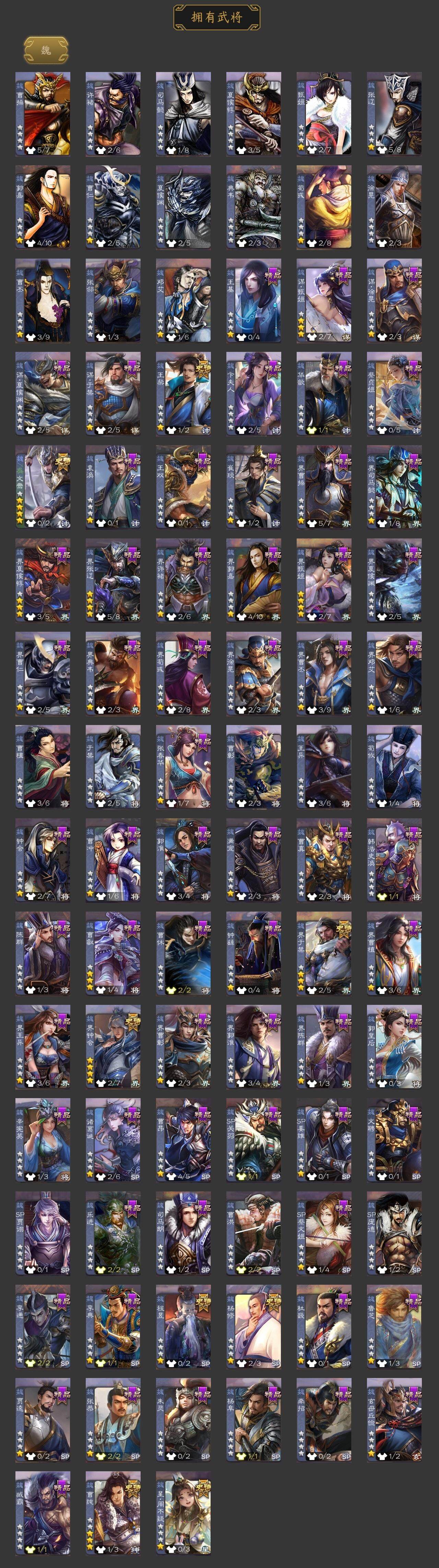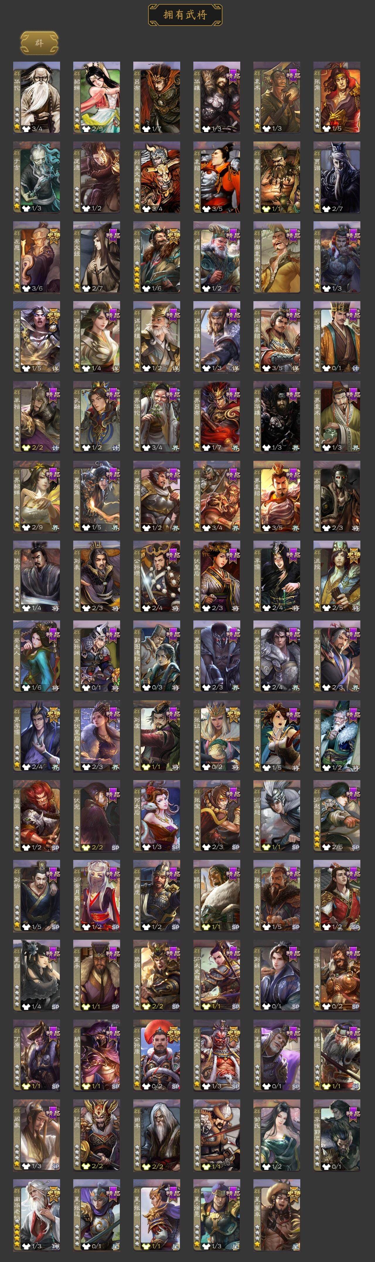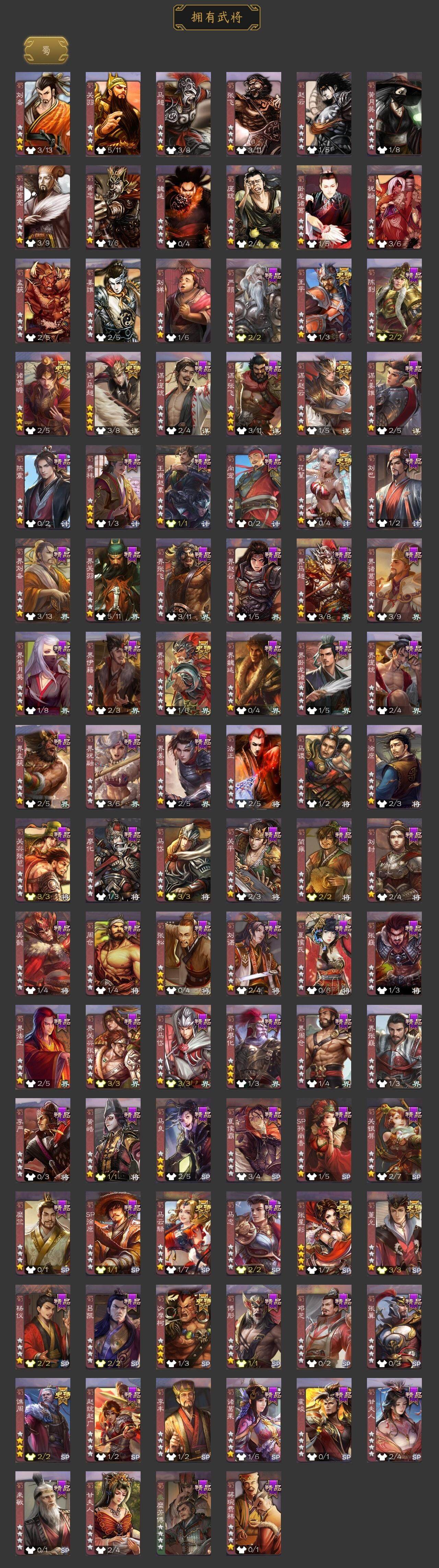 [14693508]【596】官阶:大将军;vip等级:vip10;史诗武将数量:39;动态皮肤数量:31;武将总数:370;史诗宝珠数量:67;将魂数量:13084;神将:7;魏国史诗武将:20;蜀国史诗武将:11;吴国史诗武将:7;群史诗武将:12 神吕布神赵云神陆逊神关羽神吕蒙神周瑜神诸葛亮星周不疑王粲杨修文鸯界钟会界于禁曹纯马云騄谋赵云谋马超诸葛瞻张星彩王平沙摩柯谯周界黄忠花鬘董允孙皓孙寒华骆统留赞界朱然界徐盛势陆郁生左慈张让南华老仙沮授界李儒公孙康谋张角张绣李傕阎象许攸星董卓神吕蒙-心生万象神郭嘉-半醉山河神赵云-战龙在野动态张昌蒲-龙年端午(动态)曹丕-气荡山河(动态)甄姬-明珠耀躯(动态)sp蔡文姬-兔年冬日动态张辽-登峰陷阵动态界张辽-登峰陷阵动态钟会-谋谟之勋动态界钟会-谋谟之勋动态曹婴-兔年春节动态曹纯-长坂败备动态刘备-龙御天下动态马超-虎年冬至动态诸葛亮-明良千古动态界诸葛亮-明良千古动态张星彩-猪年中秋动态鲍三娘-柳娇桃艳动态周处-义除三害动态孙策-虎踞江东动态孙寒华-威灵尽显动态徐盛-破军杀将动态孙鲁班-牛年端午动态界孙鲁班-牛年端午动态孙鲁育-牛年端午动态刘赞-灵魂歌王动态孙寒华-蛇年限定动态周瑜-蛇年端午动态袁绍-声震寰宇动态南华老仙-冠绝天下动态李儒-鸠杀少帝动态界李儒-鸠杀少帝动态sp赵云-威名尽显动态左慈-蛇年限定动态