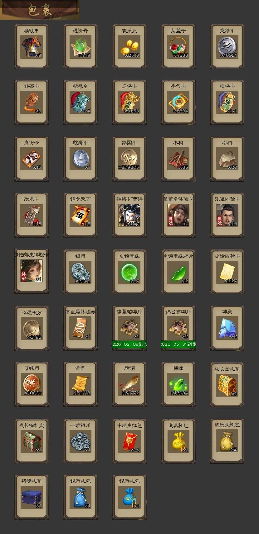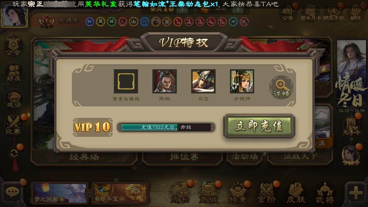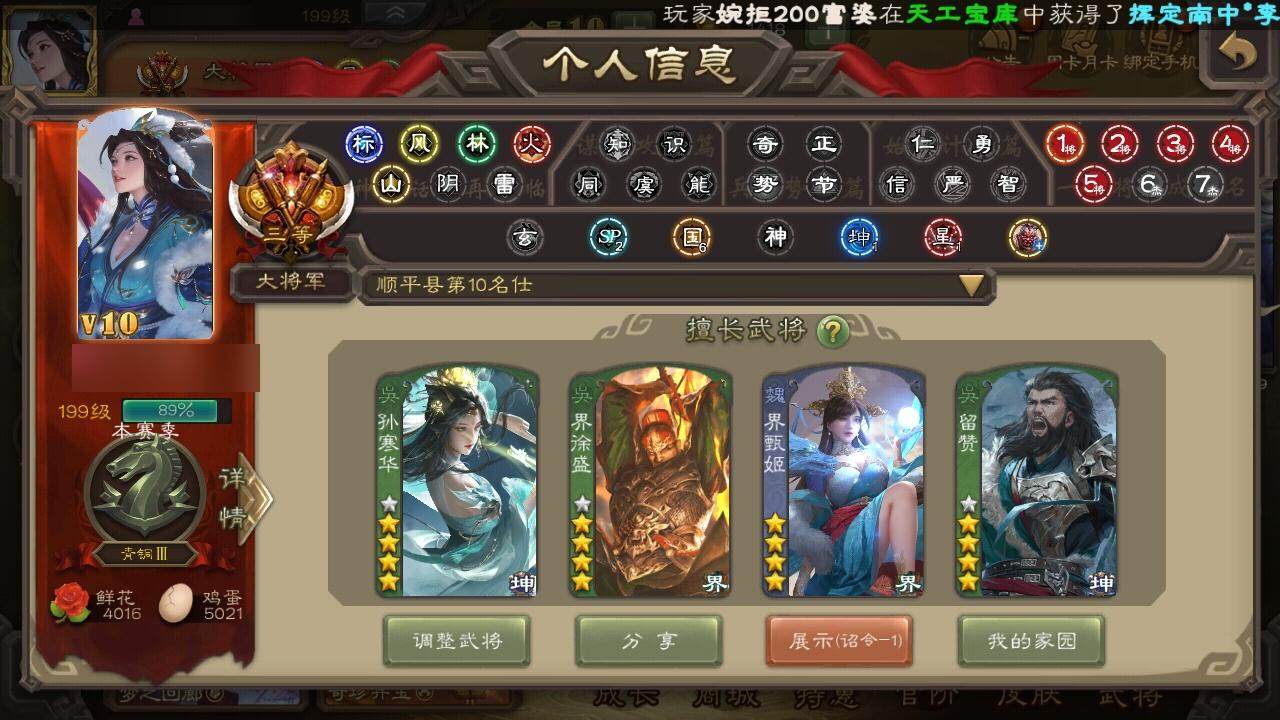 [14693508]【596】官阶:大将军;vip等级:vip10;史诗武将数量:39;动态皮肤数量:31;武将总数:370;史诗宝珠数量:67;将魂数量:13084;神将:7;魏国史诗武将:20;蜀国史诗武将:11;吴国史诗武将:7;群史诗武将:12 神吕布神赵云神陆逊神关羽神吕蒙神周瑜神诸葛亮星周不疑王粲杨修文鸯界钟会界于禁曹纯马云騄谋赵云谋马超诸葛瞻张星彩王平沙摩柯谯周界黄忠花鬘董允孙皓孙寒华骆统留赞界朱然界徐盛势陆郁生左慈张让南华老仙沮授界李儒公孙康谋张角张绣李傕阎象许攸星董卓神吕蒙-心生万象神郭嘉-半醉山河神赵云-战龙在野动态张昌蒲-龙年端午(动态)曹丕-气荡山河(动态)甄姬-明珠耀躯(动态)sp蔡文姬-兔年冬日动态张辽-登峰陷阵动态界张辽-登峰陷阵动态钟会-谋谟之勋动态界钟会-谋谟之勋动态曹婴-兔年春节动态曹纯-长坂败备动态刘备-龙御天下动态马超-虎年冬至动态诸葛亮-明良千古动态界诸葛亮-明良千古动态张星彩-猪年中秋动态鲍三娘-柳娇桃艳动态周处-义除三害动态孙策-虎踞江东动态孙寒华-威灵尽显动态徐盛-破军杀将动态孙鲁班-牛年端午动态界孙鲁班-牛年端午动态孙鲁育-牛年端午动态刘赞-灵魂歌王动态孙寒华-蛇年限定动态周瑜-蛇年端午动态袁绍-声震寰宇动态南华老仙-冠绝天下动态李儒-鸠杀少帝动态界李儒-鸠杀少帝动态sp赵云-威名尽显动态左慈-蛇年限定动态