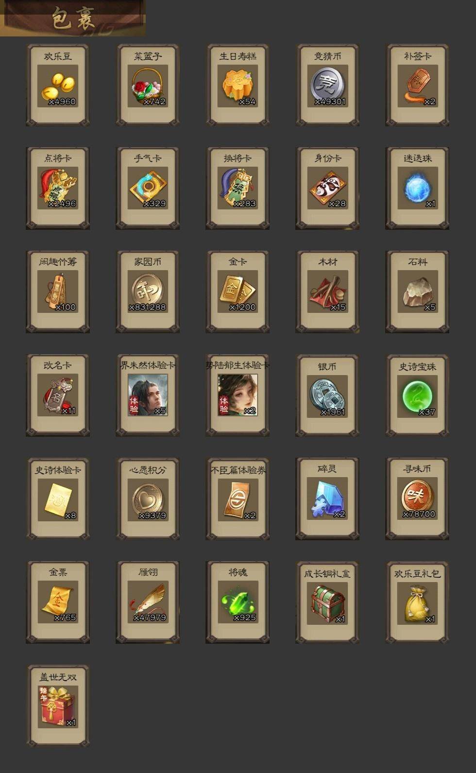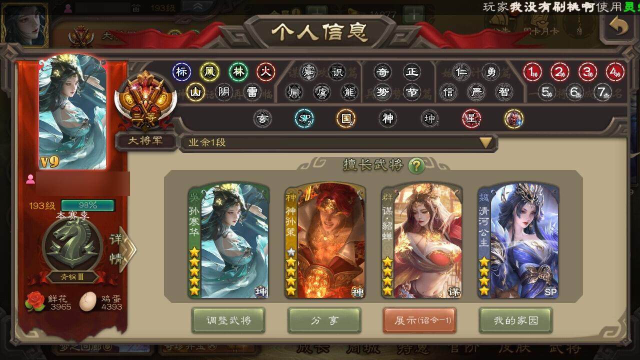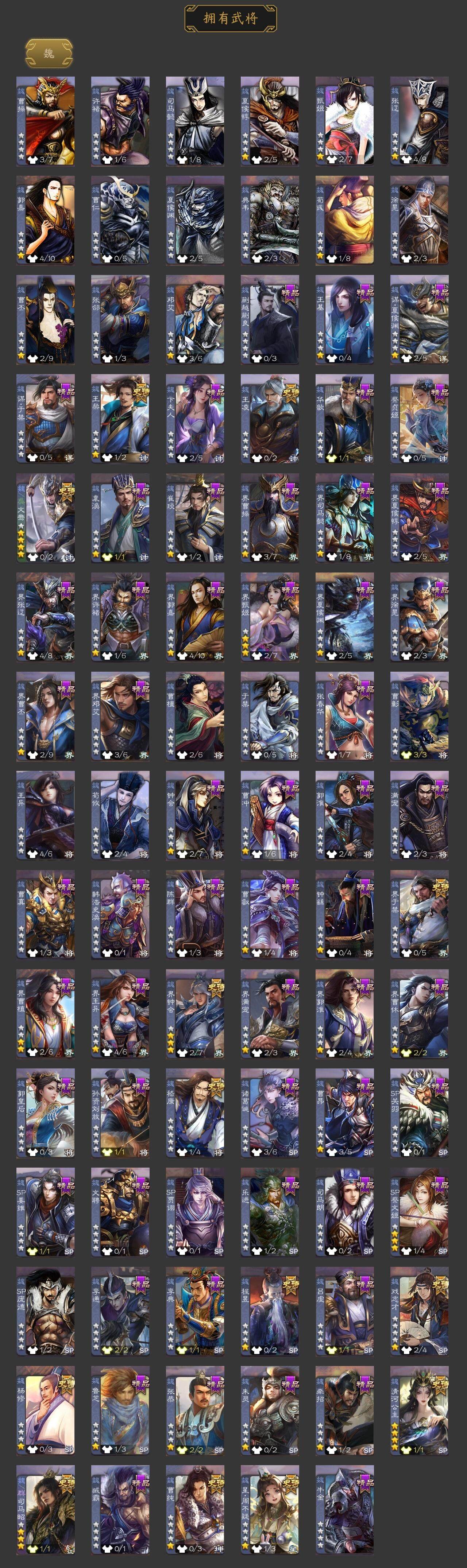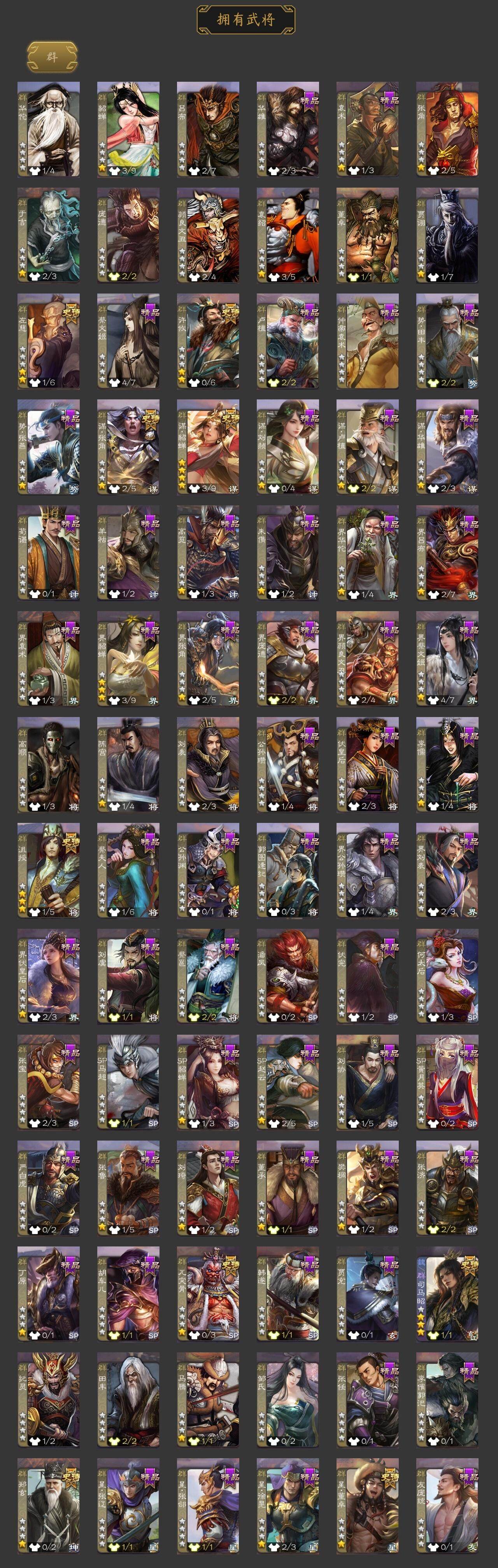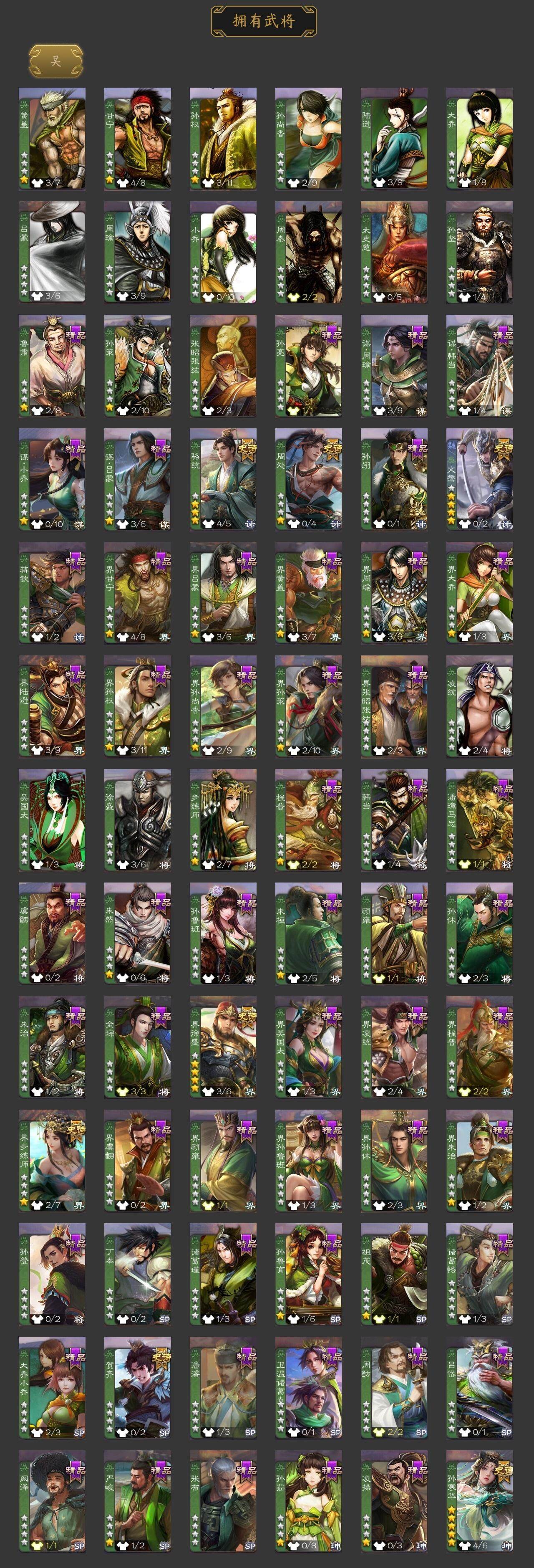 [14694769]【559】官阶:大将军;vip等级:vip9;史诗武将数量:36;动态皮肤数量:30;武将总数:330;史诗宝珠数量:37;将魂数量:925;神将:5;魏国史诗武将:20;蜀国史诗武将:7;吴国史诗武将:6;群史诗武将:7 神吕布神孙策神关羽神吕蒙神周瑜星周不疑王粲杨修文鸯王凌魏-司马昭界钟会界于禁嵇康曹纯戏志才清河公主关索马云騄谋赵云诸葛瞻沙摩柯界黄忠花鬘周处孙寒华骆统界徐盛界步练师贺齐谋貂蝉左慈郑玄沮授谋张角许攸星董卓神孙策-霸王再世动态神吕蒙-心生万象郭嘉-以身证道(动态)星周不疑-才广志宏动态钟会-龙年端午(动态)甄姬-明珠耀躯(动态)sp蔡文姬-兔年冬日动态王异-轻燕掠影动态界王异-轻燕掠影动态司马昭-昭威淮南(动态)星徐晃-斧引霹雳动态清河公主-魅影萦心动态刘备-龙御天下动态费祎-安民护祚(动态)马良-荡然由心动态卧龙诸葛-火烧博望动态吕蒙-剑起惊澜动态孙权-永开吴祚动态孙策-虎踞江东动态孙寒华-莲华熠熠动态孙寒华-威灵尽显动态徐盛-破军杀将动态孙寒华-蛇年限定动态灵雎-霜刃绚练动态貂蝉-舞惑群心动态袁绍-声震寰宇动态麹义-扬刀立威动态张角-黄天当立动态皇甫嵩-奋钺振旅动态