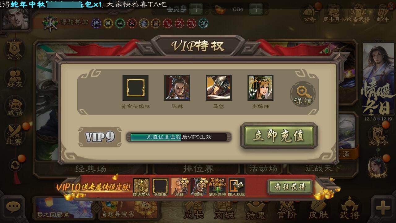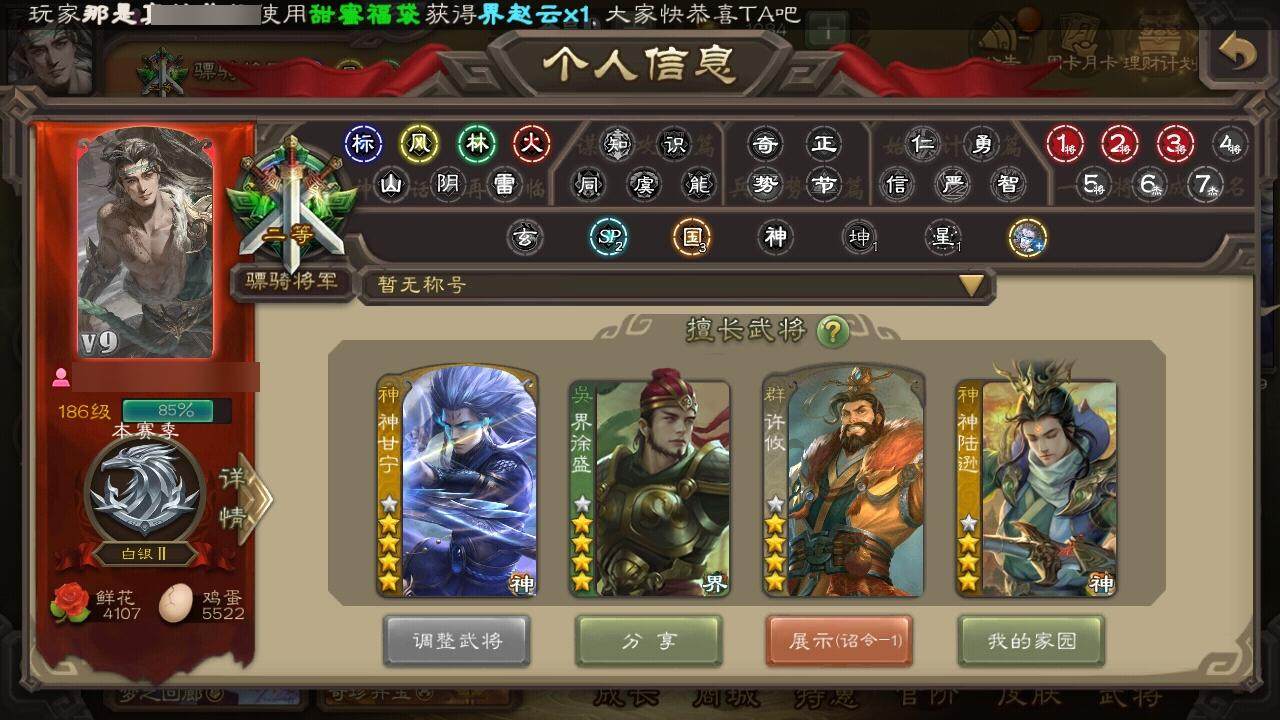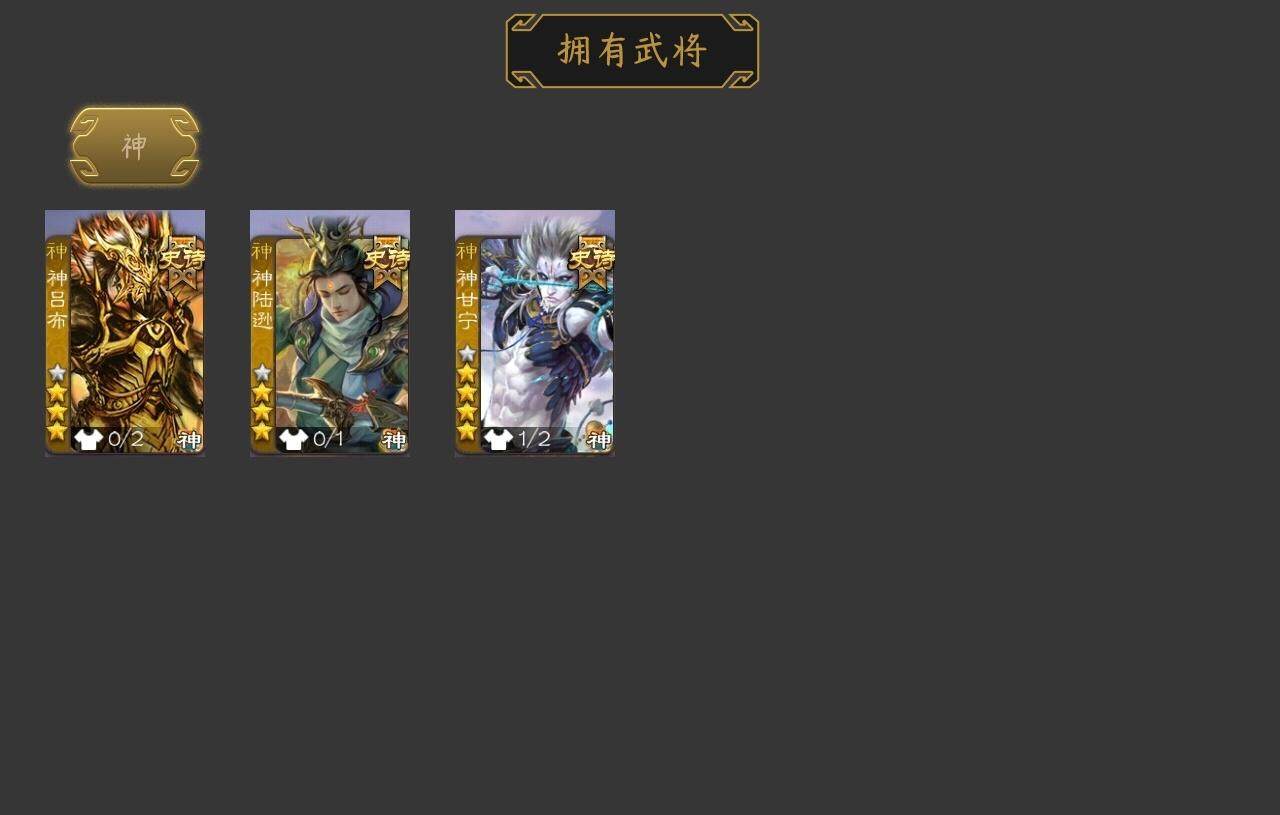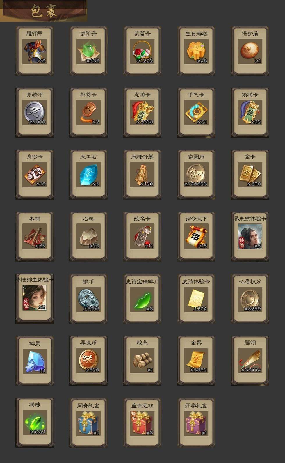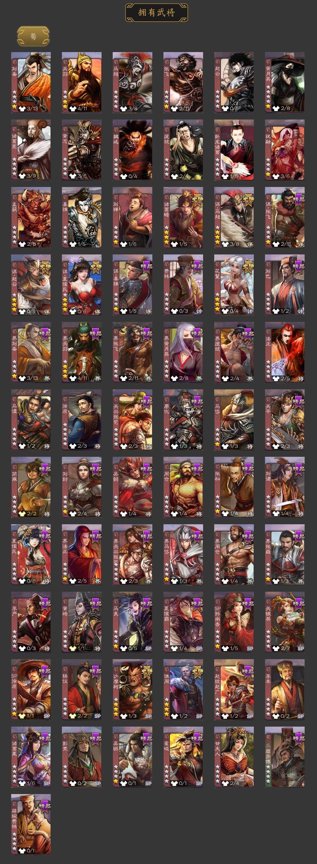 [14694806]【561】官阶:骠骑将军;vip等级:vip9;史诗武将数量:24;动态皮肤数量:22;武将总数:290;史诗宝珠数量:0;将魂数量:4321;神将:3;魏国史诗武将:12;蜀国史诗武将:7;吴国史诗武将:1;群史诗武将:10 神吕布神陆逊神甘宁界钟会郝昭曹纯谋夏侯氏谋赵云谋马超诸葛瞻沙摩柯谯周花鬘界徐盛郑玄星黄忠苏飞庞德公界左慈界李儒公孙康鲍信张绣许攸神甘宁-万人辟易动态张昌蒲-龙年端午(动态)曹丕-气荡山河(动态)张春华-雪中舞刃动态钟会-谋谟之勋动态界钟会-谋谟之勋动态曹昂-竭战麟伤动态刘备-龙御天下动态诸葛亮-龙年限定动态关羽-明良千古动态马超-虎年冬至动态诸葛果-虎年中秋动态孙策-兔年中秋动态周处-义除三害动态吕蒙-剑起惊澜动态孙策-虎踞江东动态孙尚香-星流霆击动态界孙尚香-星流霆击动态徐盛-破军杀将动态灵雎-霜刃绚练动态袁绍-声震寰宇动态麹义-扬刀立威动态许攸-盛气凌人动态李儒-鸠杀少帝动态界李儒-鸠杀少帝动态张鲁-虎年冬至动态