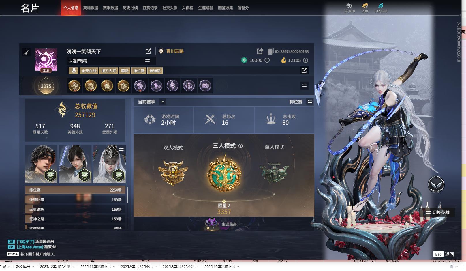 [14497073]yjj969/1.11换绑/等级316/s18三人陨星2/18红298金收藏值257129/初代玄女/墨离/朱雀星衣/戎金狼/熛怒炼火/蝶梦/绝代风华/监兵凶神/夜魅游莹/苍穹之光/毕方/麒麟魄/少阳剑/帝星/比羿/狼主/涯角/狂龙/信手斩龙/春桃笑/御宅罗梦(白丝)龙之影·过江龙/西行劫·三尖两刃刀/幻丝132086/已绑定手游