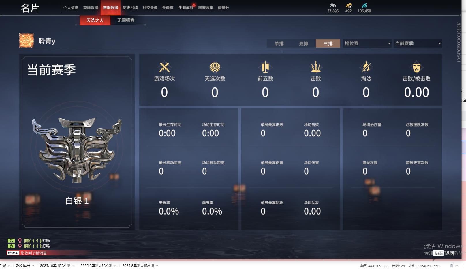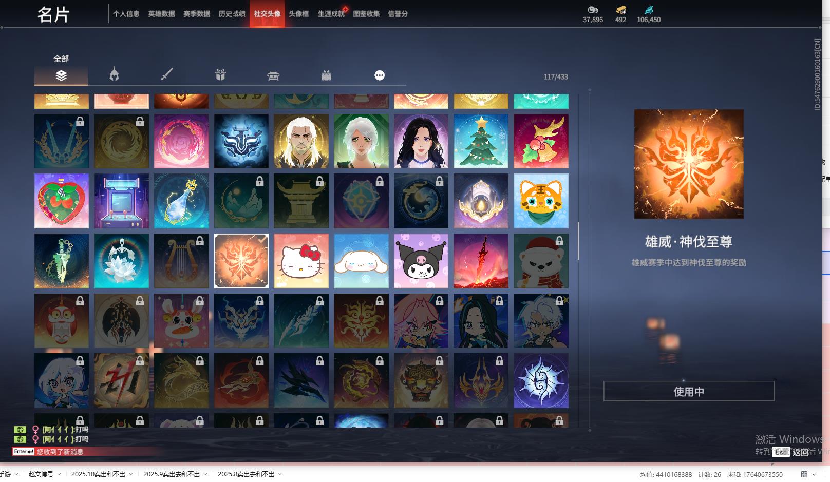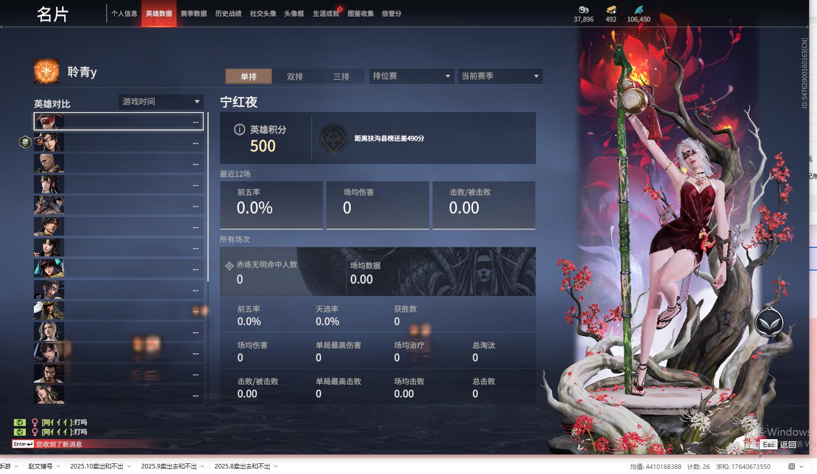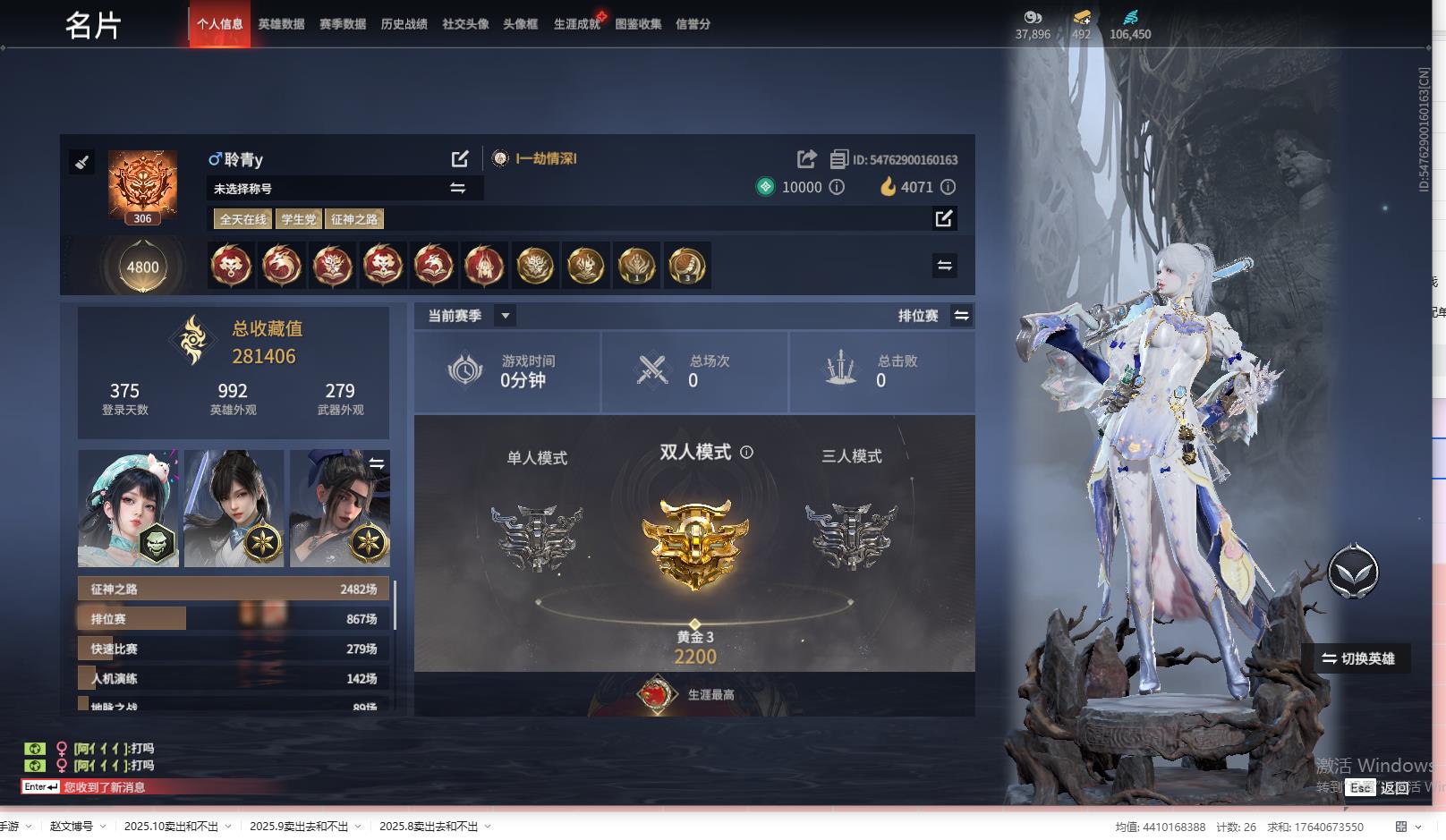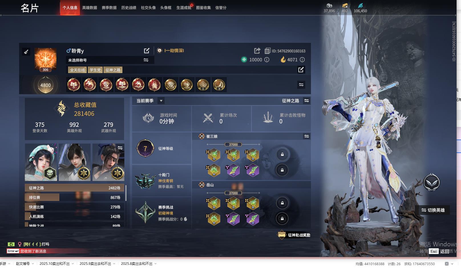 [14240835]yjj508/11.30.换绑/等级306/s18三人白银1/18红331金收藏值281406/墨离/星辉魔纱/化生明王/戎金狼/熛怒炼火/蝶梦/泣珠龙纱/凌霄之羽/天罚/苍穹之光/少阳剑/帝星/比羿/狼主/烈阳/飞将戟/悍虎斩/狂龙/西行劫·三尖两刃刀/夏日派对·午后瑰夏/龙门·石龛造像/夏日派对·高校水着/夏日派对·弄潮逐浪/龙之影·过江龙/幻丝106450/未绑定手游/