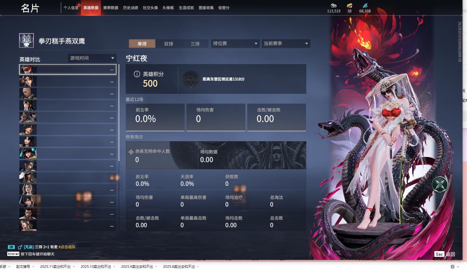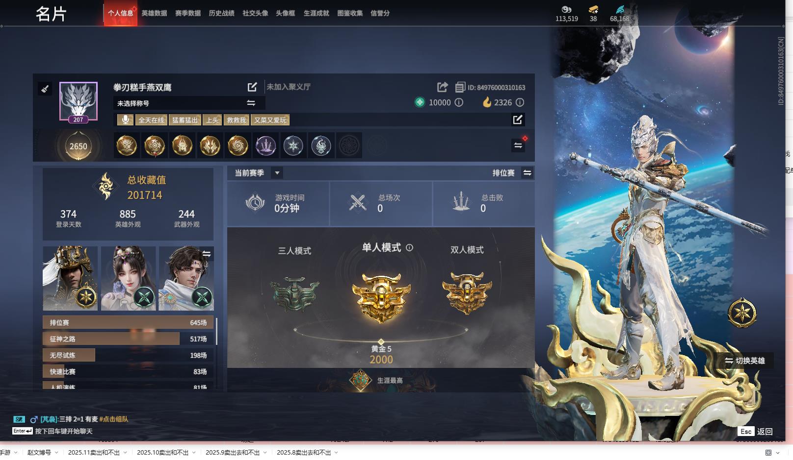 [14241782]yjj556/12.2换绑/等级207/s18三人青铜1/10红309金收藏值201714/赤皓新囍/初代玄女/蝶梦/青龙将星//灵狐幻刃/狼主/悍虎斩//狂龙/天罚/苍穹之光/龙之影·生死局/珥冰/龙之影·过江龙/应龙号//千秋匠心凶虎//夏日派对·半夏晚风/镇冥司/幻丝68168/已绑定手游