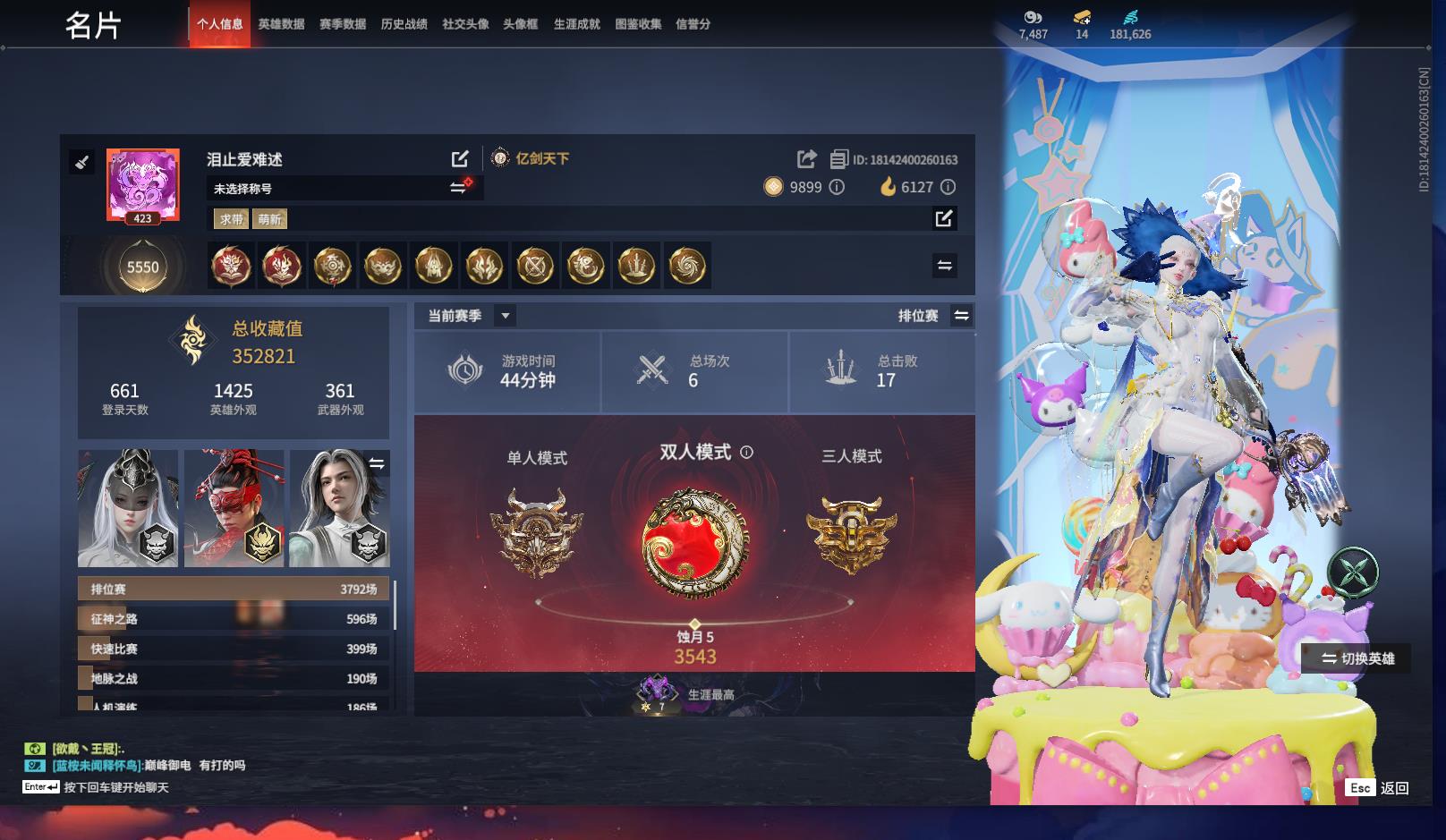 [14242172]yjj568/12.3换绑/等级423/s18三人黄金3/22红530金收藏值352821/赤皓新囍/初代玄女/星辉魔纱/朱雀星衣/化生明王//戎金狼//熛怒炼火/蝶梦//青龙将星//凌霄之羽/绝代风华/流金晓锦//苍穹之光/毕方/少阳剑/帝星//龙雀/狼主/飞将戟//灵犀/狂龙/惊百里/龙之影·生死局//龙之影·精武魂/龙之道·至纯//龙之影·过江龙/幻丝181626/已绑定手游