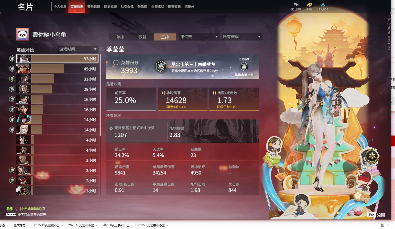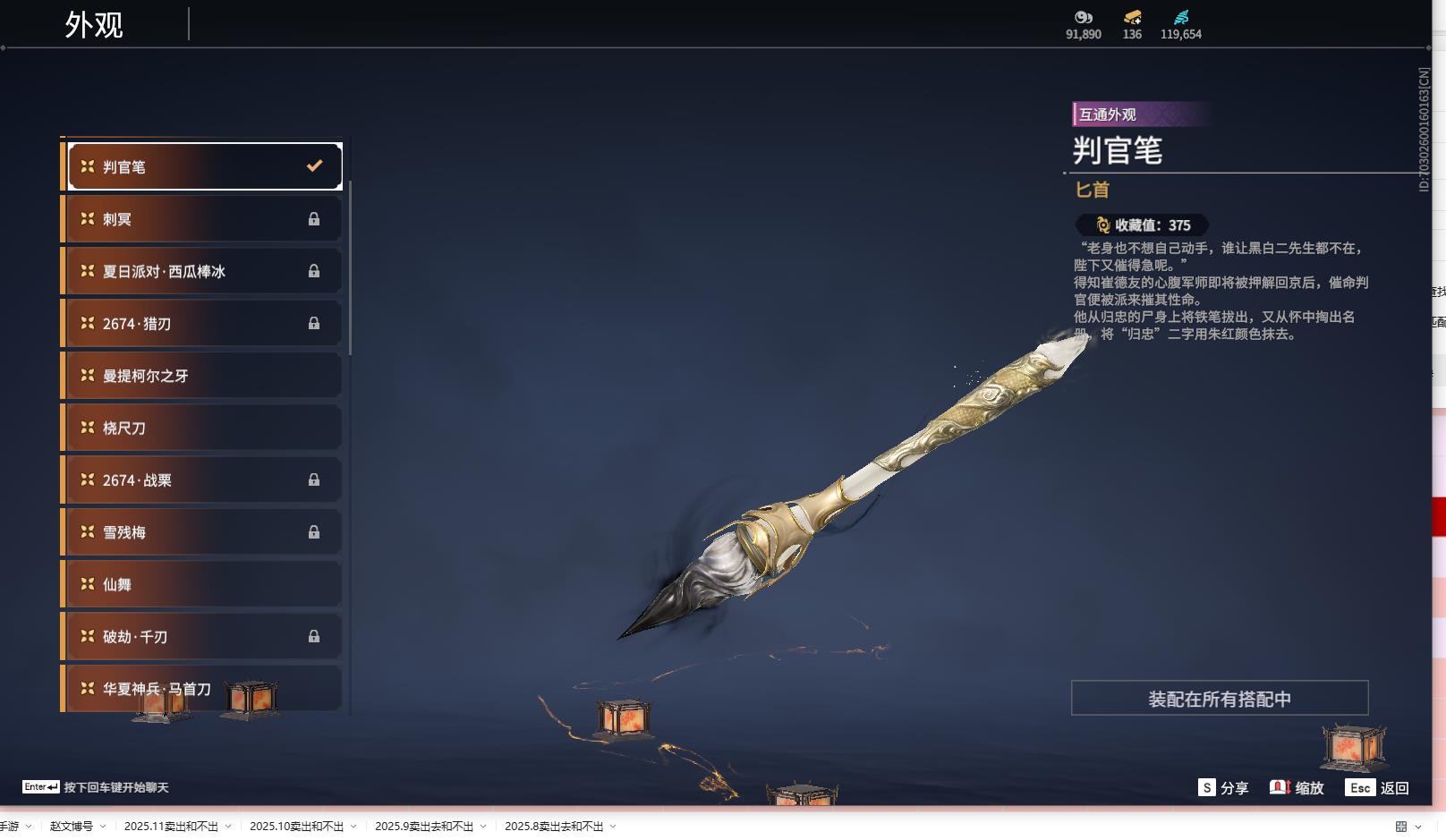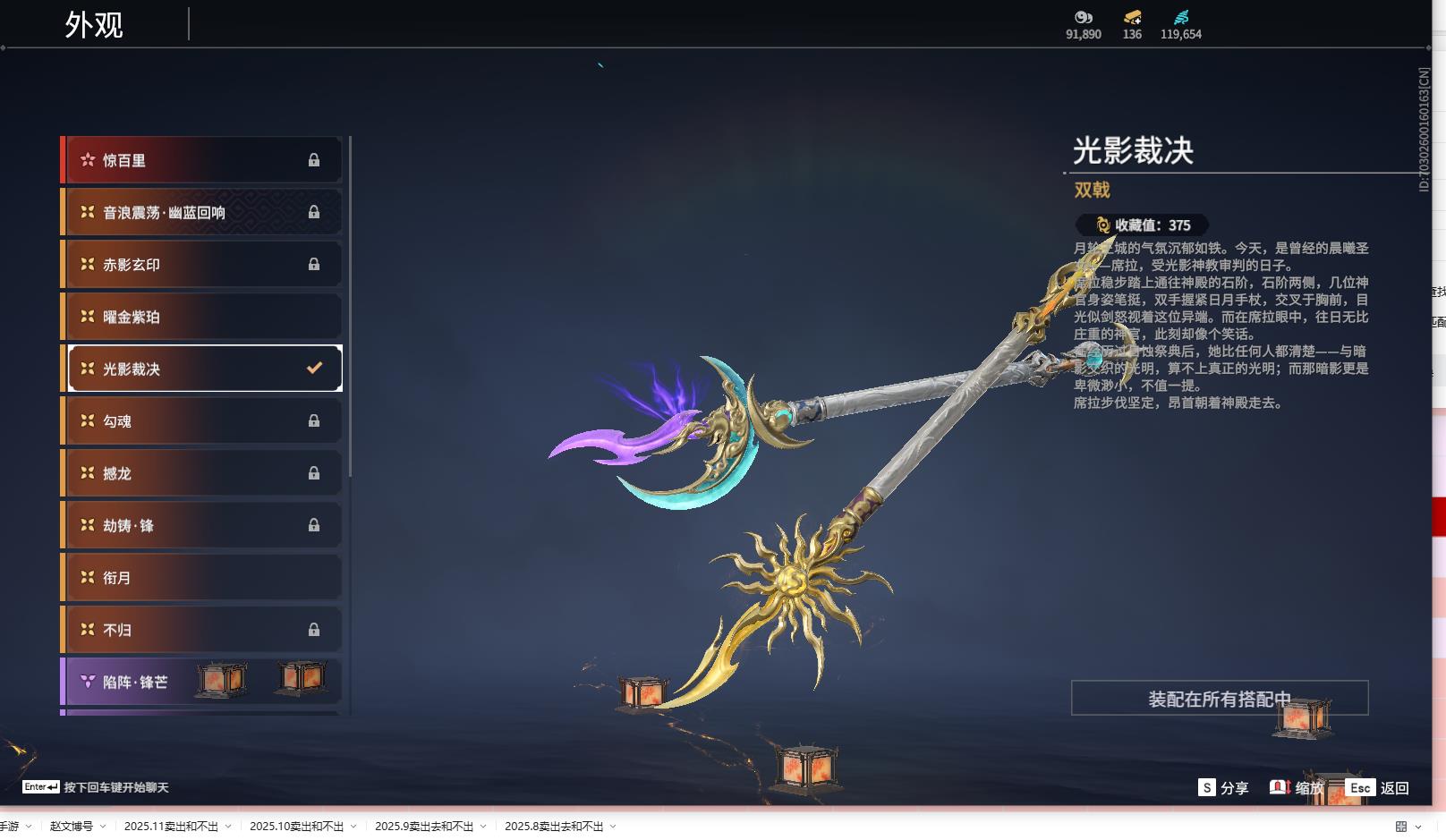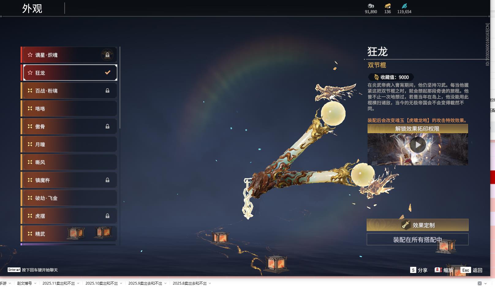[14242200]yjj570/12.3换绑/等级419/s18三人陨星2/16红434金收藏值273770/赤皓新囍/初代玄女/墨离//星辉魔纱//戎金狼//熛怒炼火//泣珠龙纱//沙漠香风//画中仙//苍穹之光/赤帝炎轮/帝星/龙雀/狼主//飞将戟//狂龙/洛天依星轨引航//御宅罗梦(白丝)/龙之影·过江龙/荆魂//千秋匠心凶虎//西行劫·三尖两刃刀/幻丝119654/已绑定手游