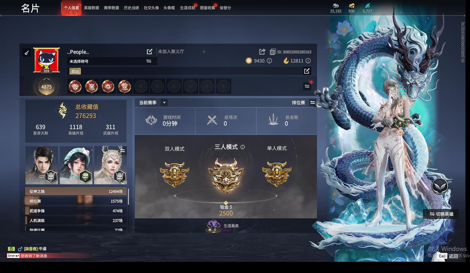 [14242448]yjj587/12.5换绑/等级359/s18三人铂金5/18红380金收藏值276293/赤皓新囍/初代玄女/墨离/星辉魔纱//戎金狼/熛怒炼火/蝶梦/泣珠龙纱/青龙将星/沙漠香风/天罚/苍穹之光/毕方/少阳剑/帝星/龙雀/狼主/天琼//2674·原型//绿野守侯竹韵悠/神乌造像/御翔云/夏日派对·椰风夕照/炎烈珠/龙之影·过江龙//荆魂/拳皇勾玉//幻丝5717/已绑定手游
