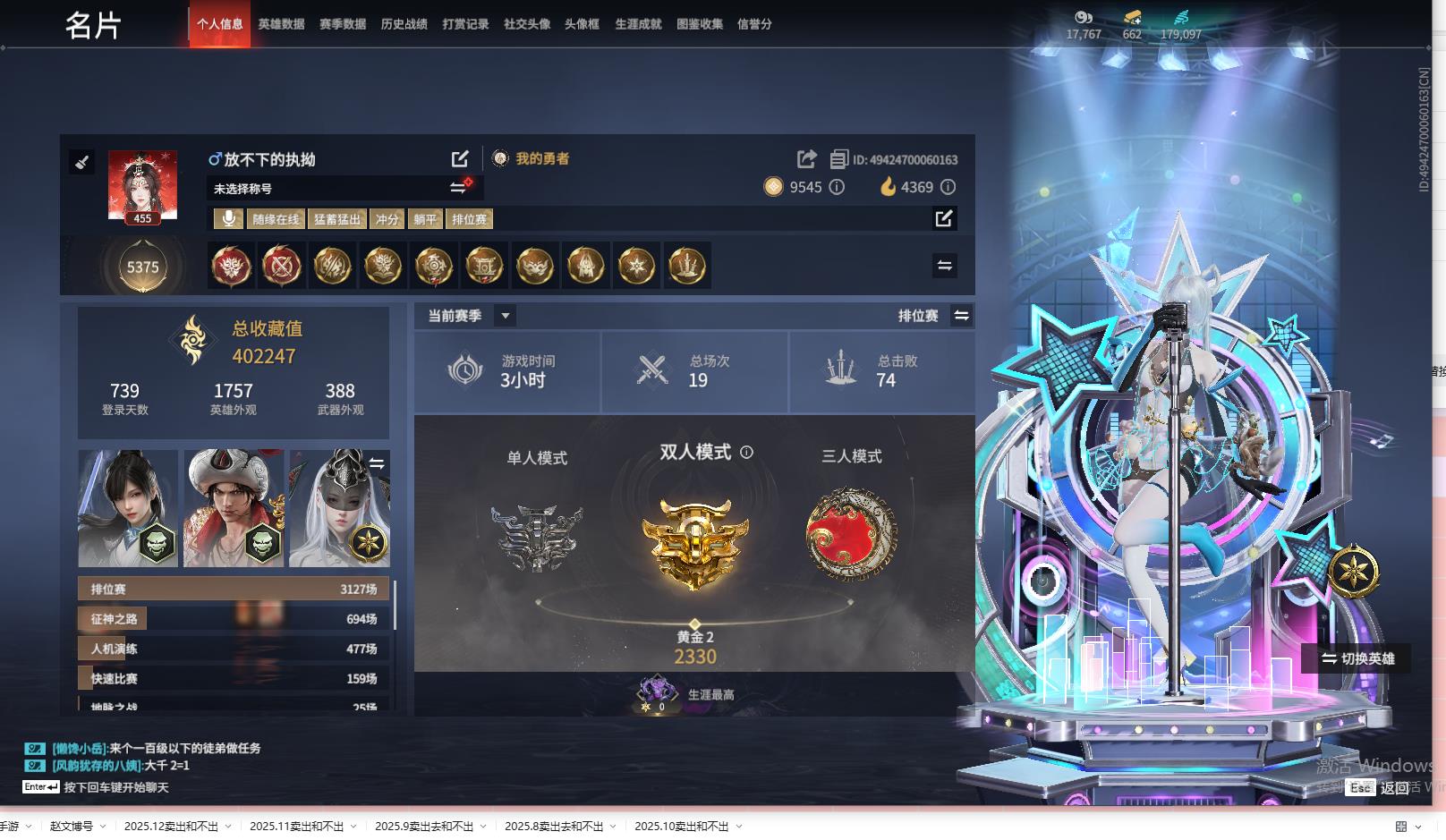 [14250818]yjj890/steam/可换绑/等级455/s18三排蚀月5/22红724金收藏值402247/赤皓新囍/初代玄女/星辉魔纱/新倩女幽魂·长天藏锦/戎金狼/狱炎烬甲/熛怒炼火/人偶之梦/泣珠龙纱/绝代风华/沙漠香风/天罚/苍穹之光/赤帝炎轮/少阳剑/2674·终极型·紫没原色)/灵狐幻刃/帝星/龙雀/狼主/飞将戟/天琼/2674·超越型/2674·超越型·紫/璃光·星辉环月/西行劫·三尖两刃刀//夏日派对·午后瑰夏/2674·初代机/珥冰/神乌造像/观山海·春木/龙之影·龙虎斗/御翔云/洛天依·星轨引航/御宅罗梦(白丝)//璃光·洛天依·共鸣/洛天依·共鸣/龙之道·无拘/夏日派对·弄潮逐浪/西行劫·杨戬//龙之影·过江龙/西行劫·神君印/夏日派对·仲夏霜华/雪霜姿/千秋匠心·凶虎/夏日派对·半夏晚风/夏日派对·逐浪砂阳/夏日派对·极光夏夜/狩猎都市·雷行猎手/不良人·袁天罡幻丝179097/已绑定手游