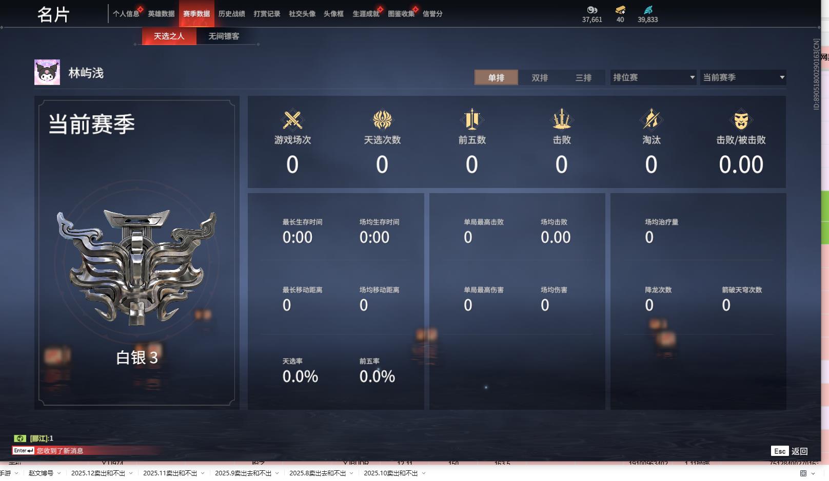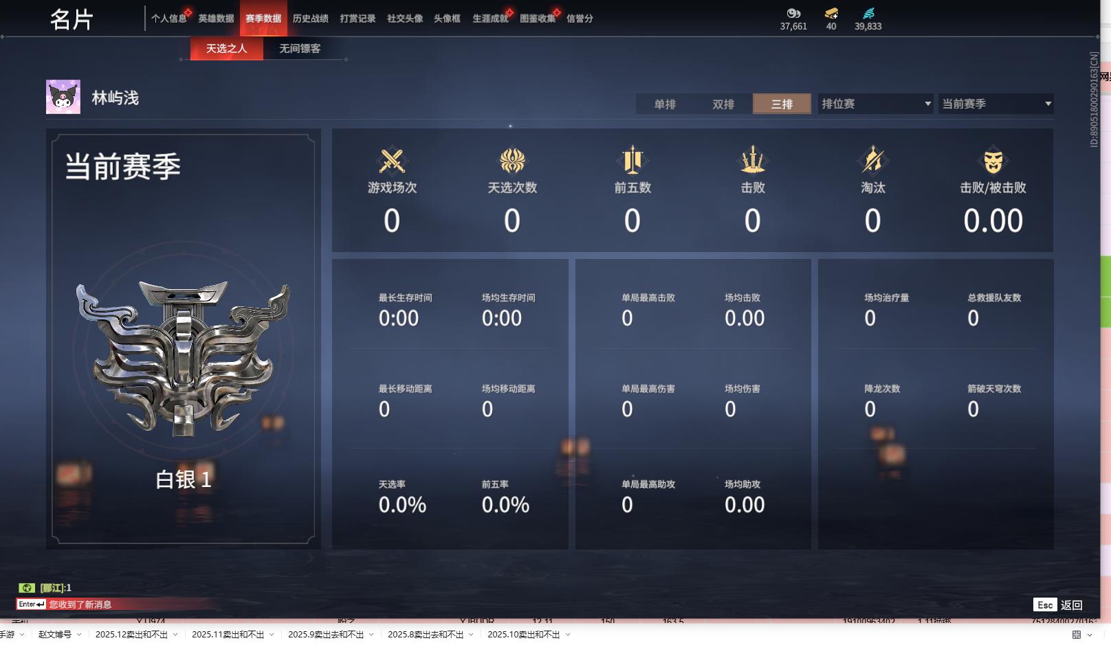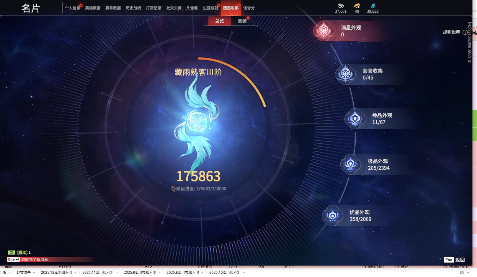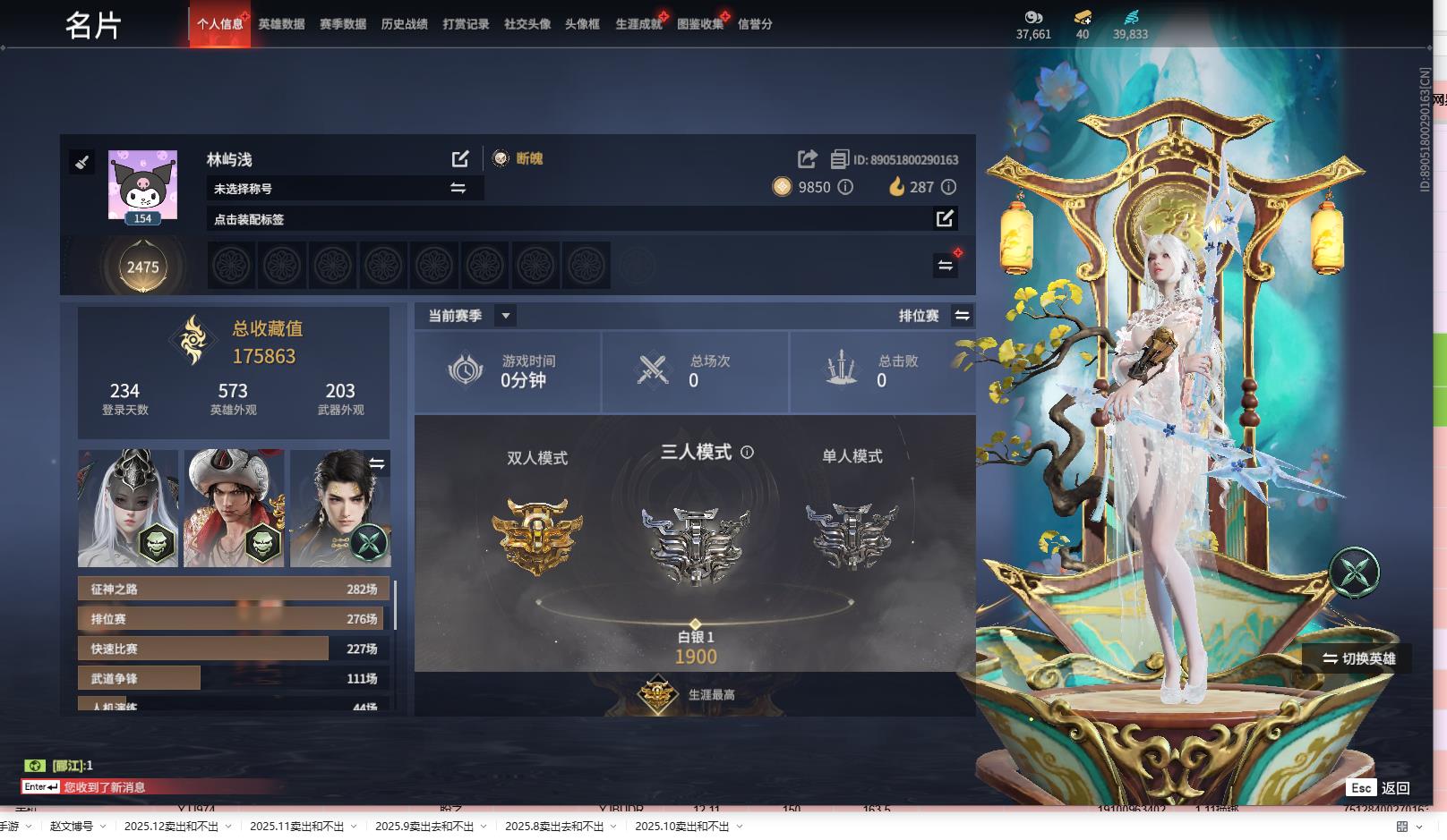 [14469512]yjj964/1.10换绑/等级154/s18三人白银1/11红205金收藏值175863/化生明王/蝶梦/青龙将星/沙漠香风/流金晓锦/少阳剑/帝星/龙雀/如意金箍棒/锦鲤玉扇/天罚//三娃葫芦/荆魂 宁红夜:/红川仙子/九阴圣女/碧水青天/双马尾女 沈妙:/悠竹萌客/涂鸦少女/娇憨发/双马尾女 天海:/化生明王/双马尾男 殷紫萍:/萍之缘/双马尾女 特木尔:/唐三/海神发/双马尾男 季沧海:/杰洛特/不良人李星云/游四海/江海发/白狼发/不如吾发/双马尾男 胡桃:/蝶梦/双马尾女 崔三娘:/暗沼摩罗/冷傲发/双马尾女 岳山:/青龙将星/金戈止/双马尾男 无尘:/一品仙君/羽客发/双马尾男 顾清寒:/紫微星命/赤丹朱湛/双马尾女 武田信中:/祸津素盏/双马尾男 迦南:/沙漠香风/凛冬/浣烟纱/双马尾女 胡为:/悟空/蛤蟆头领/双马尾男 季莹莹:/盛夏白阳/宵烛发/冥泉发/幽焰发/妙音发/双马尾女 玉玲珑:/妲己/丽娘/春不敛/笼烟芍药发/惊雀发/双马尾女 哈迪:/双马尾男 魏轻:/双马尾女 刘炼:/流金晓锦/姜子牙/仙风发/双马尾男 张起灵:/山漠狞影/双马尾男 席拉:/双马尾女 蓝梦:/牵云霞发/双马尾女 万钧:/双马尾男 拳刃:/天狐/毛乎乎 长剑:/少阳剑/不良人龙泉剑/亢龙/含光承影/壶中日月/湖女之剑/琴心/赤霄/2674原型 太刀:/暝视/碎星河 横刀:/帝星/无限/白鹿 阔刀:/龙雀/恶障/雷王锯 斩马刀:/三尖两刃刀/断月影/潮 呛:/委蛇矛/建木/灵木角/长虹 棍:/如意金箍棒/打狗棒 匕首:/仙舞/刺冥/马首刀 扇:/锦鲤玉扇/叶底花/耀夜流华/青峰叠扇 双截棍:/傲骨/咯咯/嘶风/镇魔杵/飞金 双刀:/必安/无救/登山镐/破重云/空寒/胧夜狐影/蛋仔派对咸鱼/西摩格镰/诡月链魂 双戟:/水衡 飞刀:/不良人华阳针 连弩:/朱雀 鸟铳:/沉默审判/雨幕 火炮:/天罚/造景 五眼铳:/凝冰魄 弓箭:/腥红之月 挂饰:/太岁神/鸾花镜/驴耳朵/素心流光卷/婵娟/月梦/夏鼓/红绒暖男/烈阳羽/武劫之魂/鎏金螭龙/捆龙索/防风帽/雪鹿雌角/凛夜扇/玄陶俑面女/目瞪马呆男/狼面具/葫芦兄弟蛤蟆头/倾城/封神榜/阴阳灵狐/绒绒猫/鳞镜/捕光镜/金瑛冠/知天命/团上头了/玄陶俑面男/风廉面/福虎帽/红绒暖女/脑子给我/目瞪马呆女
