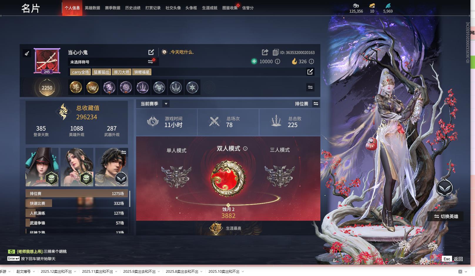 [14593837]yjj1009/1.14换绑/等级245/s18三人白银1/19红381金收藏值296234/朱雀星衣/戎金狼/熛怒炼火/泣珠龙纱/香雪水兰/绝代风华/监兵凶神/夜魅游莹/少阳剑/太玄之刃/比羿/狼主/龙雀/飞将戟/灵犀/天琼/狂龙/苍穹之光/墨离/凶虎/珥冰/荆魂 宁红夜:/耀世魂花/倒反阴阳炽羽/夜华朝/蜘蛛精/簪缨发/双马尾女 沈妙:/朱雀星衣/悠竹萌客/紫衣仙子/娇憨发/双马尾女 天海:/枫行者/少林/双马尾男 殷紫萍:/鹅黄纱梦/萍之缘/瑶光沐月/流纨裙/紫芙发/子菀发/伏苓发/暖绒发/双马尾女 特木尔:/戎金狼/唐三/红蓝狂想/追猎/噬月天狼/海神发/双马尾男 季沧海:/熛怒炼火/巨阙/不良人李星云/夏神祝融/江海沧澜/潜龙先锋/游四海/江海发/白狼发/不如吾发/双马尾男 胡桃:/清雅少女/辉烨少女/贵胄少女/月丹发/双马尾女 妖刀姬:/御神之刃 崔三娘:/泣珠龙纱/赤雾烟霞/巨鲸客/阿娜希塔/伏波龙女/碎浪发/冷傲发/双马尾女 岳山:/铁面/弘毅袍/金戈止/尼尔/汉光/过江龙/玄鳞发/双马尾男 无尘:/未济袍/申公豹/黄庭道/朝闻道/羽客发/双马尾男 顾清寒:/香雪水兰/金襦玉衫/龙吉公主/玄青郁离/冰羽发/红鸾星发/双马尾女 武田信中:/祸津素盏/击浪/凛威发/双马尾男 迦南:/绝代风华/白骨夫人/瀚海苍鹰/翔鸾发/双马尾女 胡为:/监兵凶神/秋神蓐收/蛤蟆头领/行空裘/天刑发/双马尾男 季莹莹:/夜魅游莹/持国天王/干将莫邪/冬无归/冬神玄冥/宵烛发/冥泉发/缱绻发/幽焰发/双马尾女 玉玲珑:/赤阳天狐/春不敛/妲己/笼烟芍药发/惊雀发/双马尾女 哈迪:/卷王/夜绸袍/冥渊/沙海之鸠/双马尾男 魏轻:/极夜天曦/双马尾女 刘炼:/姜子牙/仙风发/双马尾男 张起灵:/山漠狞影/云间影/鹤姿发/双马尾男 席拉:/日月明/天虹咏/暧冬茶馨/双马尾女 蓝梦:/双马尾女 万钧:/双马尾男 李寻欢:/双马尾男 拳刃:/天狐/诡刃八岐 长剑:/少阳剑/不良人龙泉剑/亢龙/含光承影/琴心/赤霄/隐锋/2674原型 太刀:/太玄之刃/天劫/暝视/落樱/雅菊/雷赐 横刀:/比羿/尽春锋/无韵/烛泪/雷厉 阔刀:/狼主/龙雀/不祥绯刃/听涛_/龙蟠 斩马刀:/飞将戟/三尖两刃刀/千钧羽/护云狩/断月影/麒麟牙 呛:/灵犀/委蛇矛/建木/清光引/灵木角/焦钰/白虹/金神钺