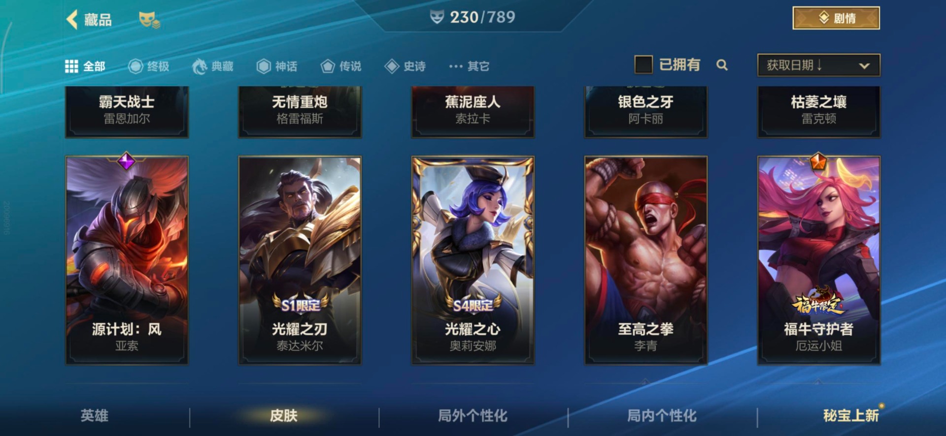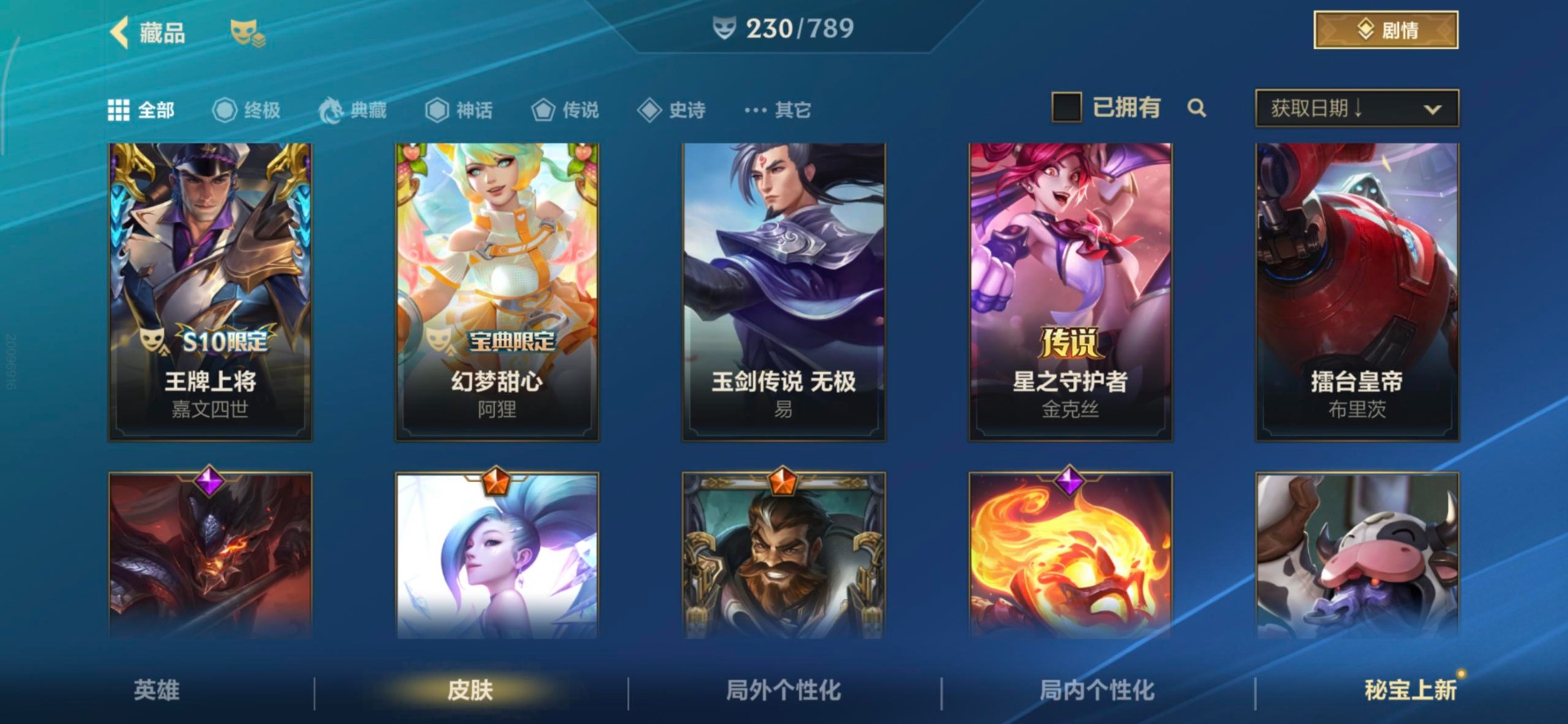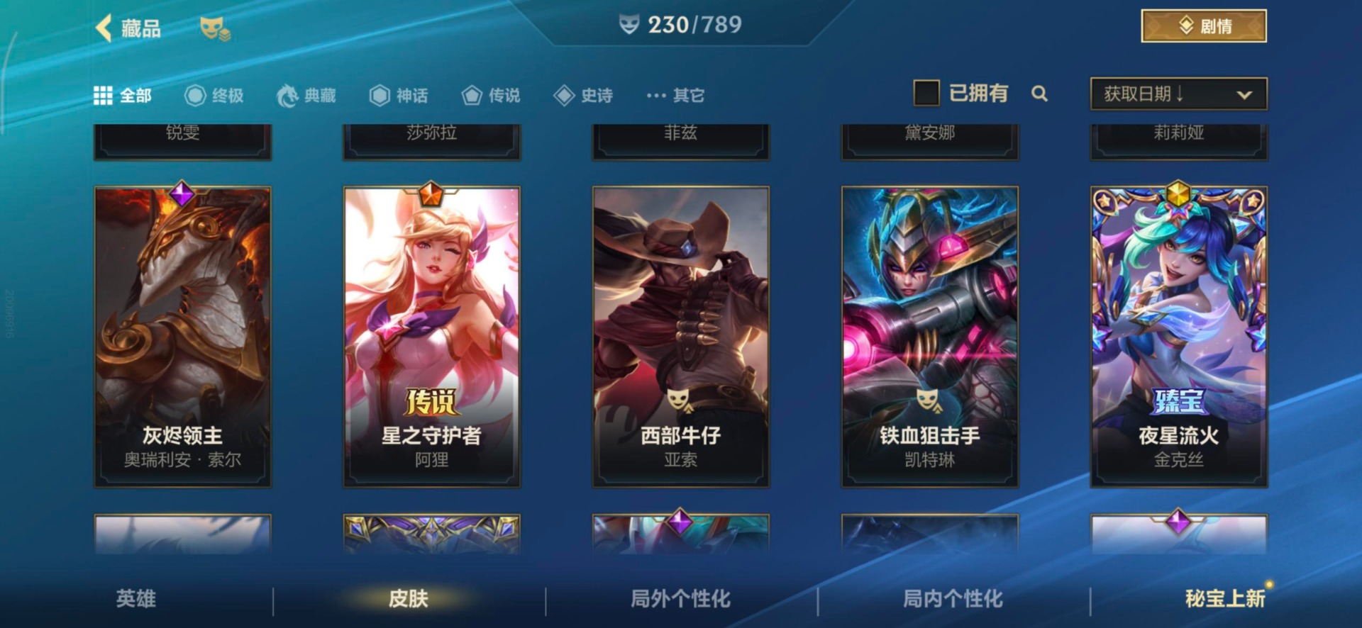 3神话 1限定 22传说 96史诗 230皮肤 可二次 可修改实名 【段位】:大师 【神话皮】:夜星流火 金克丝银鞍玉甲 嘉文四世至臻灵魂莲华剑圣 【限定皮肤】:创星之灵 【传说皮】:神龙尊者 圣龙 李青源计划:毁灭星域武神贾克斯西部天使寒冰西部魔影卢锡安天煞劫神王诺手神拳盲僧