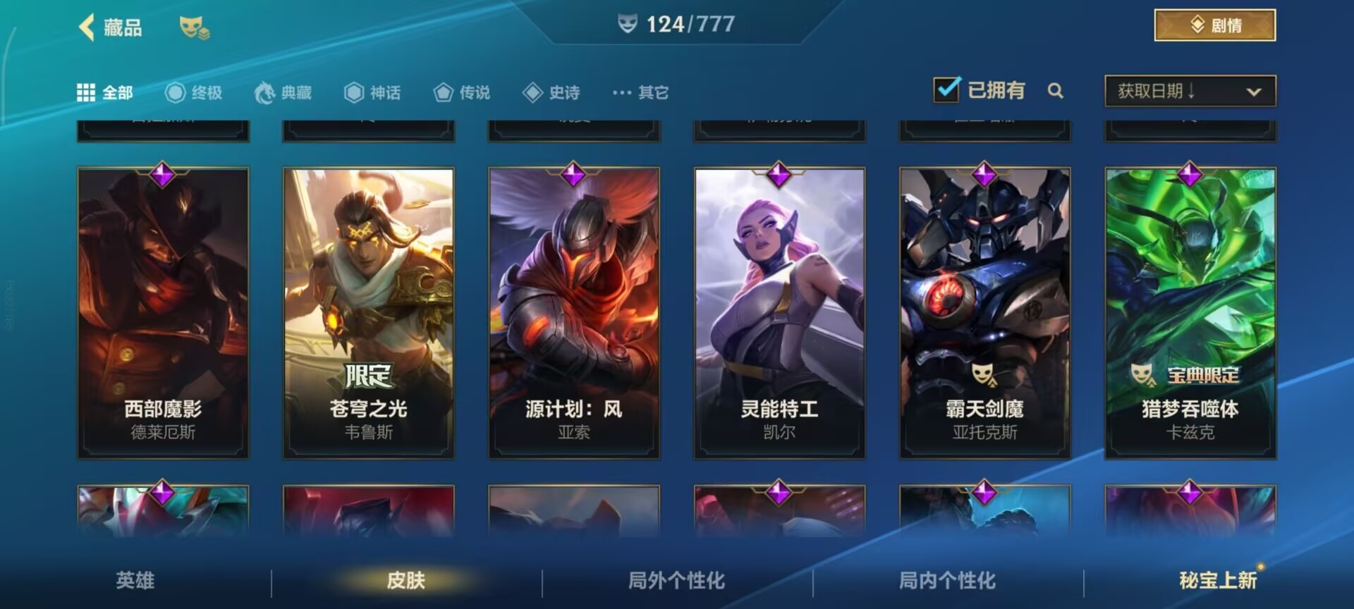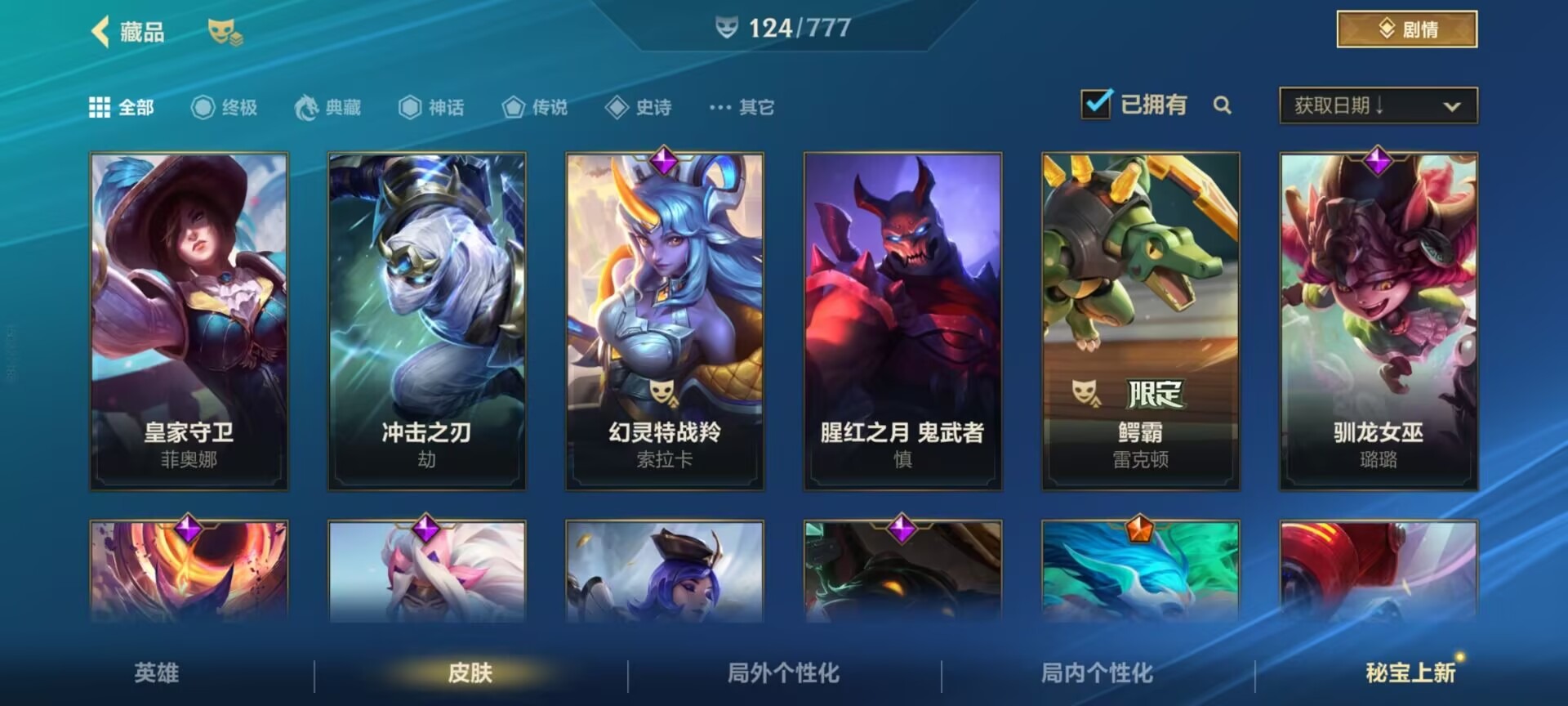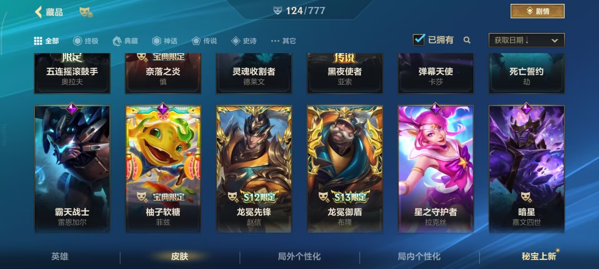 2神话 1限定 16传说 61史诗 124皮肤 可二次 可修改实名 信用分低,需要打3把匹配 【段位】:铂金 【神话皮】:夜星流火 金克丝玄龙绛天 易 【限定皮肤】:张辽文远 【传说皮】:暗星尊源计划:毁灭未来战士女警神拳盲僧神龙尊者 驭风啸龙星域游侠卡牌炼狱魔犬黎明使者锐雯k/d