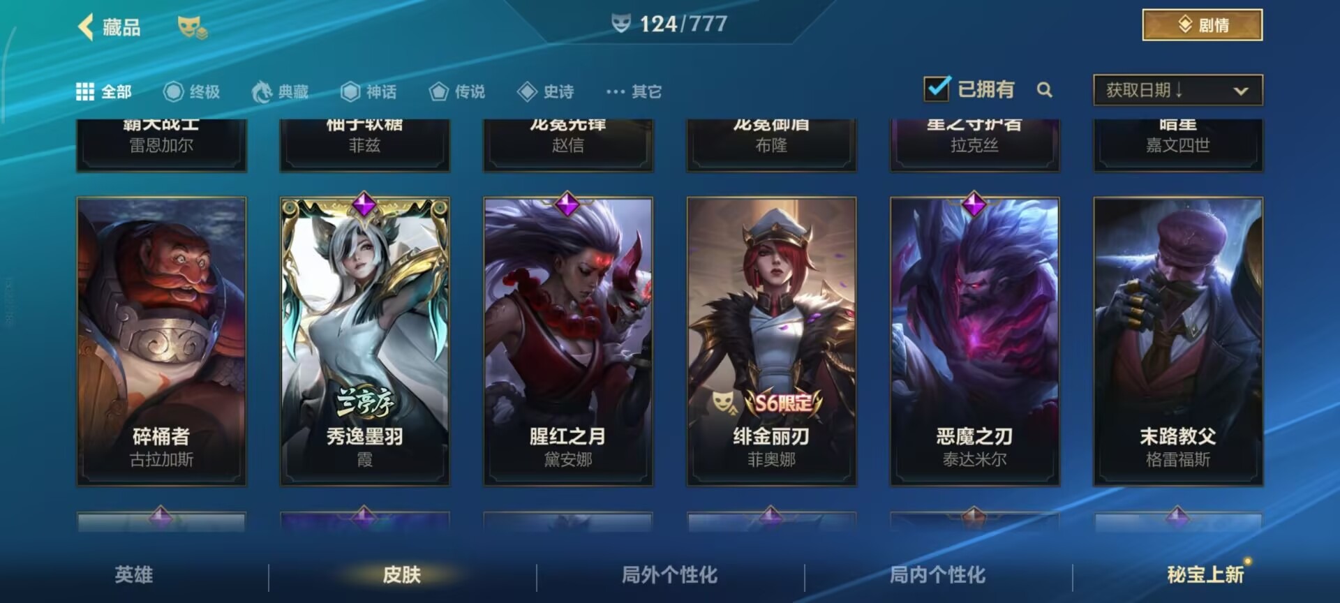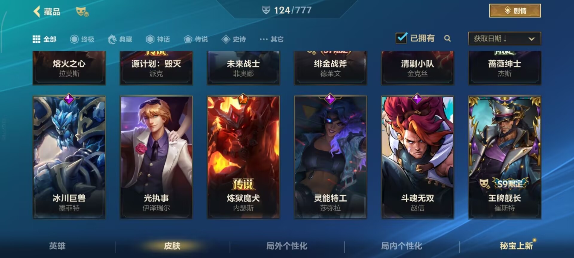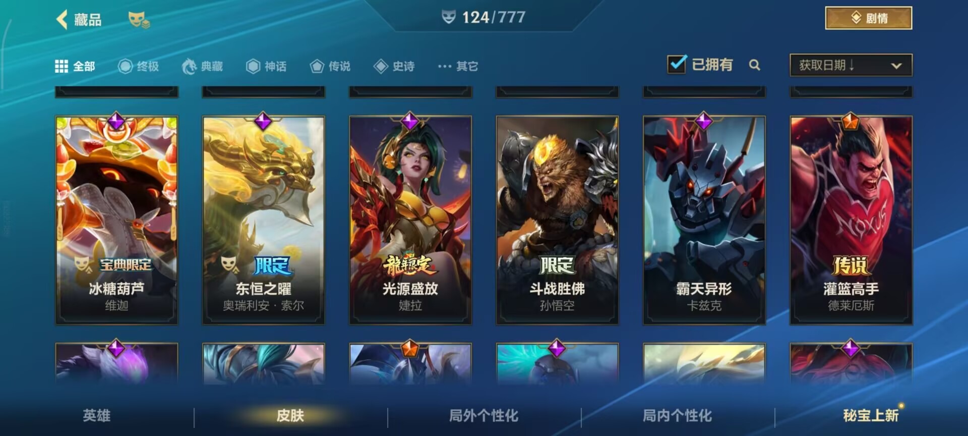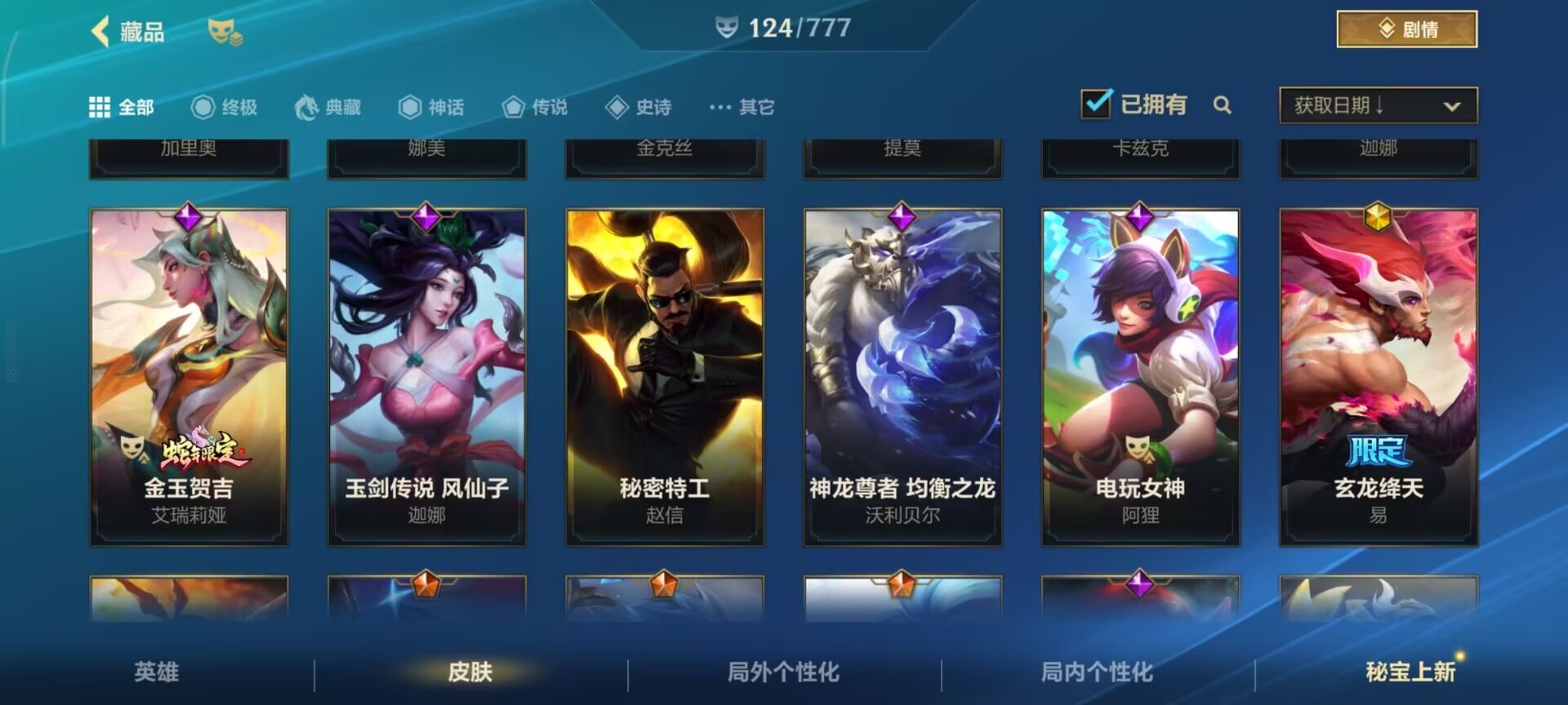 2神话 1限定 16传说 61史诗 124皮肤 可二次 可修改实名 信用分低,需要打3把匹配 【段位】:铂金 【神话皮】:夜星流火 金克丝玄龙绛天 易 【限定皮肤】:张辽文远 【传说皮】:暗星尊源计划:毁灭未来战士女警神拳盲僧神龙尊者 驭风啸龙星域游侠卡牌炼狱魔犬黎明使者锐雯k/d