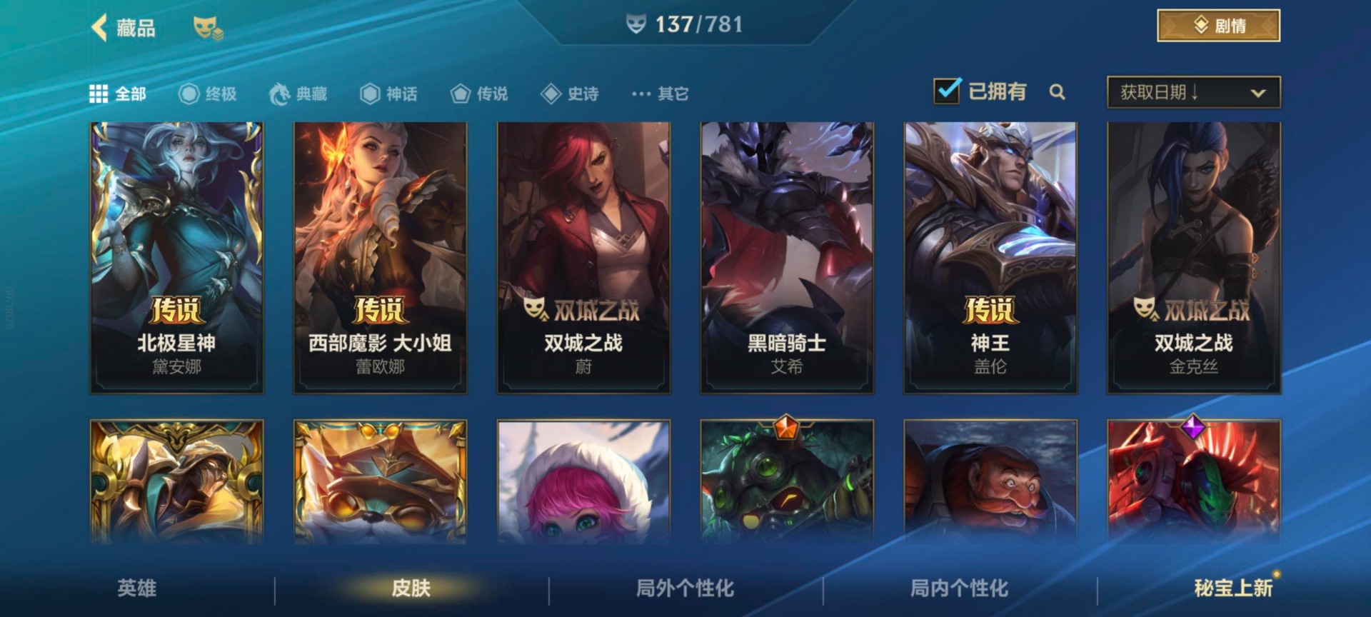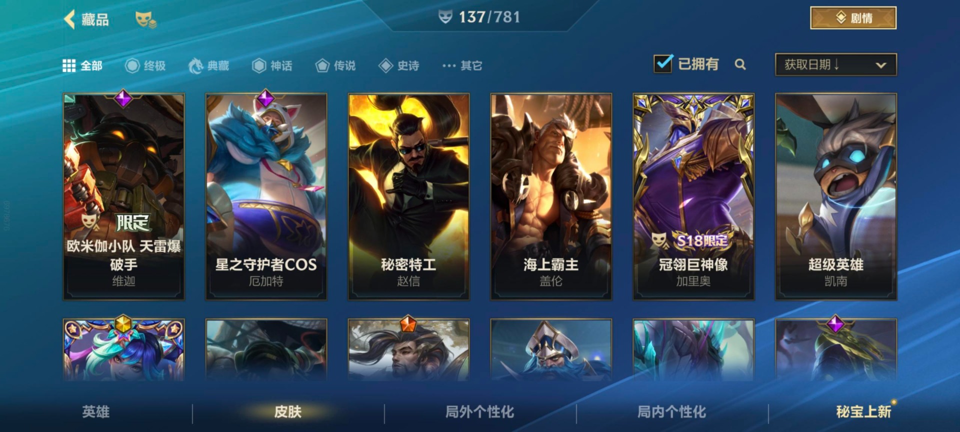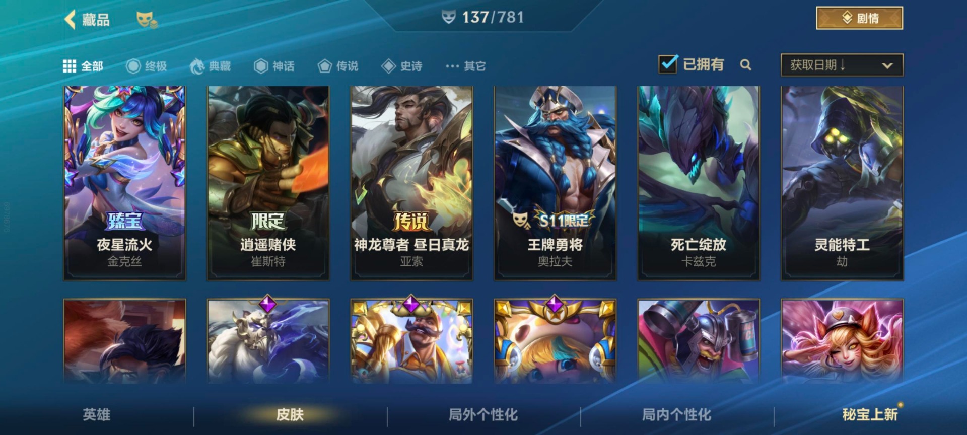 3神话 4限定 16传说 40史诗 137皮肤 可二次 可修改实名 【段位】:大师 【神话皮】:夜星流火 金克丝天命豪侠 瑟提蝶恋春女警 【限定皮肤】:地底世界卡牌耀星女神拉克丝星之守护者霞星之守护者洛 【传说皮】:西部魔影大小姐蕾欧娜霸天零式塞恩神龙尊者 昼日真龙 亚索北极星神