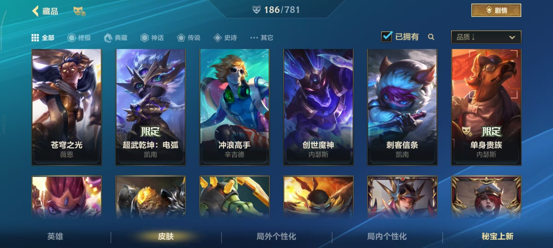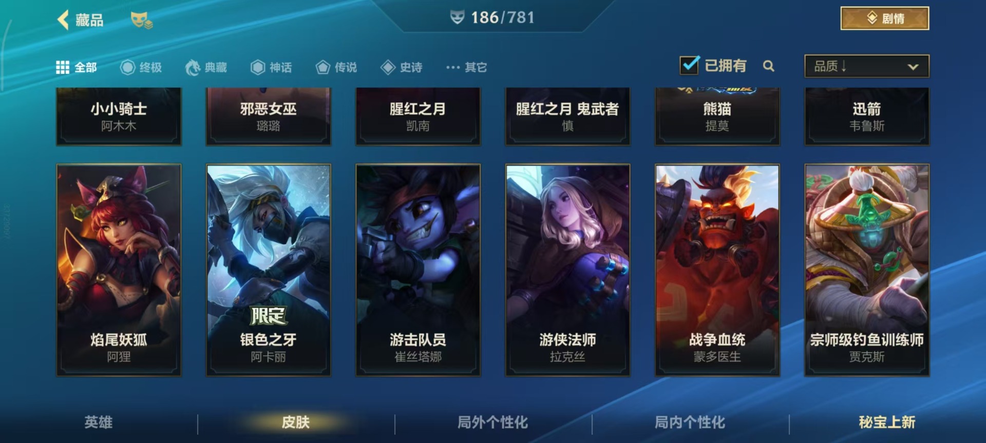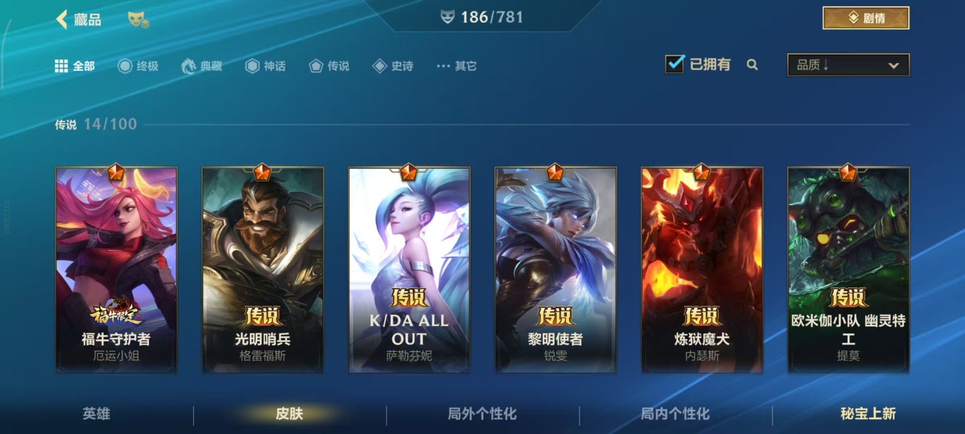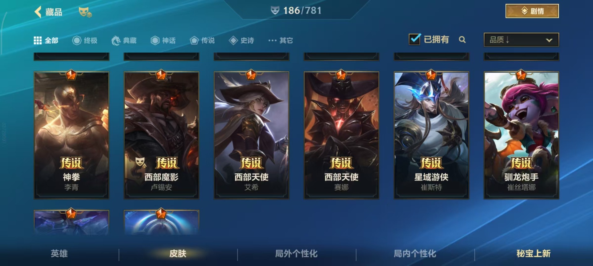 14传说 79史诗 186皮肤 可二次 可修改实名 【段位】:翡翠 【传说皮】:西部天使寒冰西部魔影卢锡安神拳盲僧星域游侠卡牌欧米伽小队 幽灵特工炼狱魔犬黎明使者锐雯k/da allout萨勒芬妮福牛守护者女呛西部天使赛娜光明哨兵格雷福斯月蚀骑士蕾欧娜源计划:净化驯龙炮手