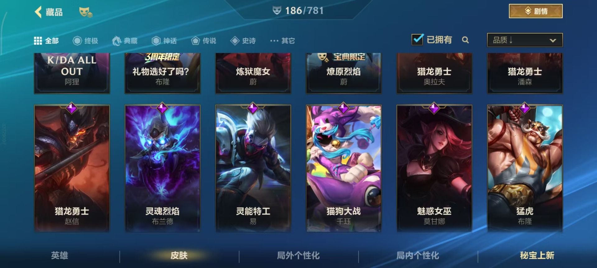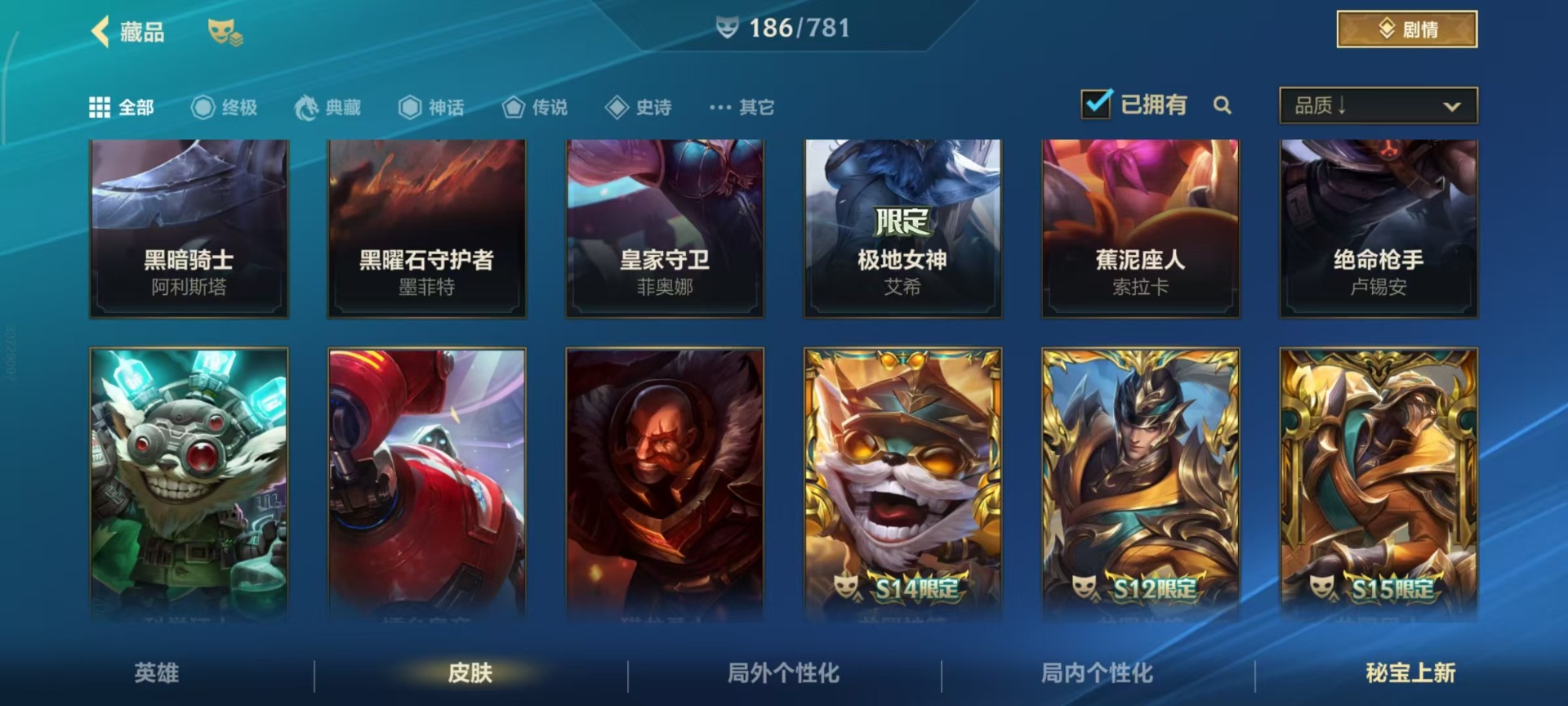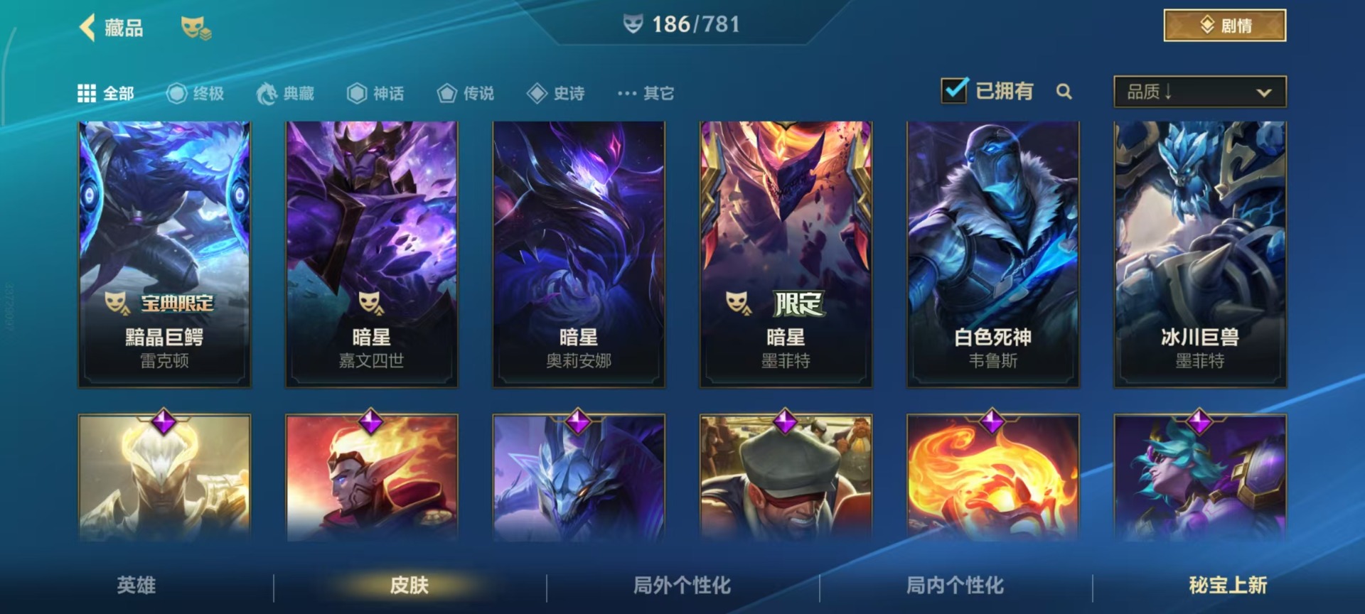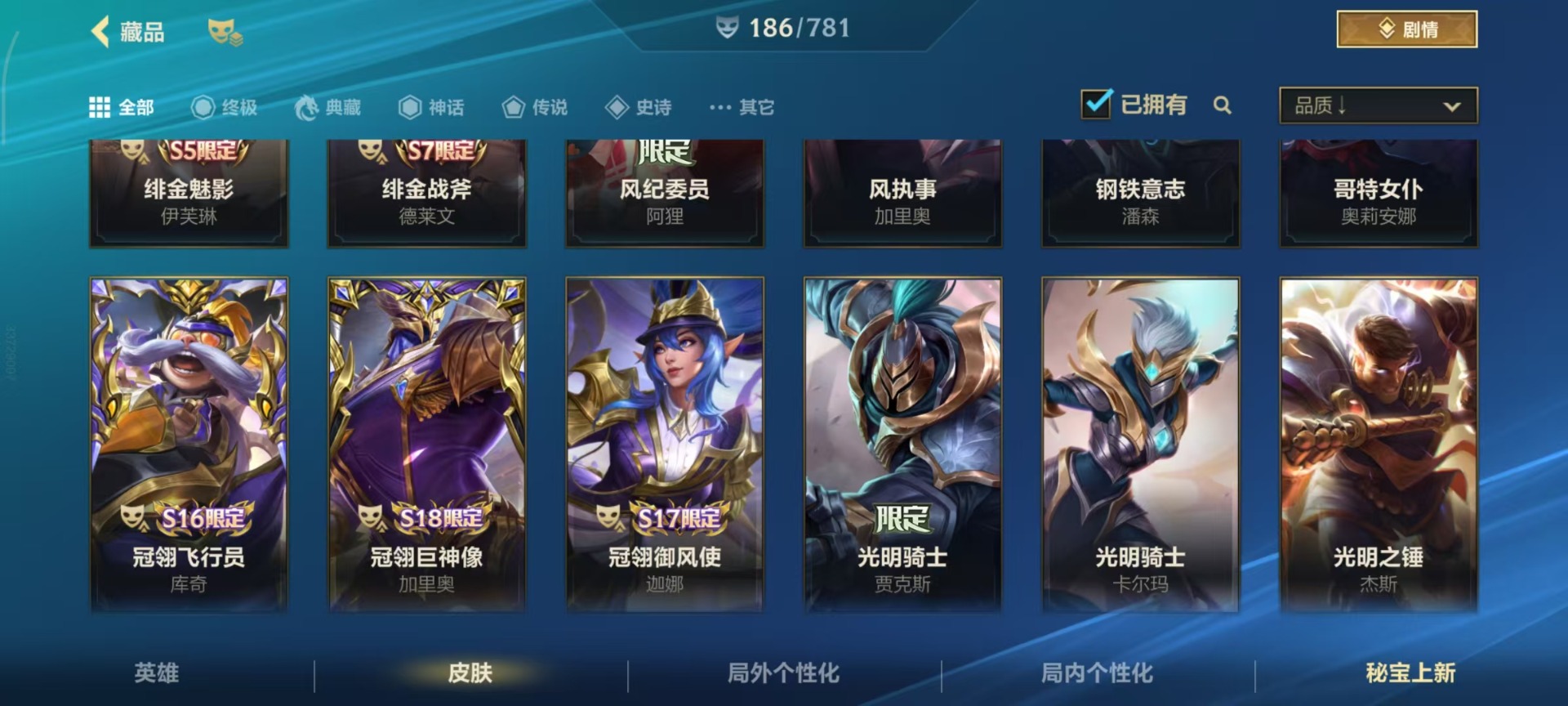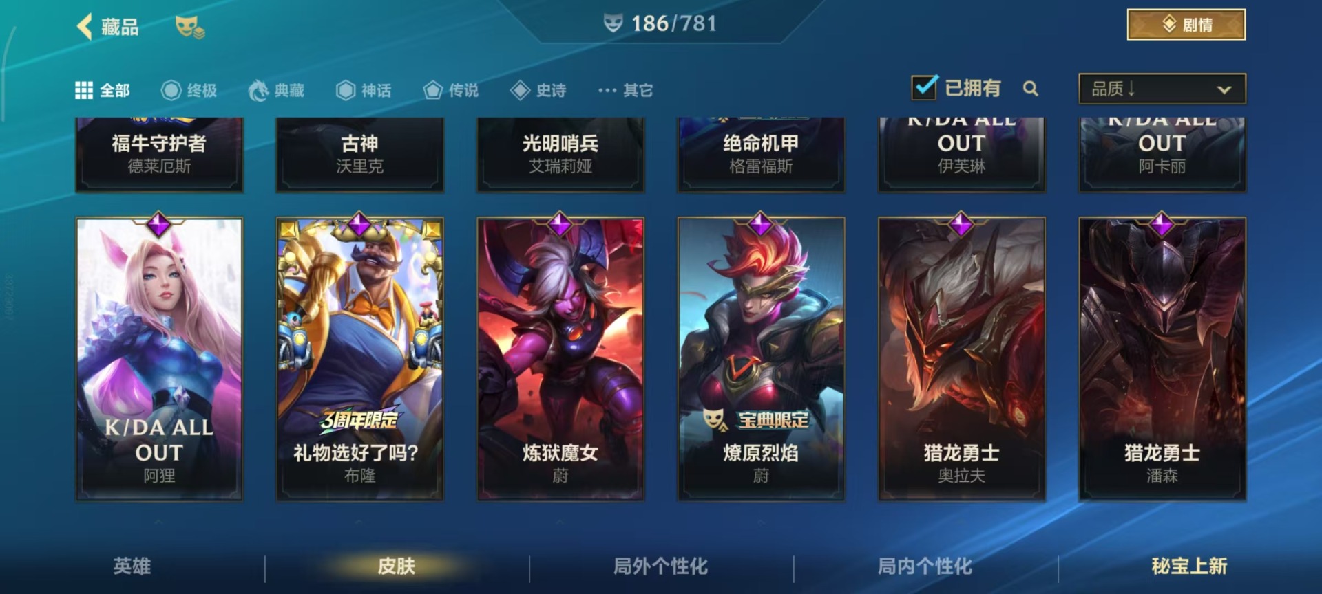 14传说 79史诗 186皮肤 可二次 可修改实名 【段位】:翡翠 【传说皮】:西部天使寒冰西部魔影卢锡安神拳盲僧星域游侠卡牌欧米伽小队 幽灵特工炼狱魔犬黎明使者锐雯k/da allout萨勒芬妮福牛守护者女呛西部天使赛娜光明哨兵格雷福斯月蚀骑士蕾欧娜源计划:净化驯龙炮手