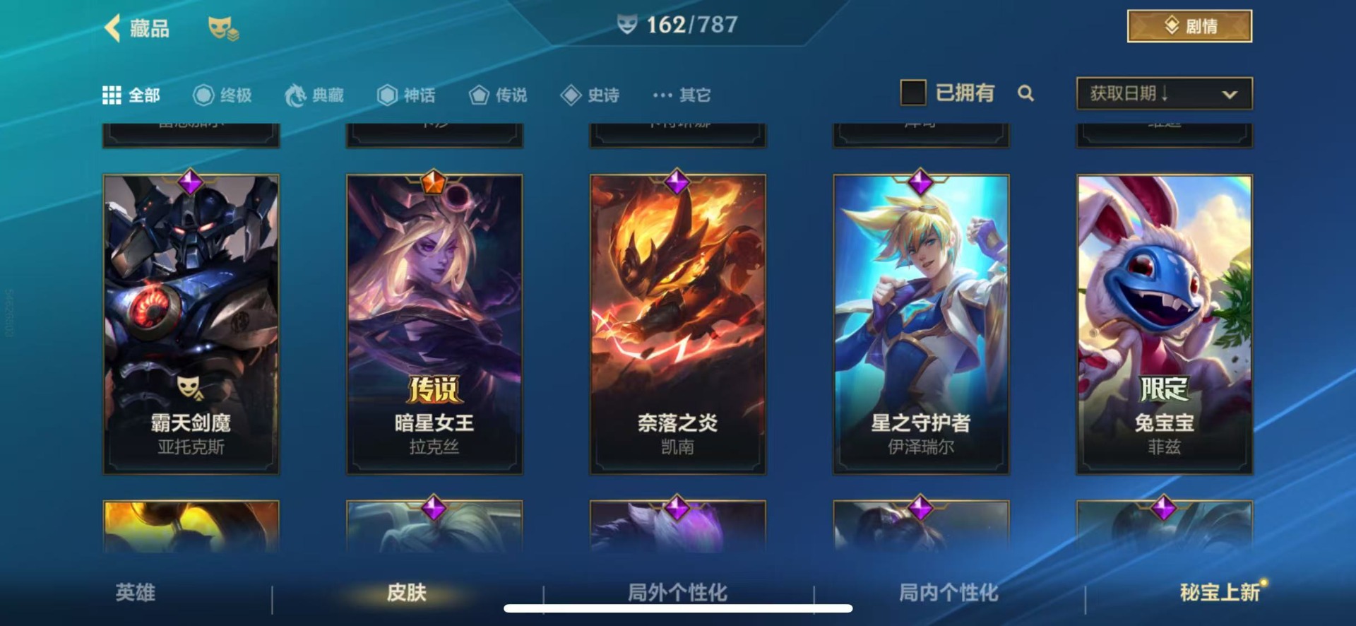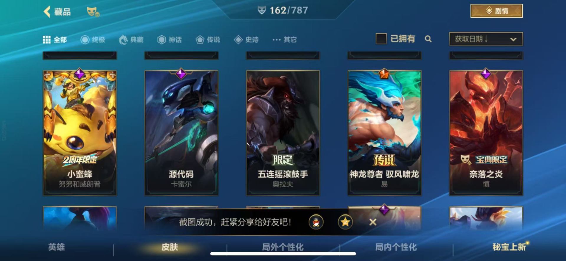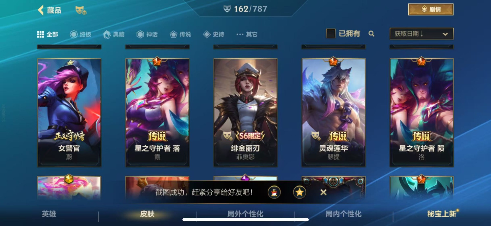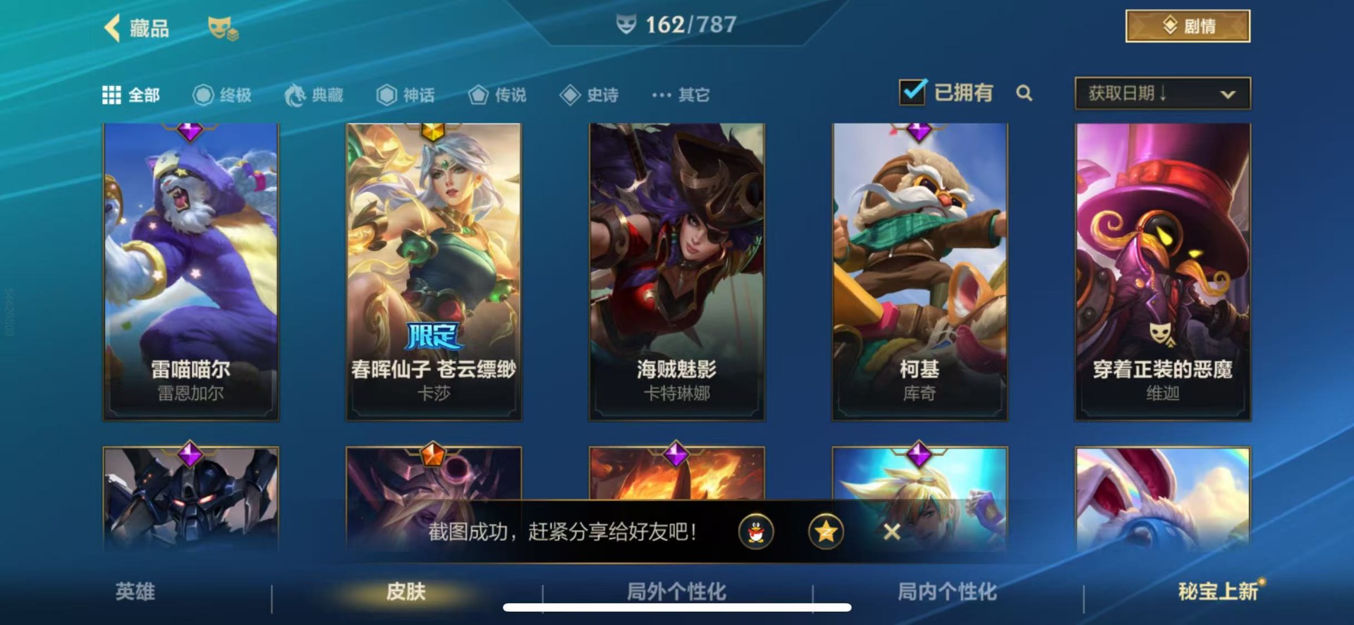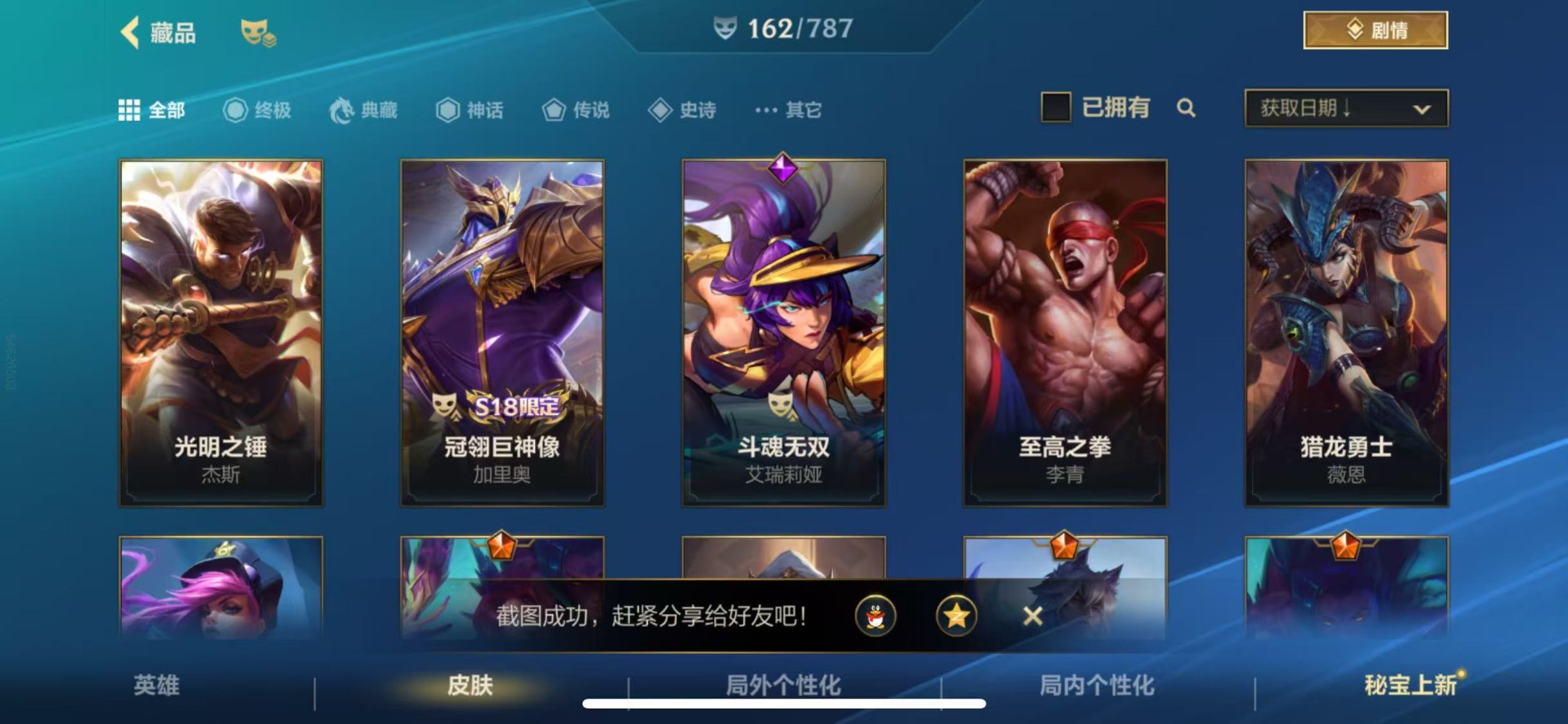 3神话 2限定 30传说 63史诗 162皮肤 可二次 可修改实名 【段位】:大师 【神话皮】:露展虹舞 阿萝拉涂鸦小队斑斓艺术布兰德春晖仙子苍云缥缈卡莎 【限定皮肤】:星之守护者霞星之守护者洛 【传说皮】:暗星尊黎明使者德莱文御风墨影 亚索淳和墨意 嘉文四世心之钢凯隐灵魂莲华腕豪