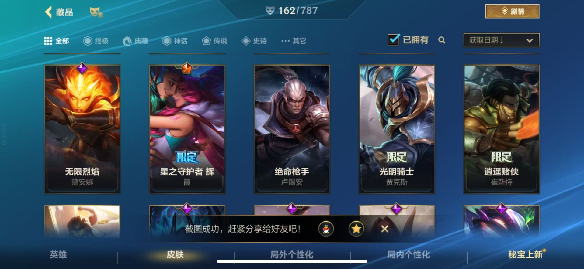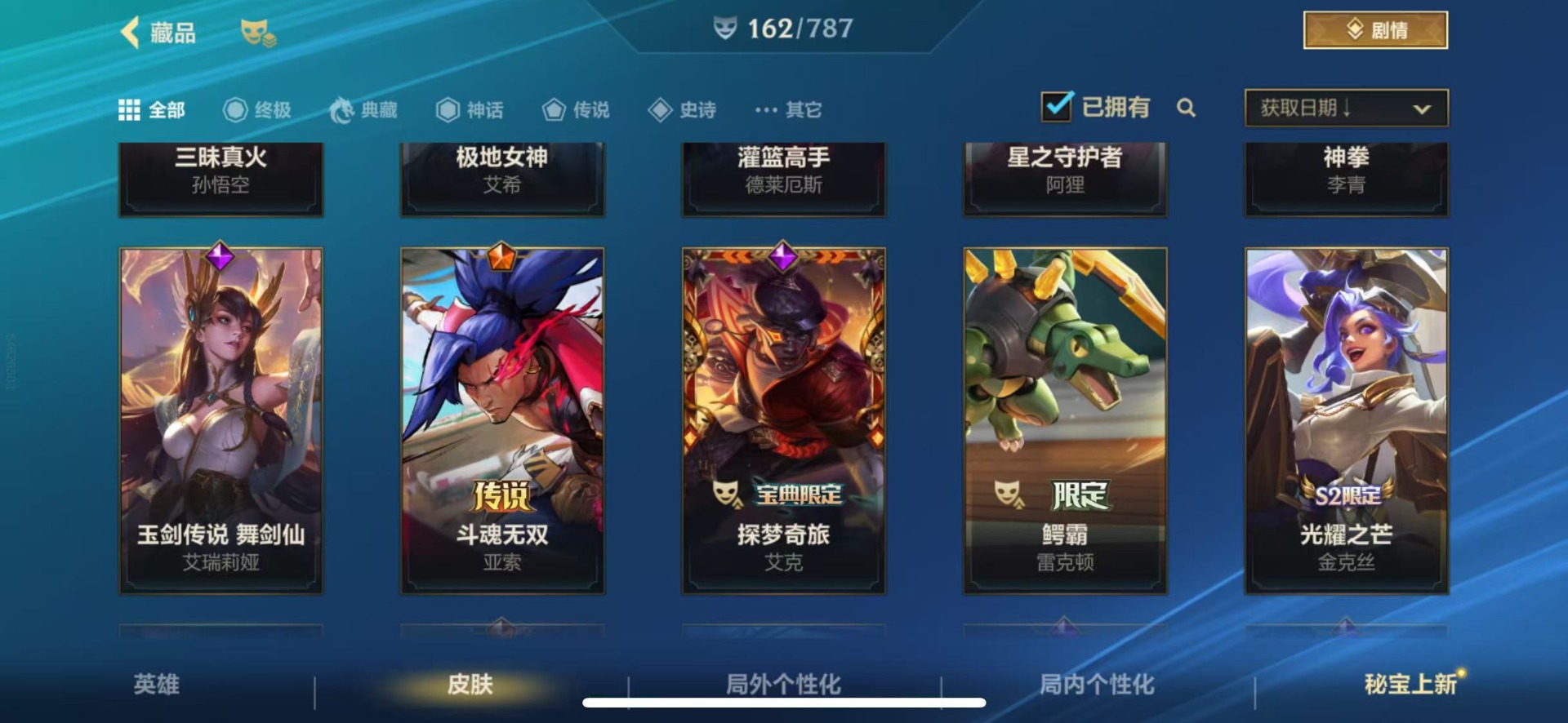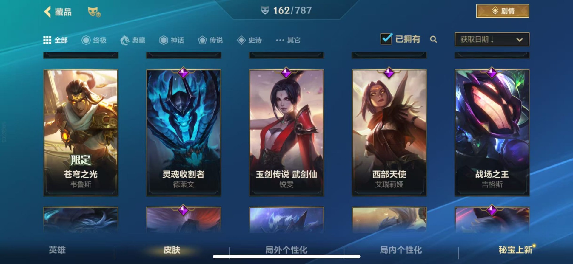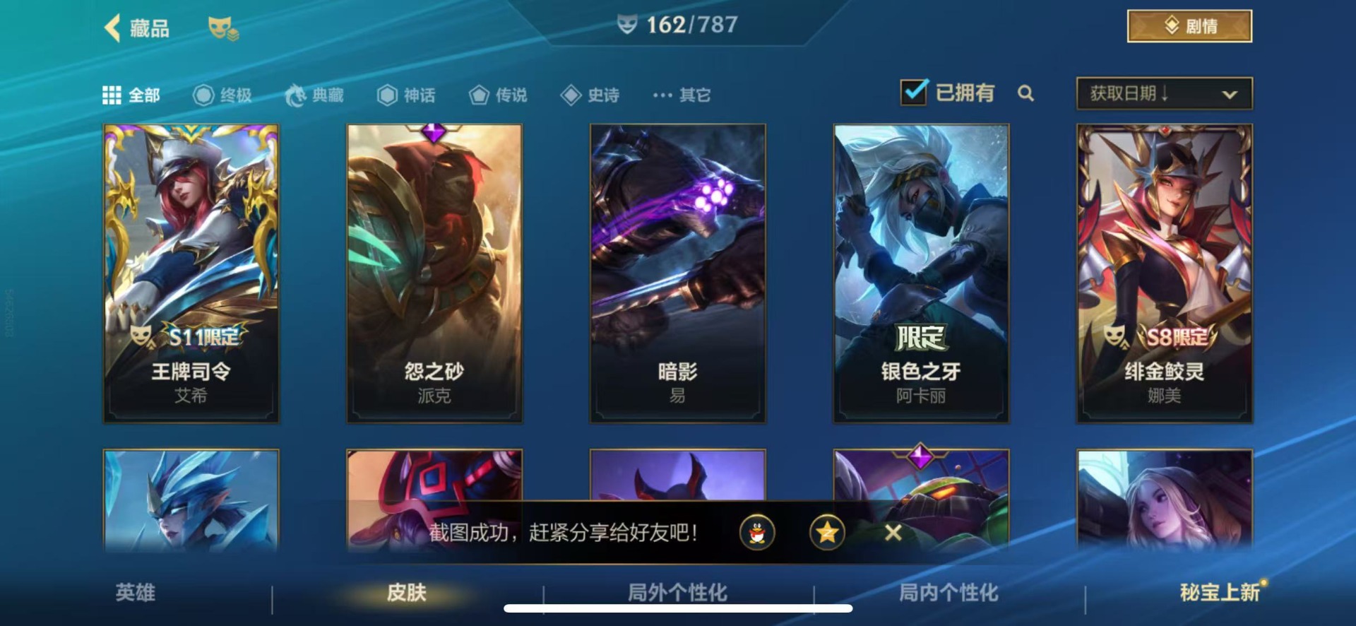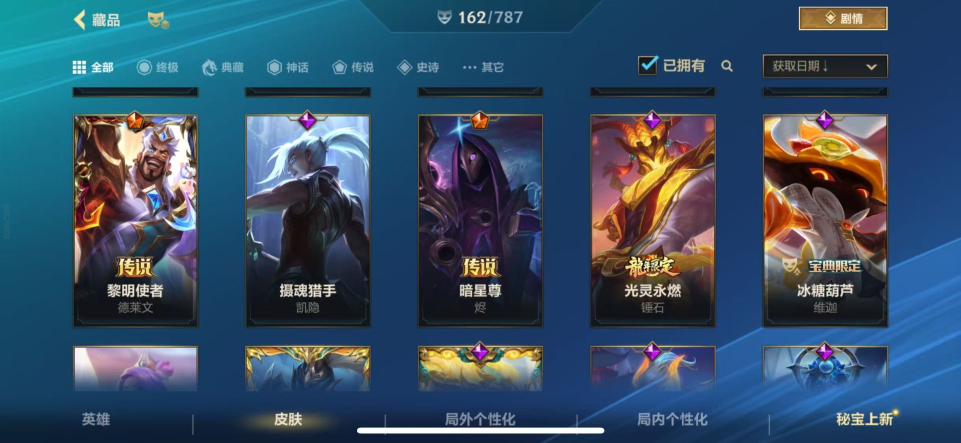 3神话 2限定 30传说 63史诗 162皮肤 可二次 可修改实名 【段位】:大师 【神话皮】:露展虹舞 阿萝拉涂鸦小队斑斓艺术布兰德春晖仙子苍云缥缈卡莎 【限定皮肤】:星之守护者霞星之守护者洛 【传说皮】:暗星尊黎明使者德莱文御风墨影 亚索淳和墨意 嘉文四世心之钢凯隐灵魂莲华腕豪